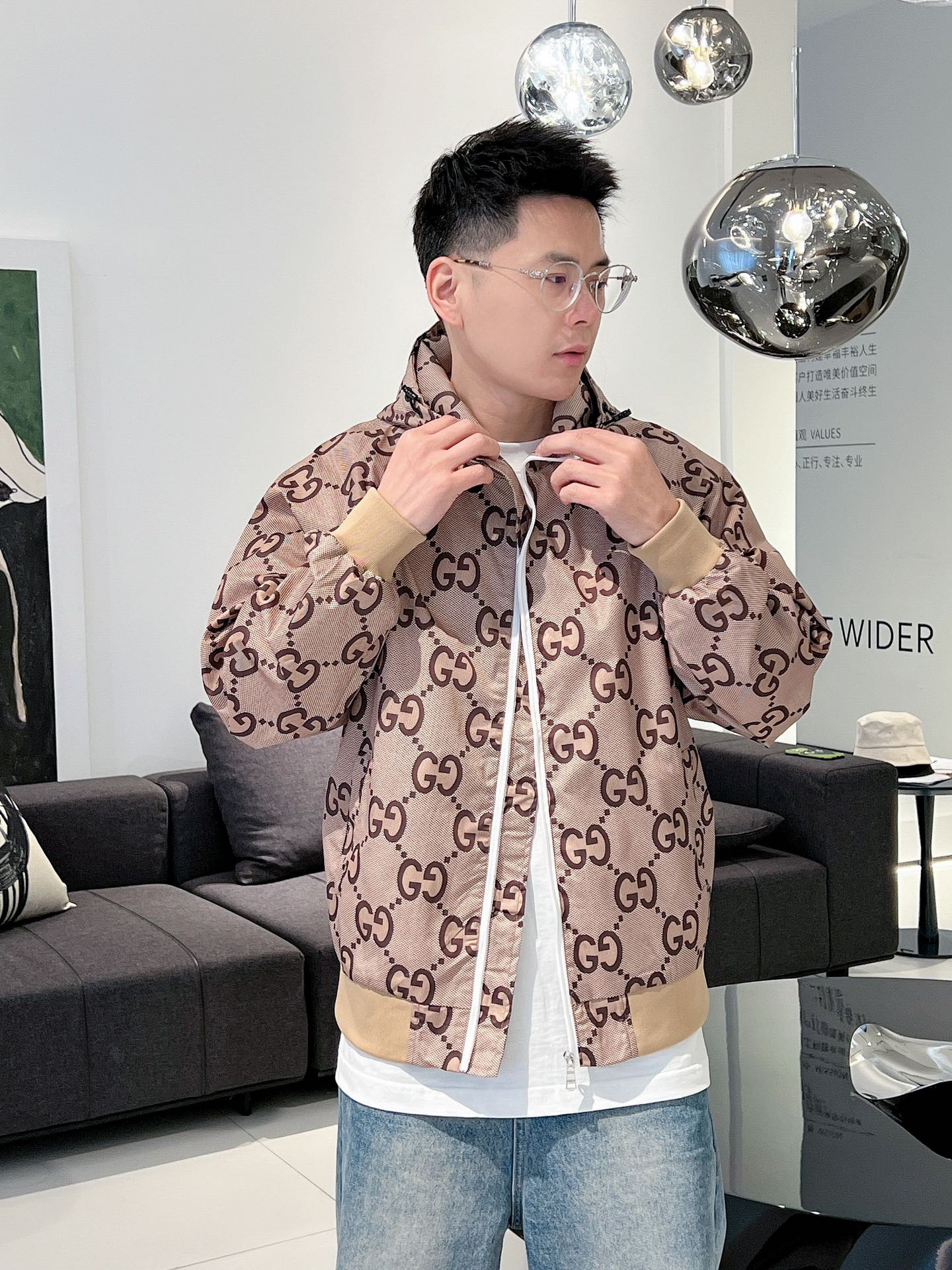 Gucci Men’s Zip Jacket With Web Beige Brown Cotton Technical Fabric