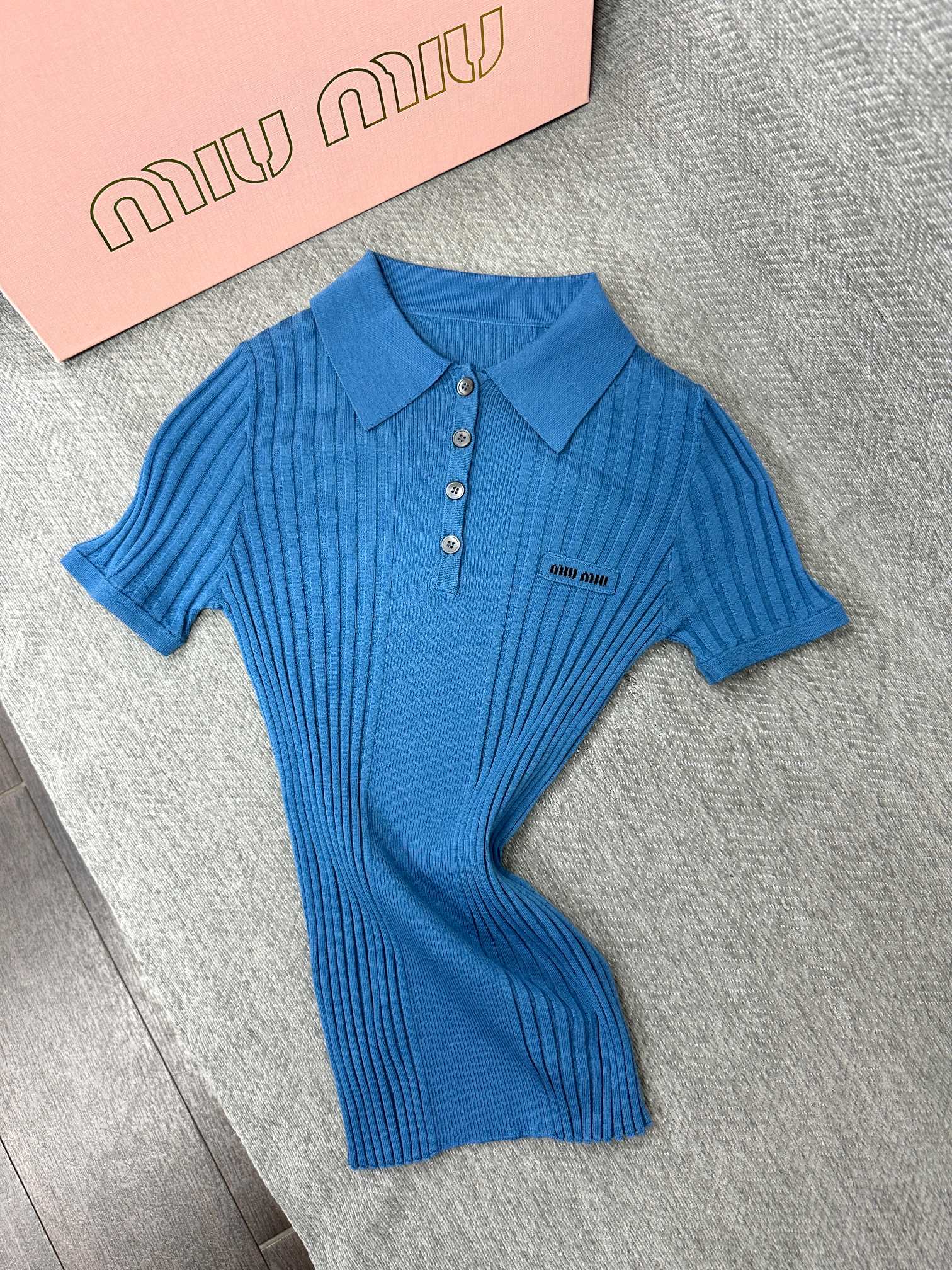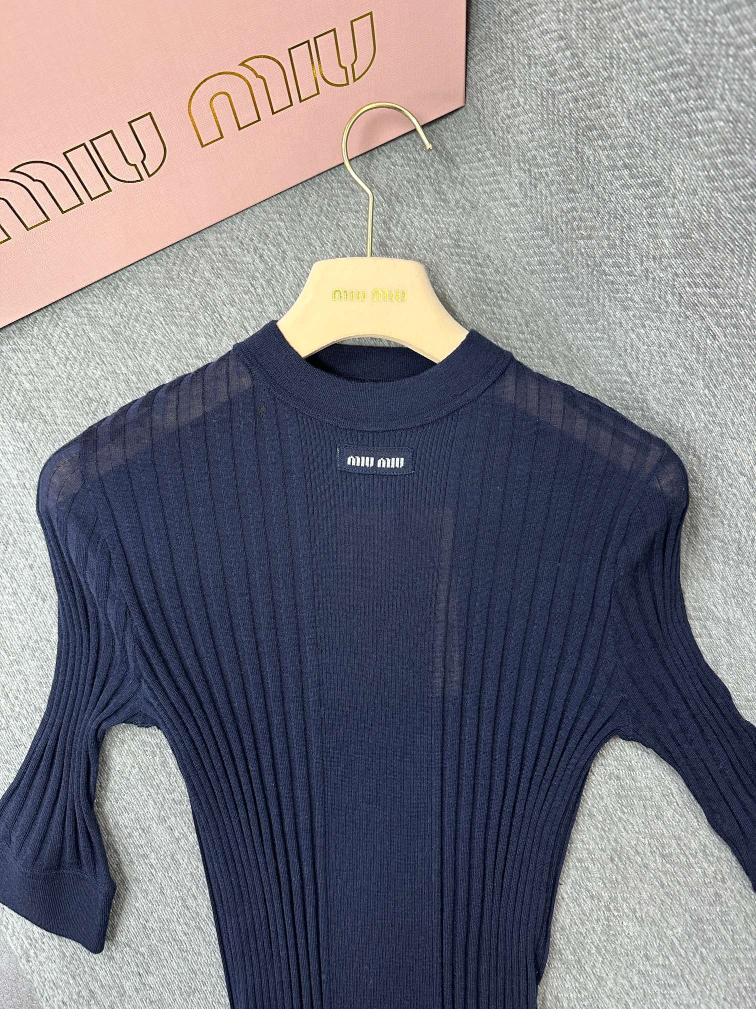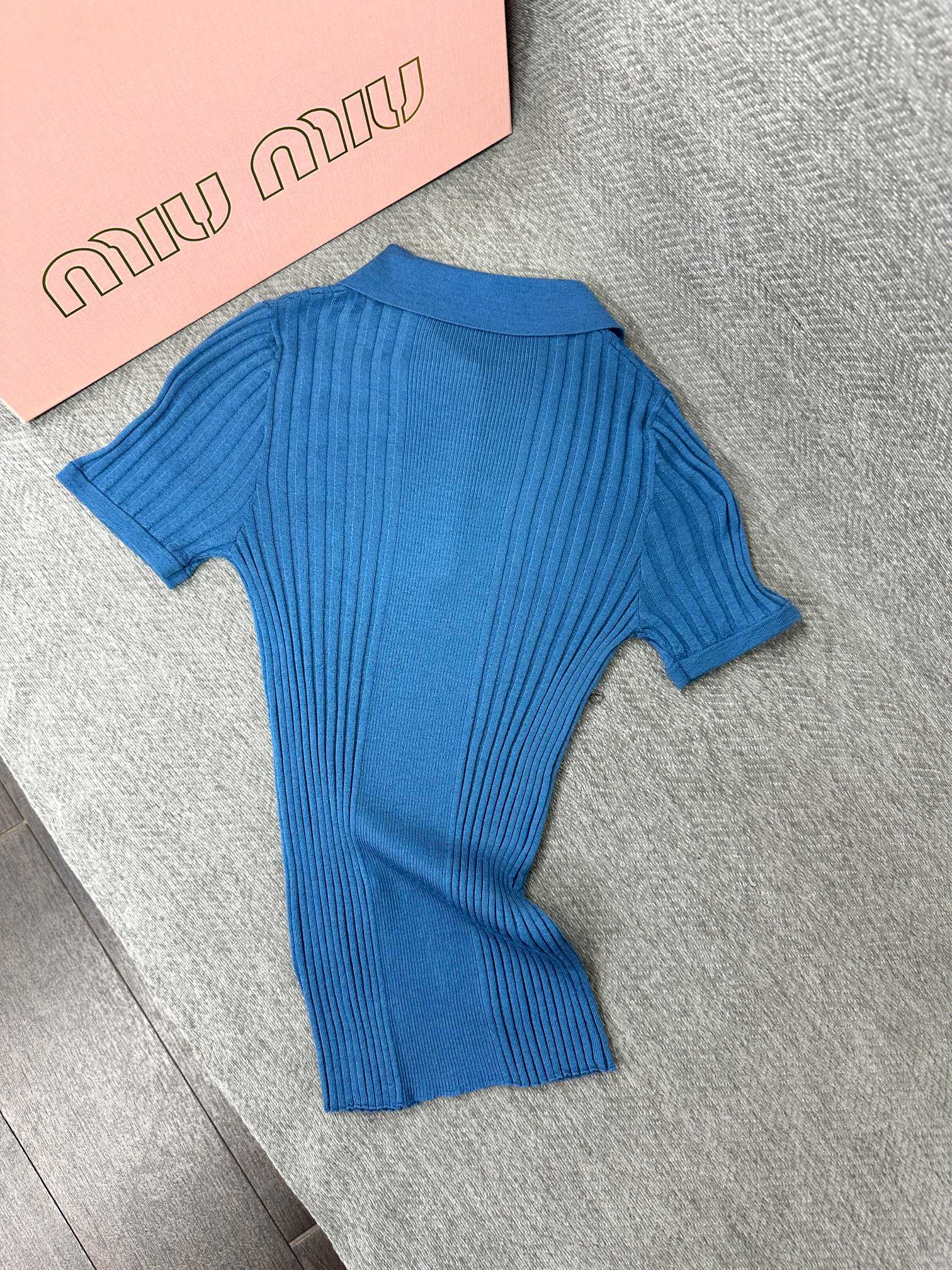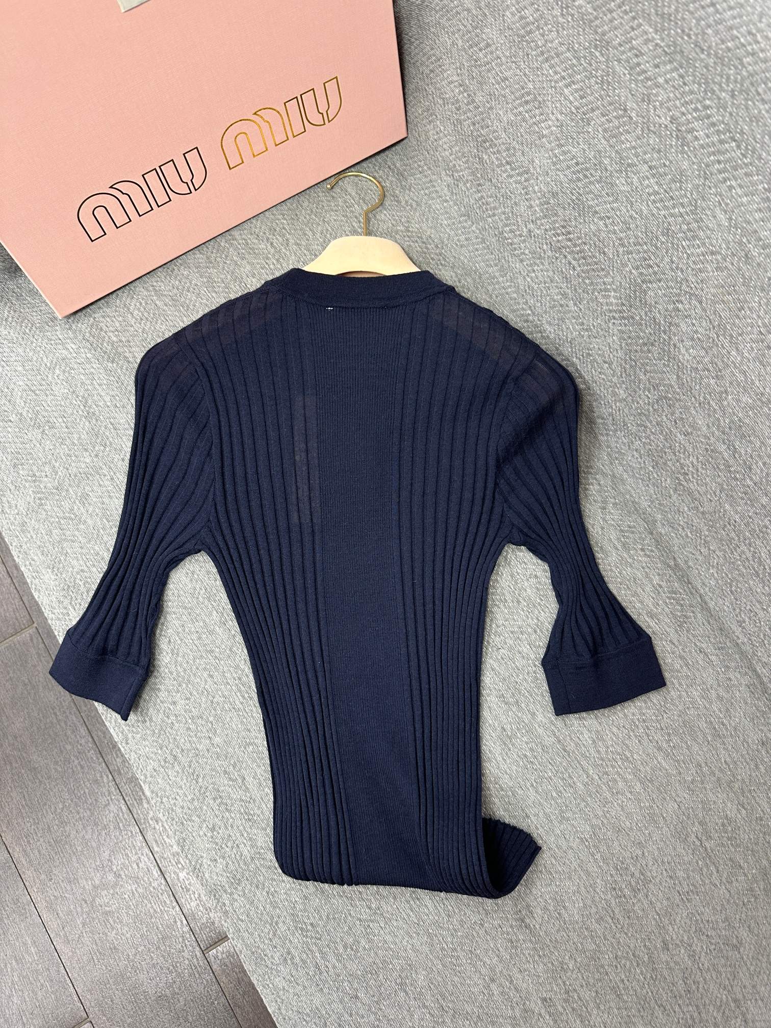 Miu Short-sleeved T-shirt Navy Blue Wool 345306