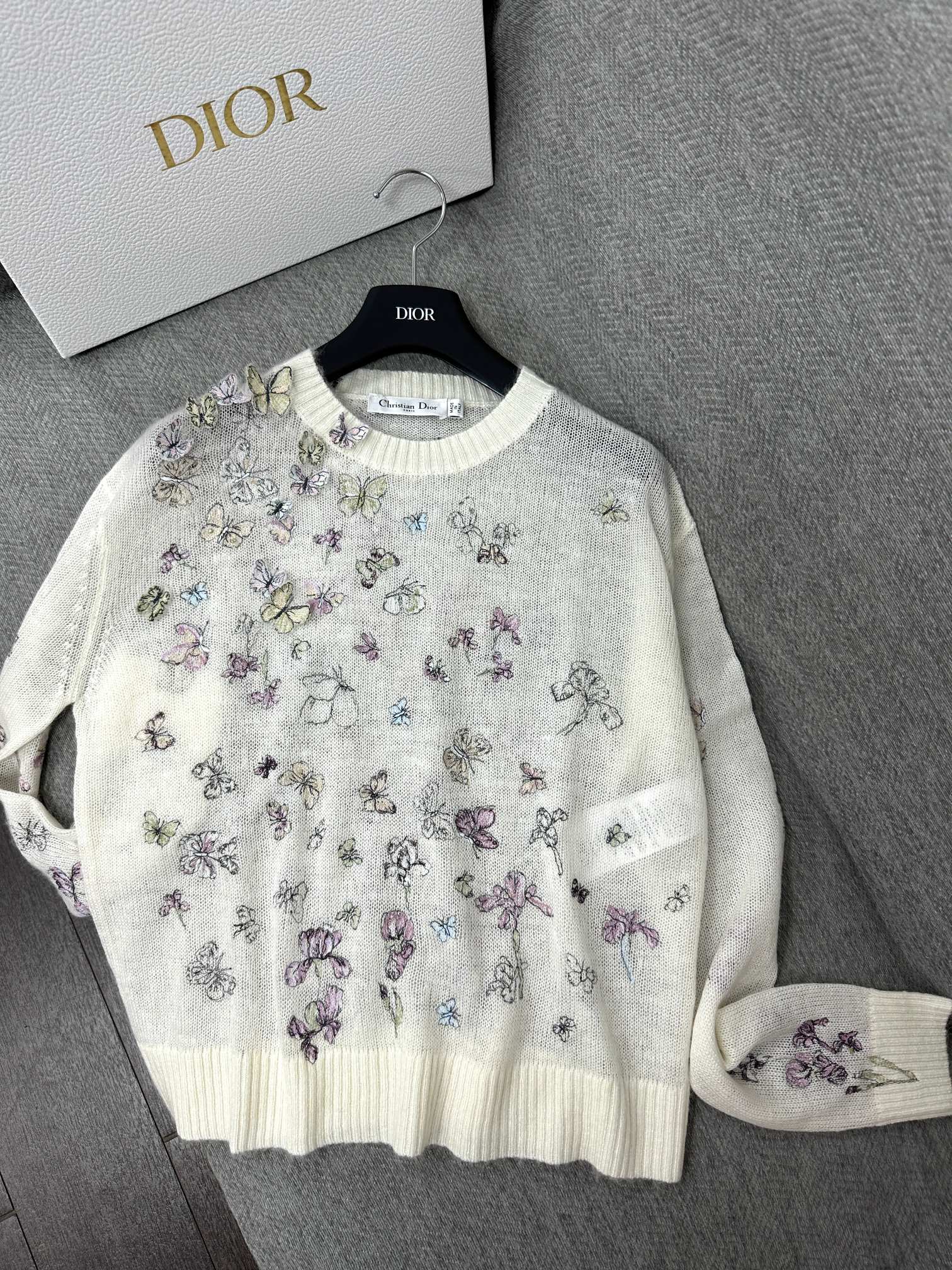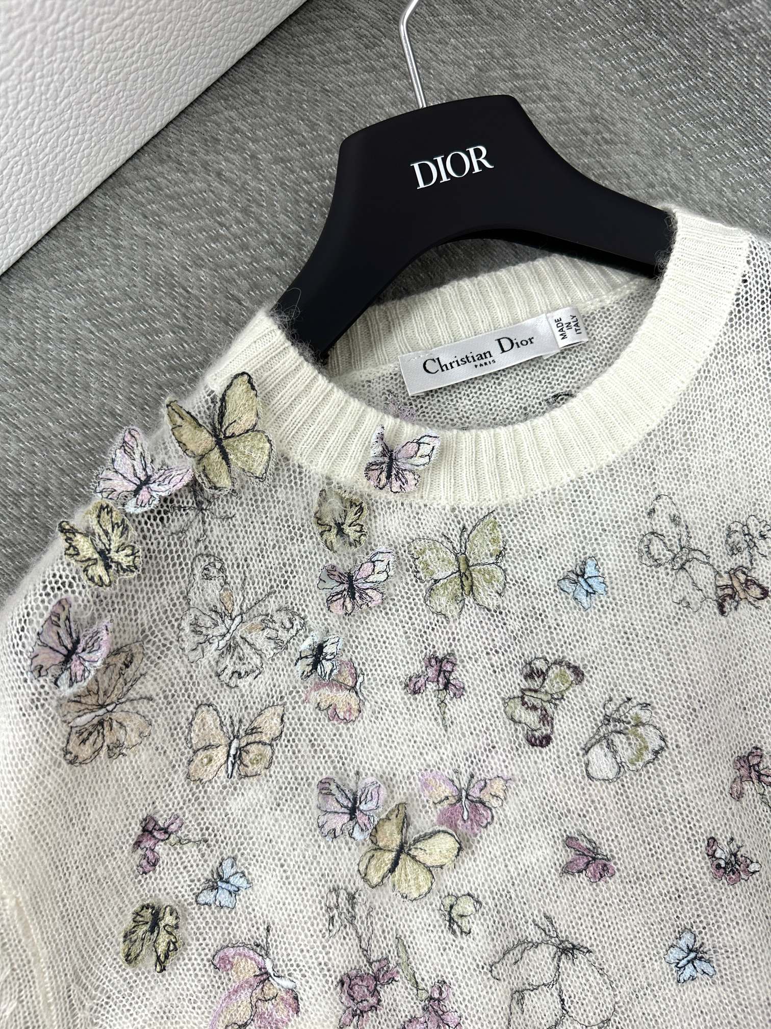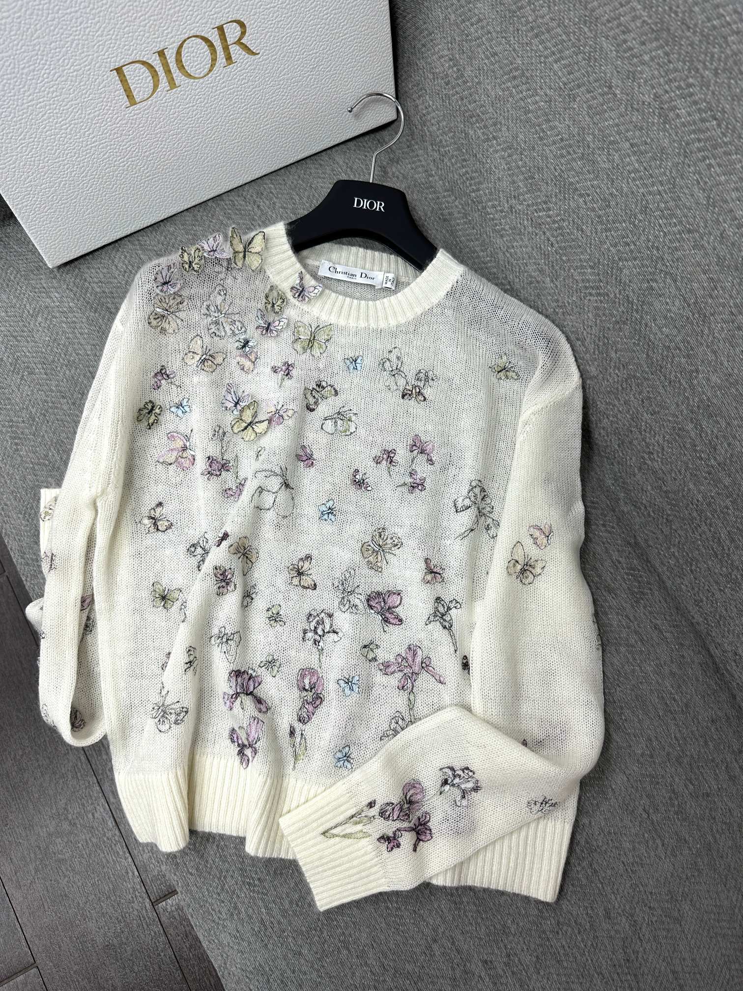 CD Butterfly Embroidered SweaterWhite Alpaca Wool Cashmere 345311
