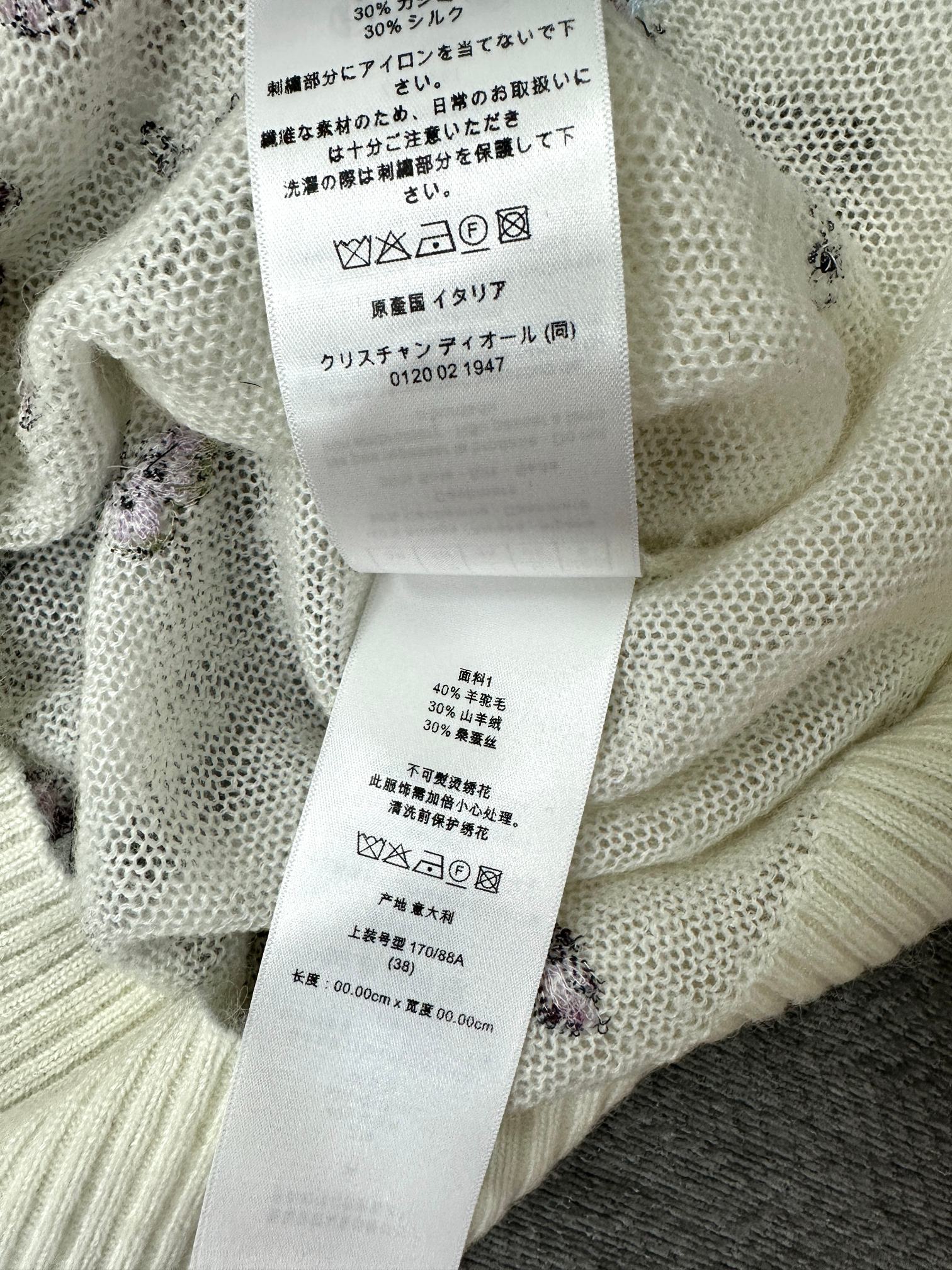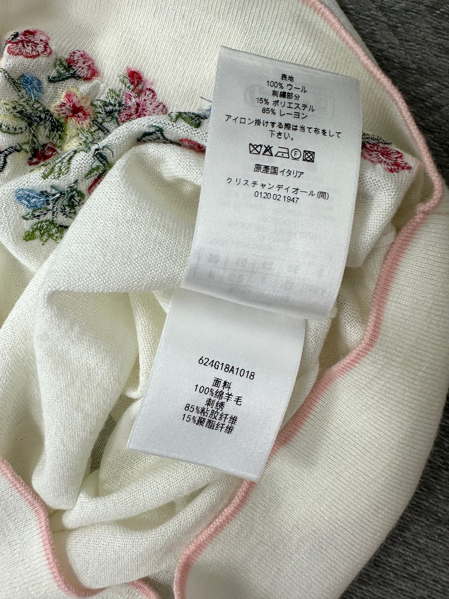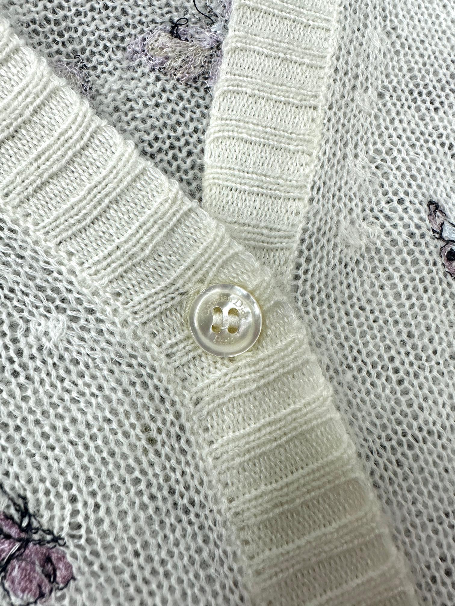 CD Cardigan Small Floral Embroidery Ivory Wool 349481