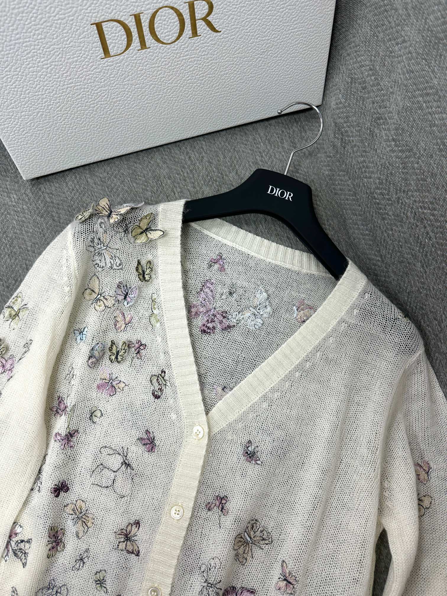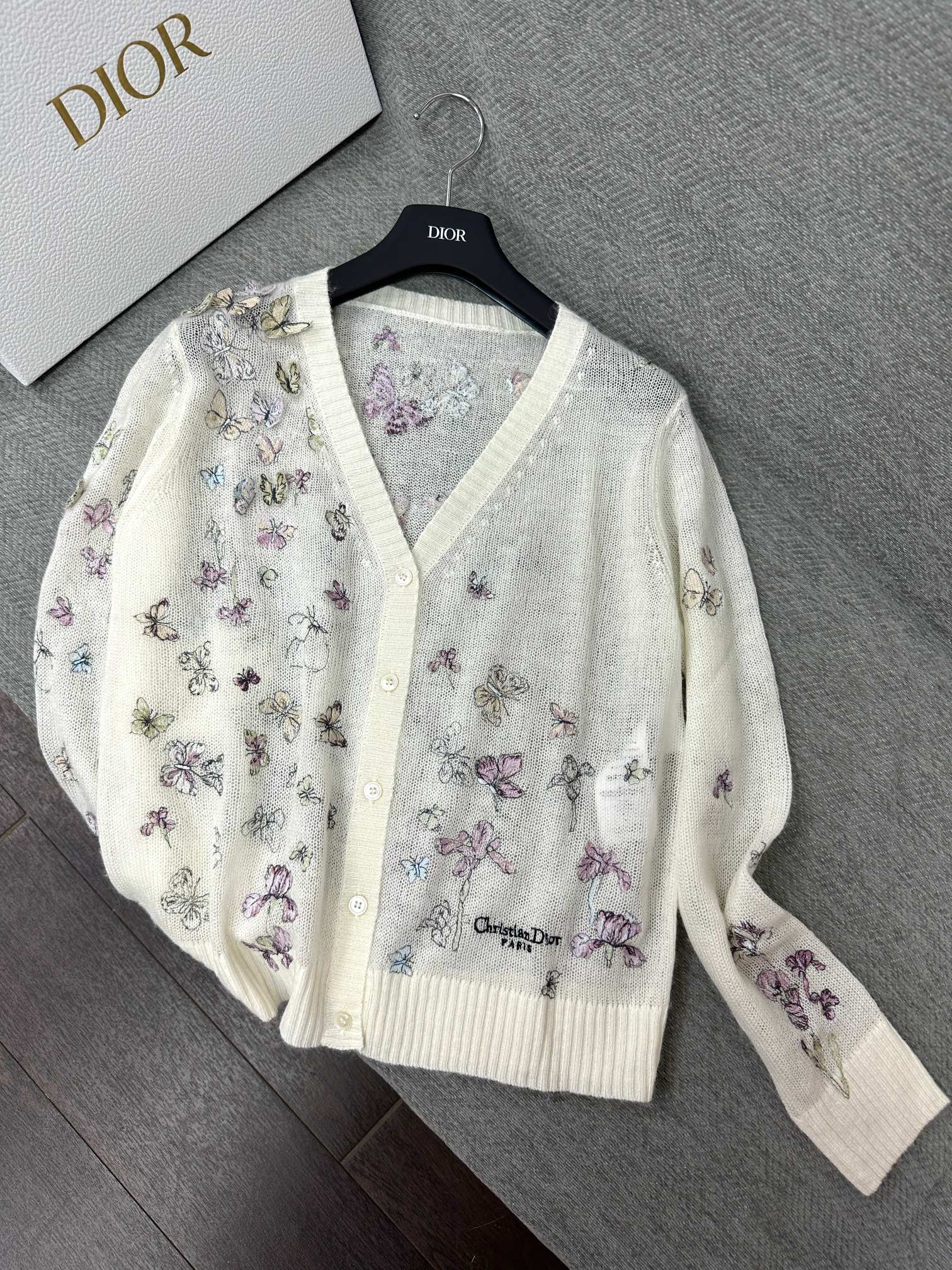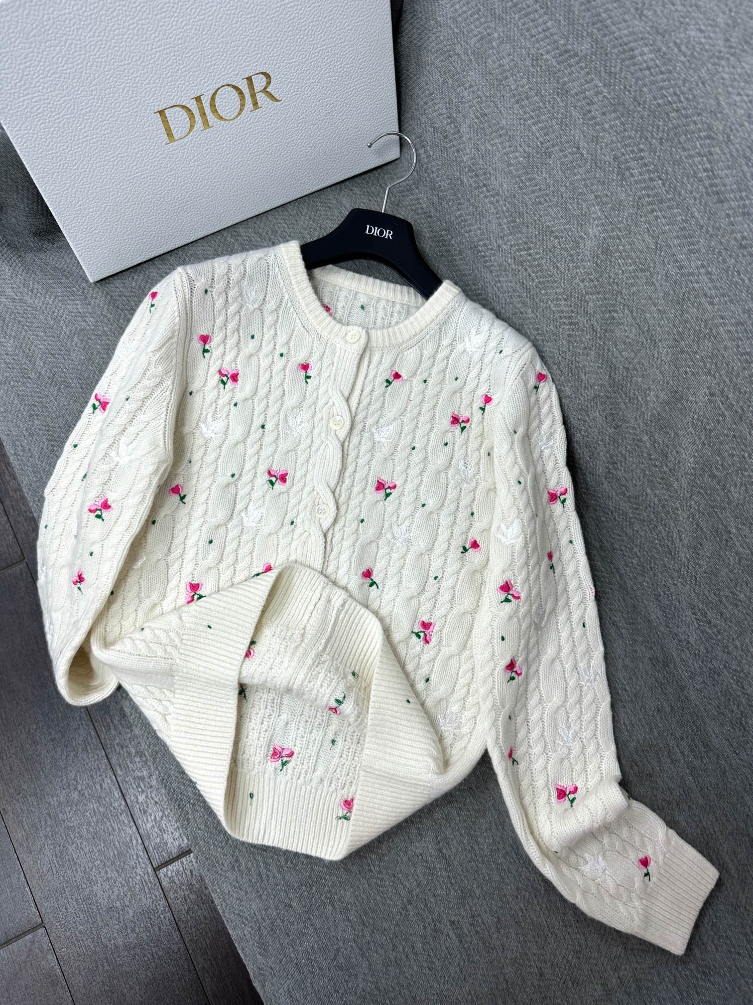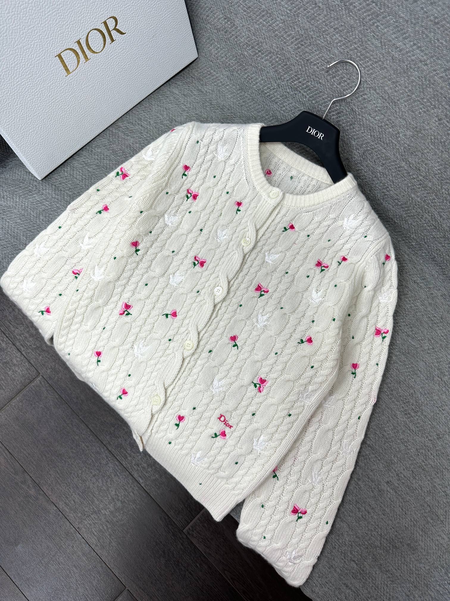 CD Dioramour Cardigan Embroidered Ivory Wool 349490