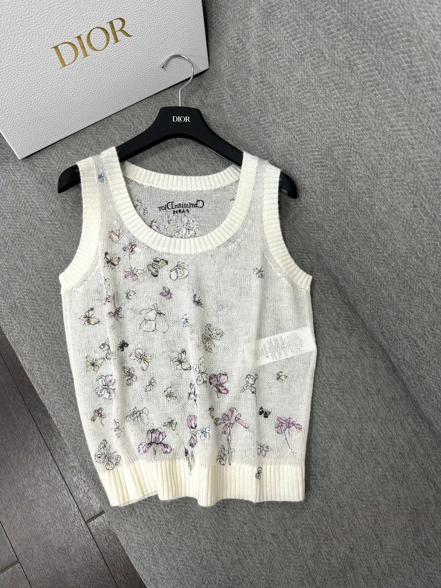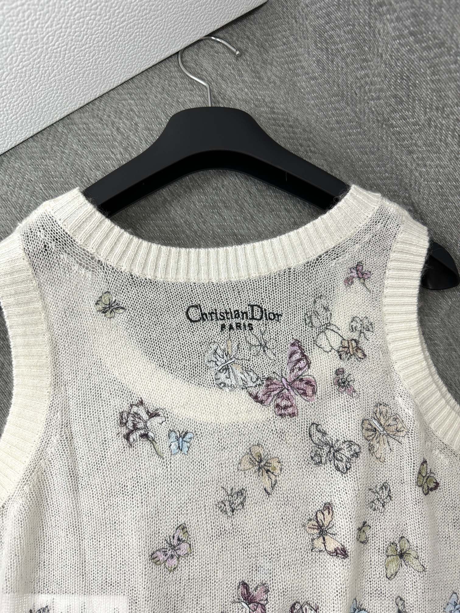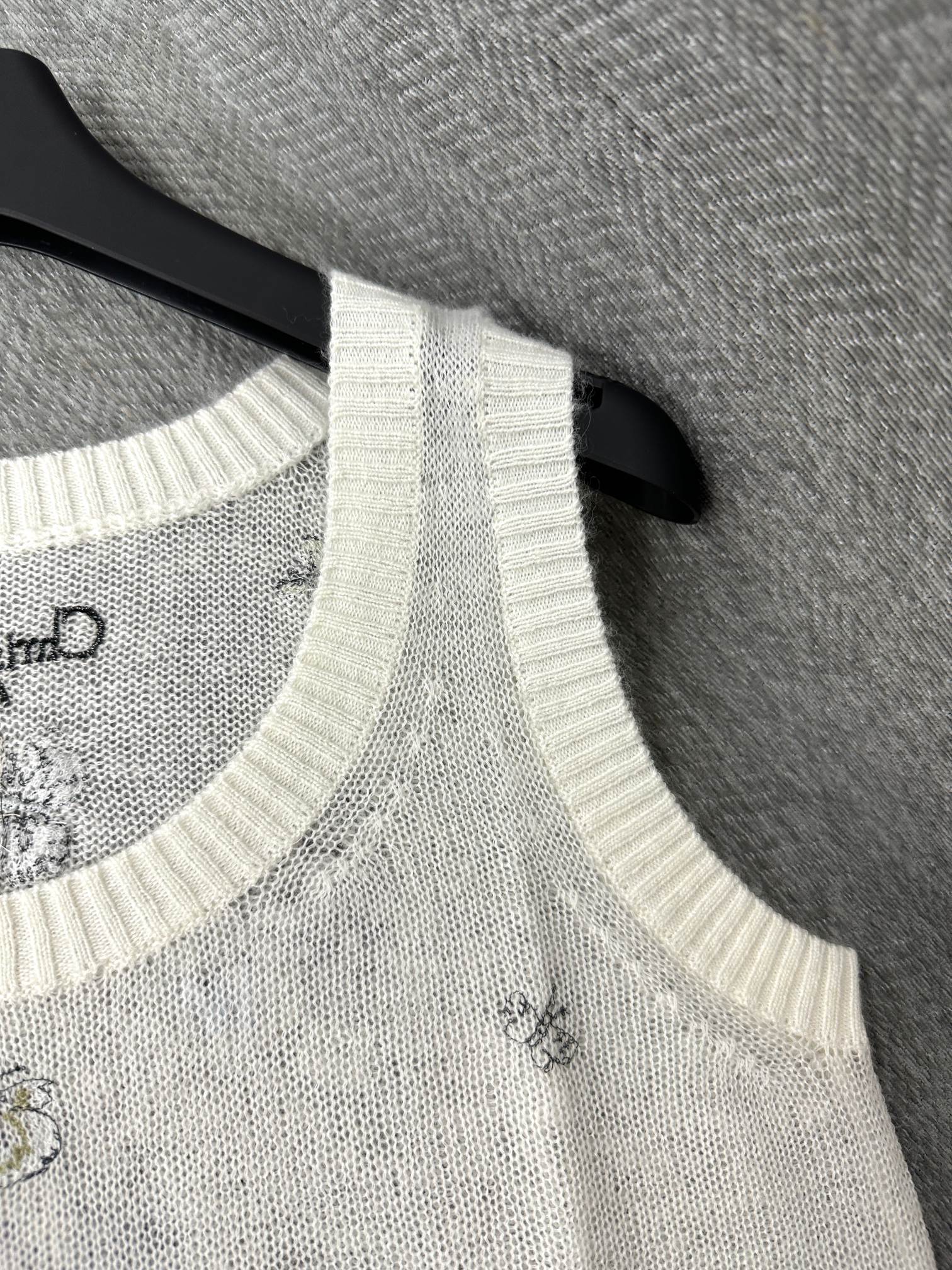 CD Butterfly Embroidered Vest White Alpaca Wool Cashmere 345333