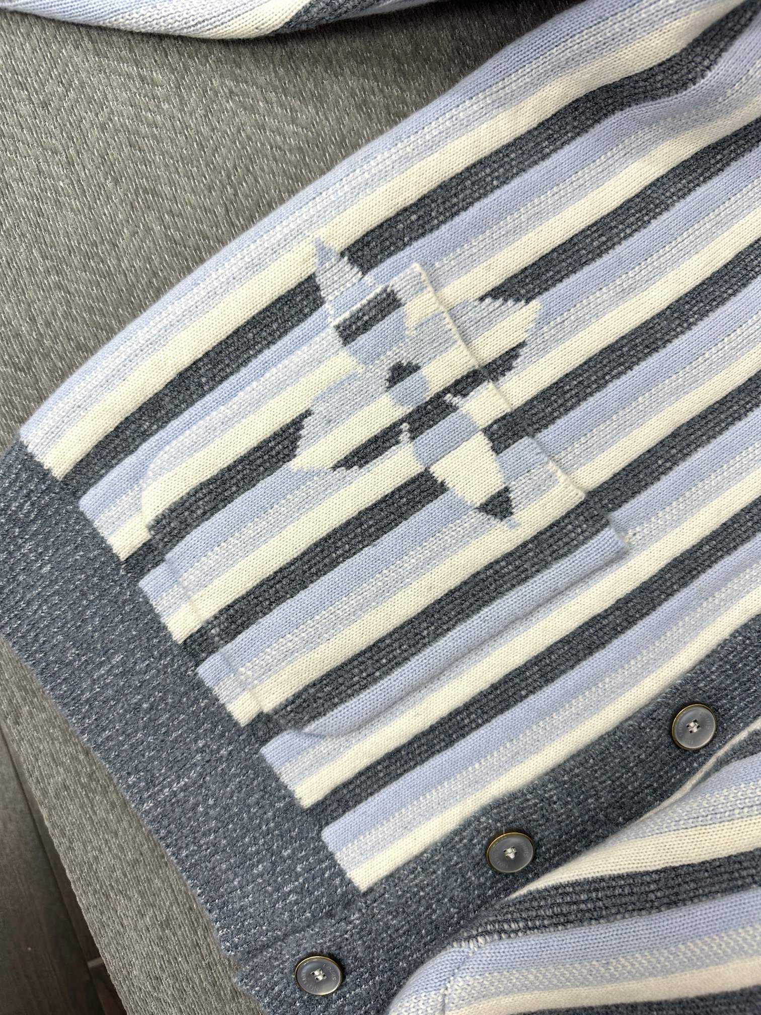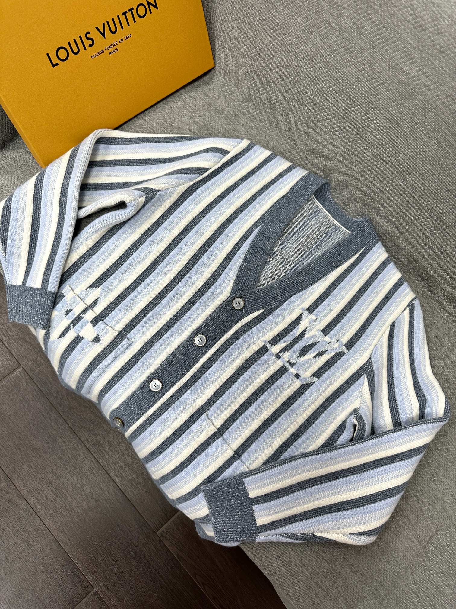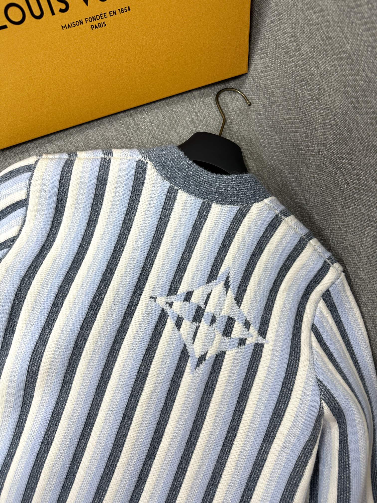 LV Striped Jacquard Cardigan Pale Blue Wool Polyamide