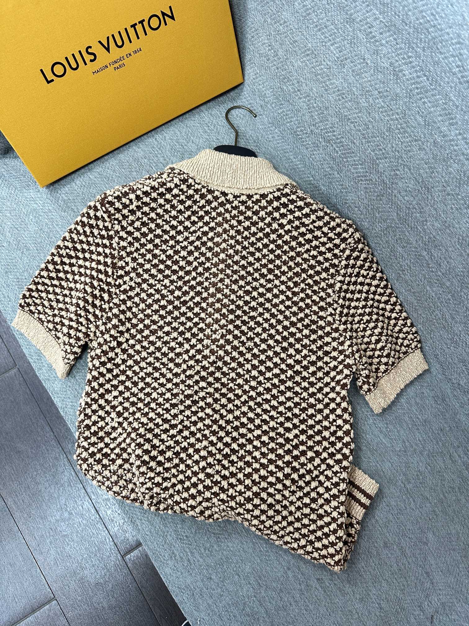 LV Short-Sleeved Knitted Mesh Polo Beige Black Wool