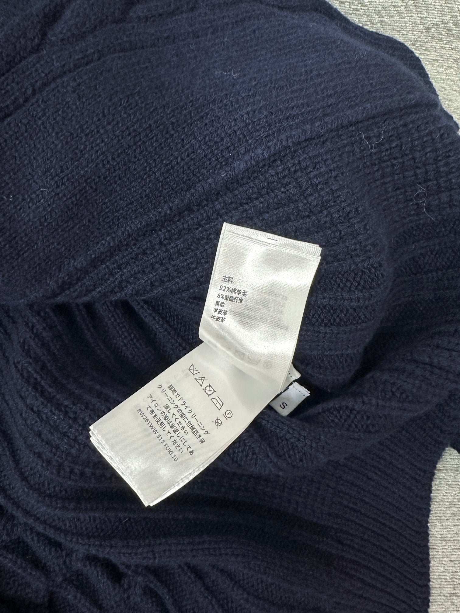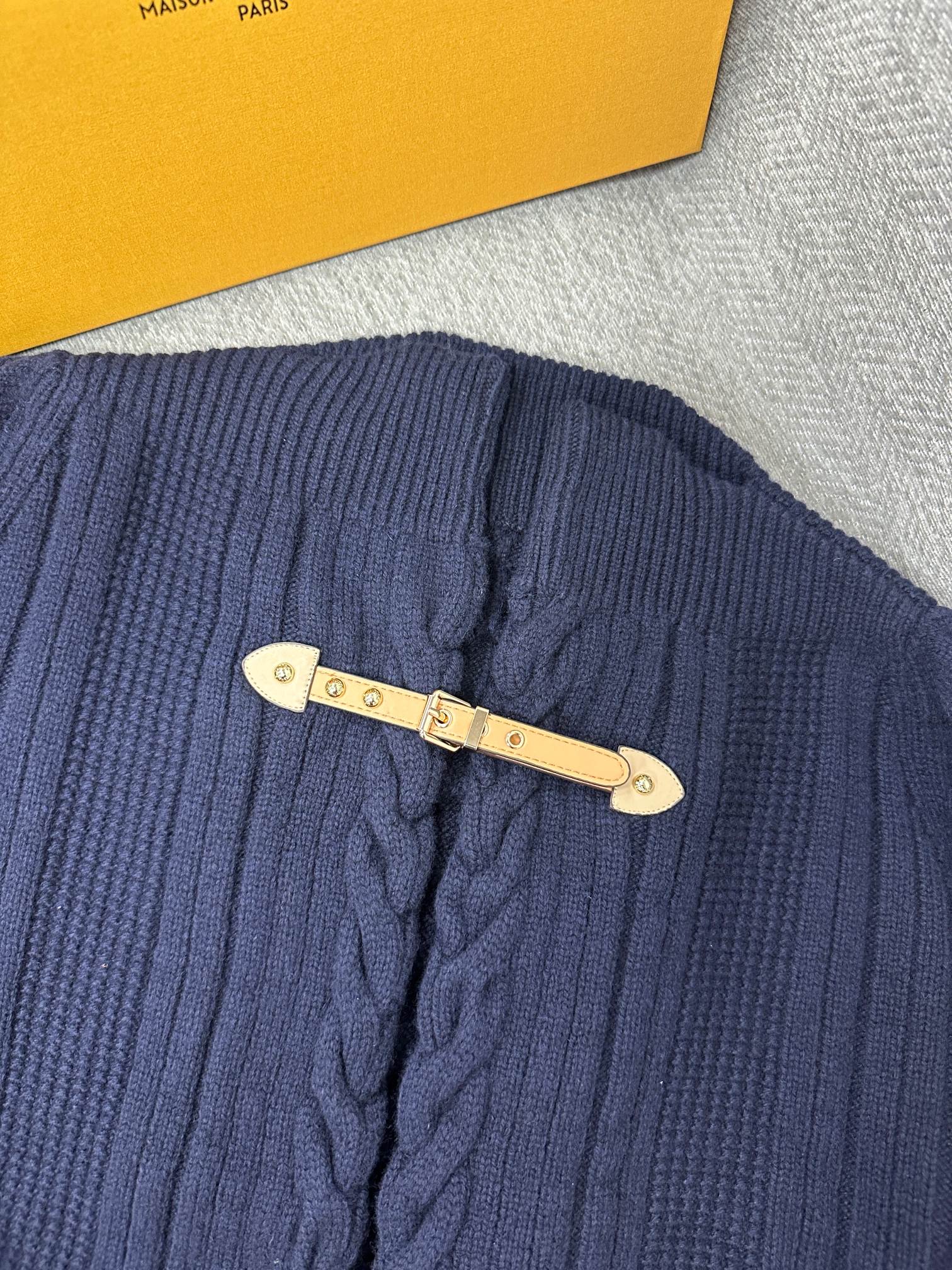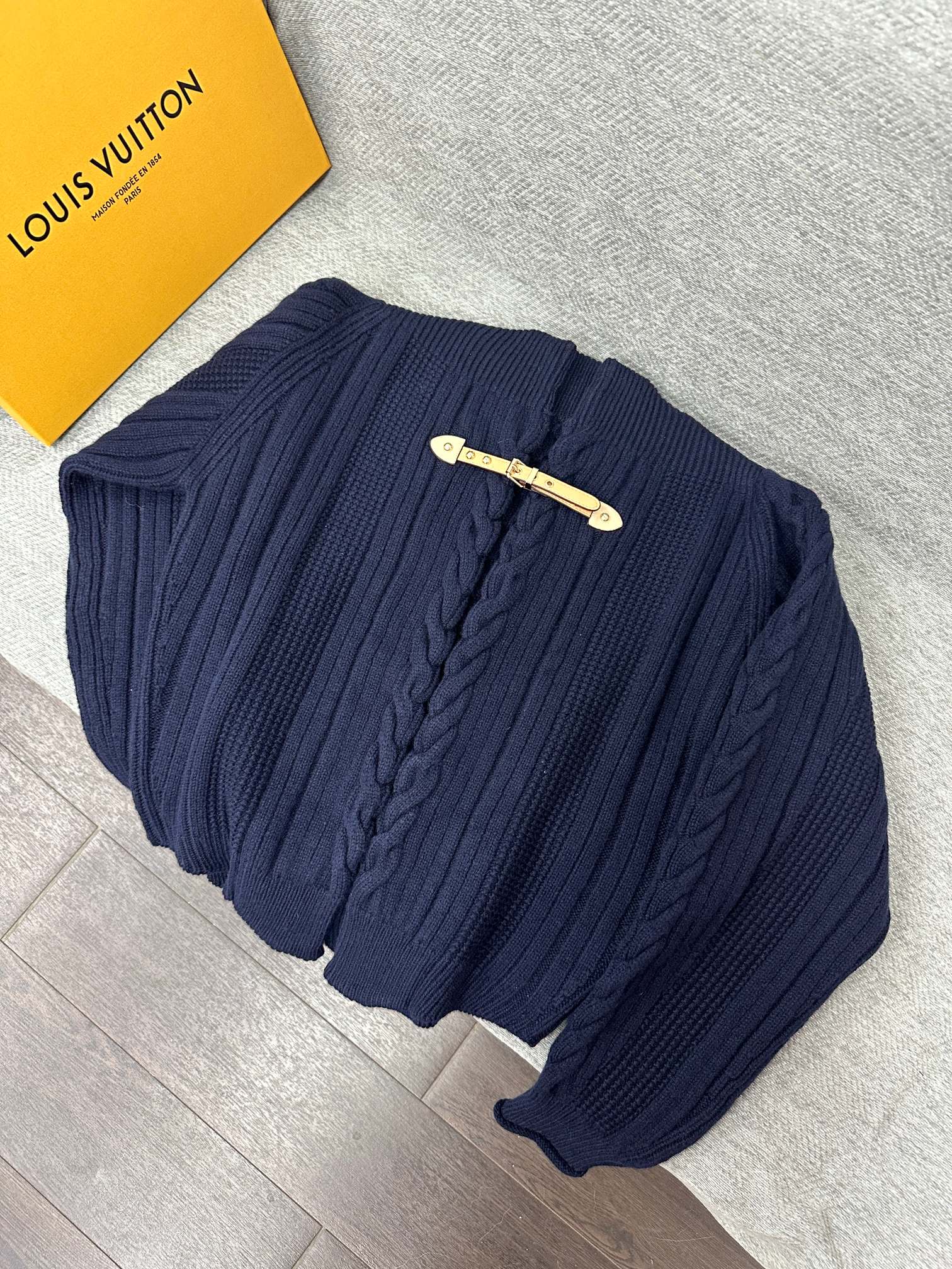LV Strap Front Cable-Knit Cardigan Dark Blue Wool 349453