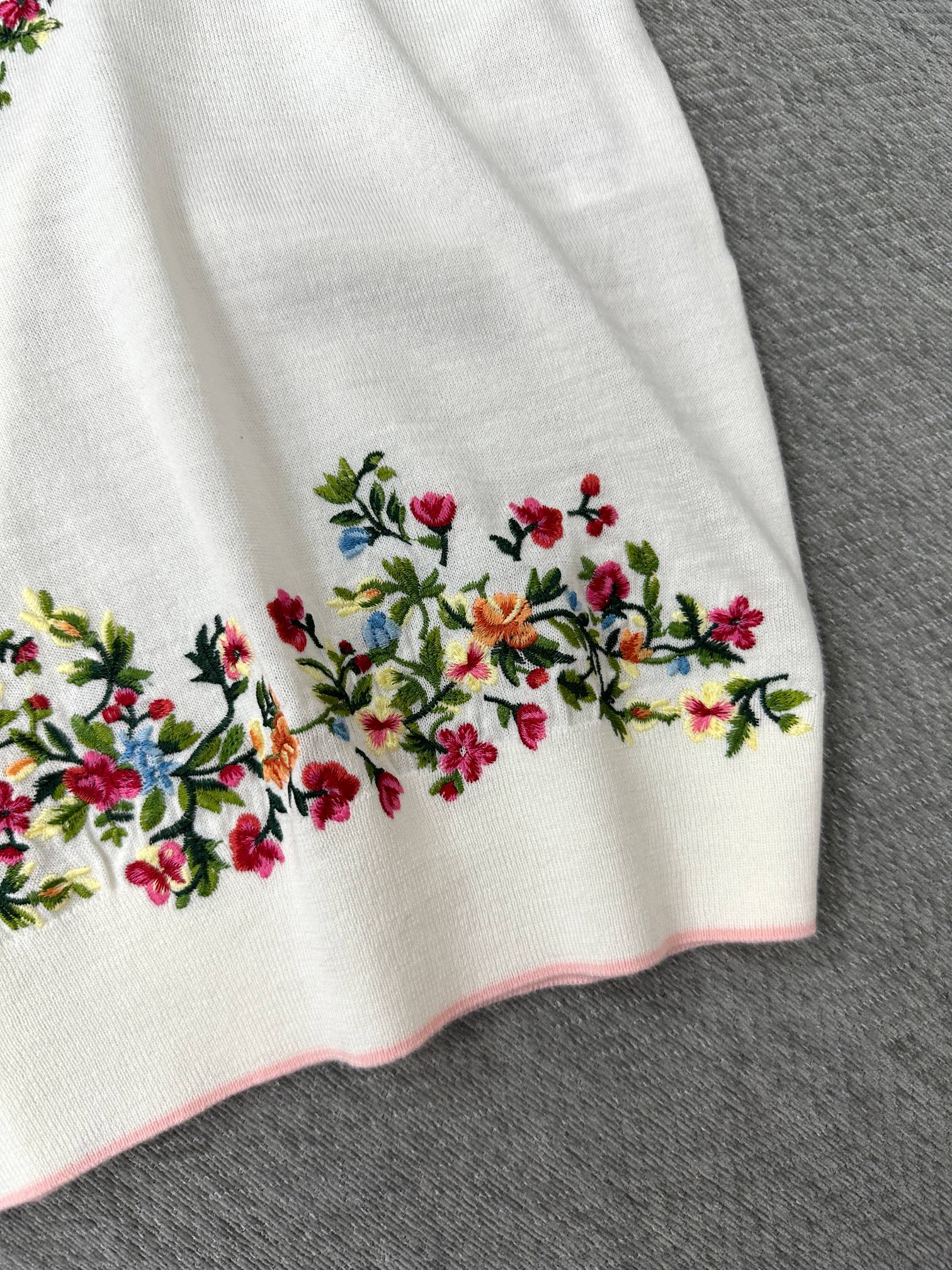CD Short-Sleeved Sweater Small Floral Embroidery Ivory Wool 349483