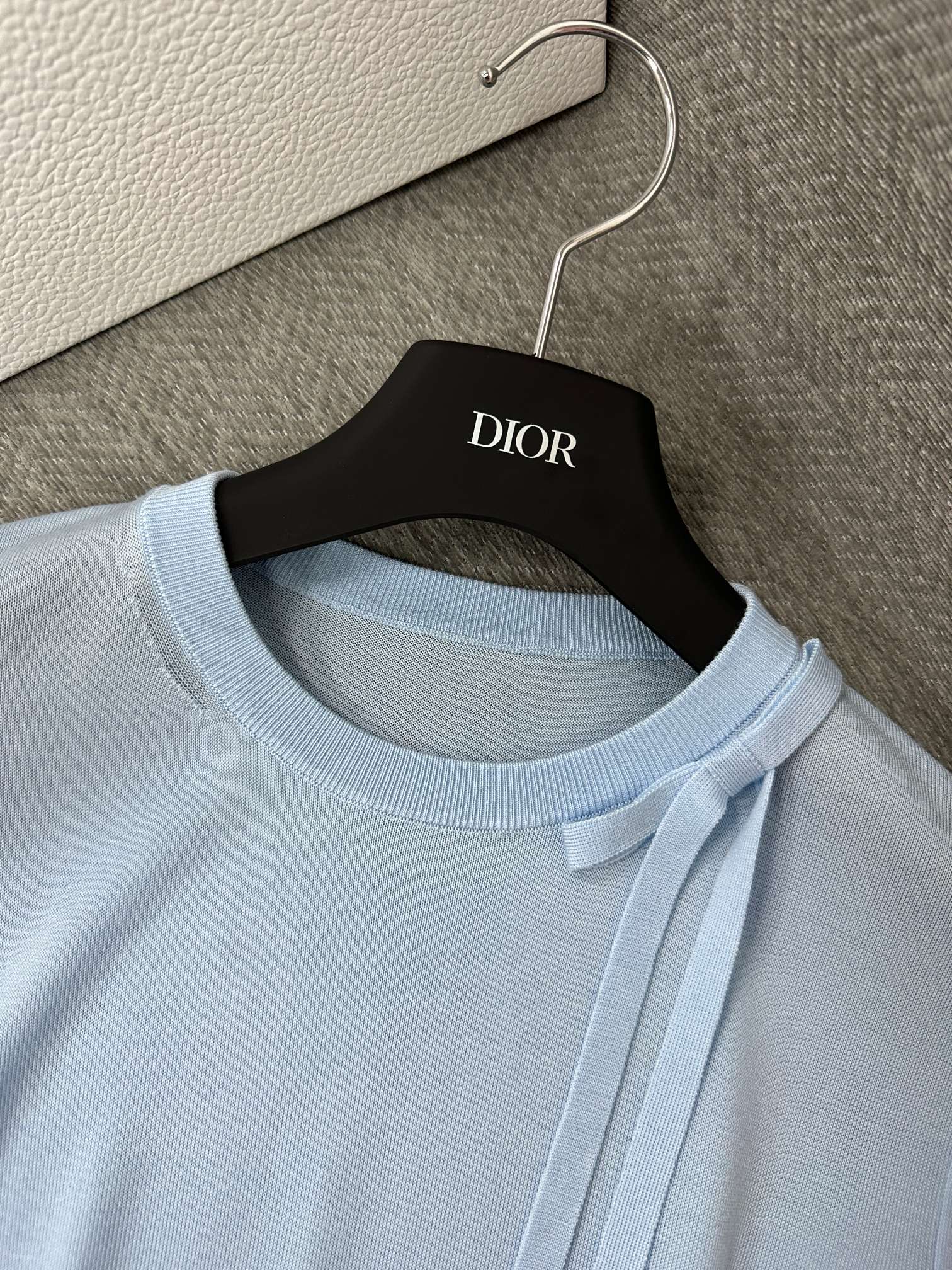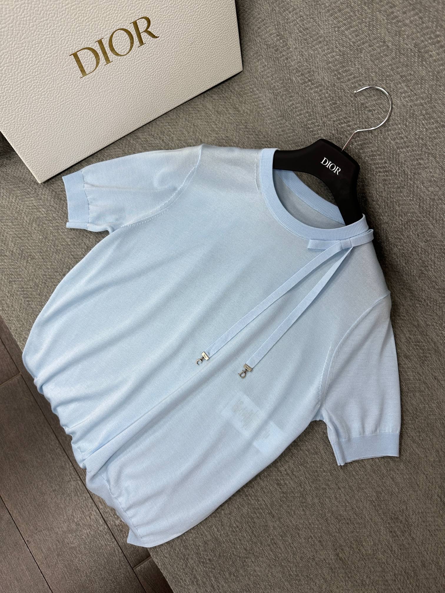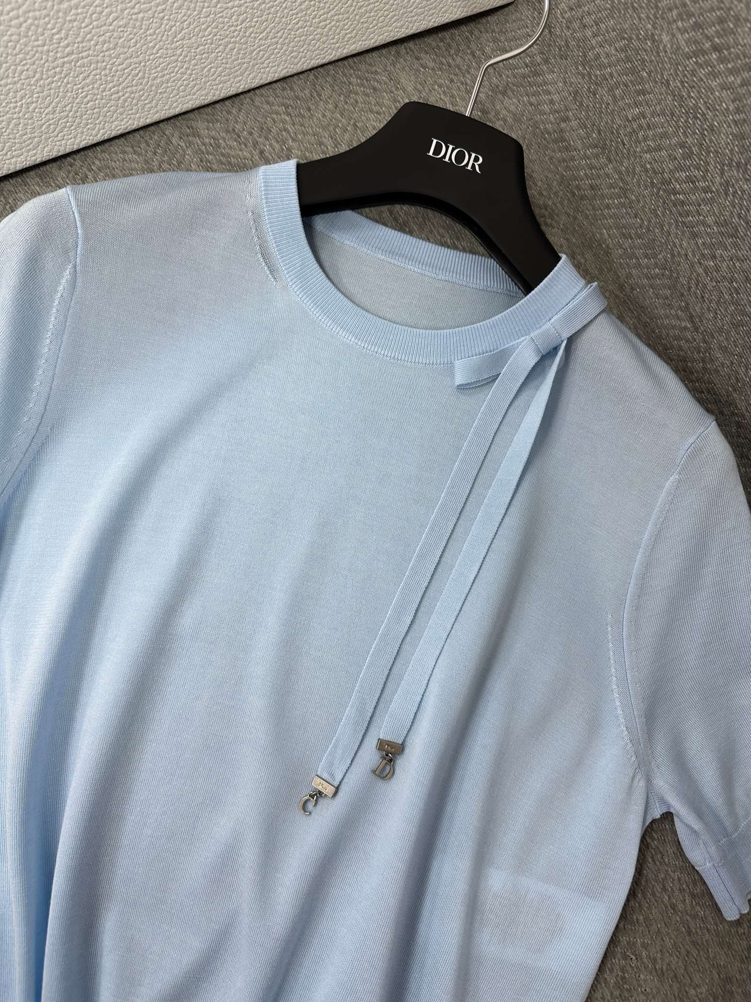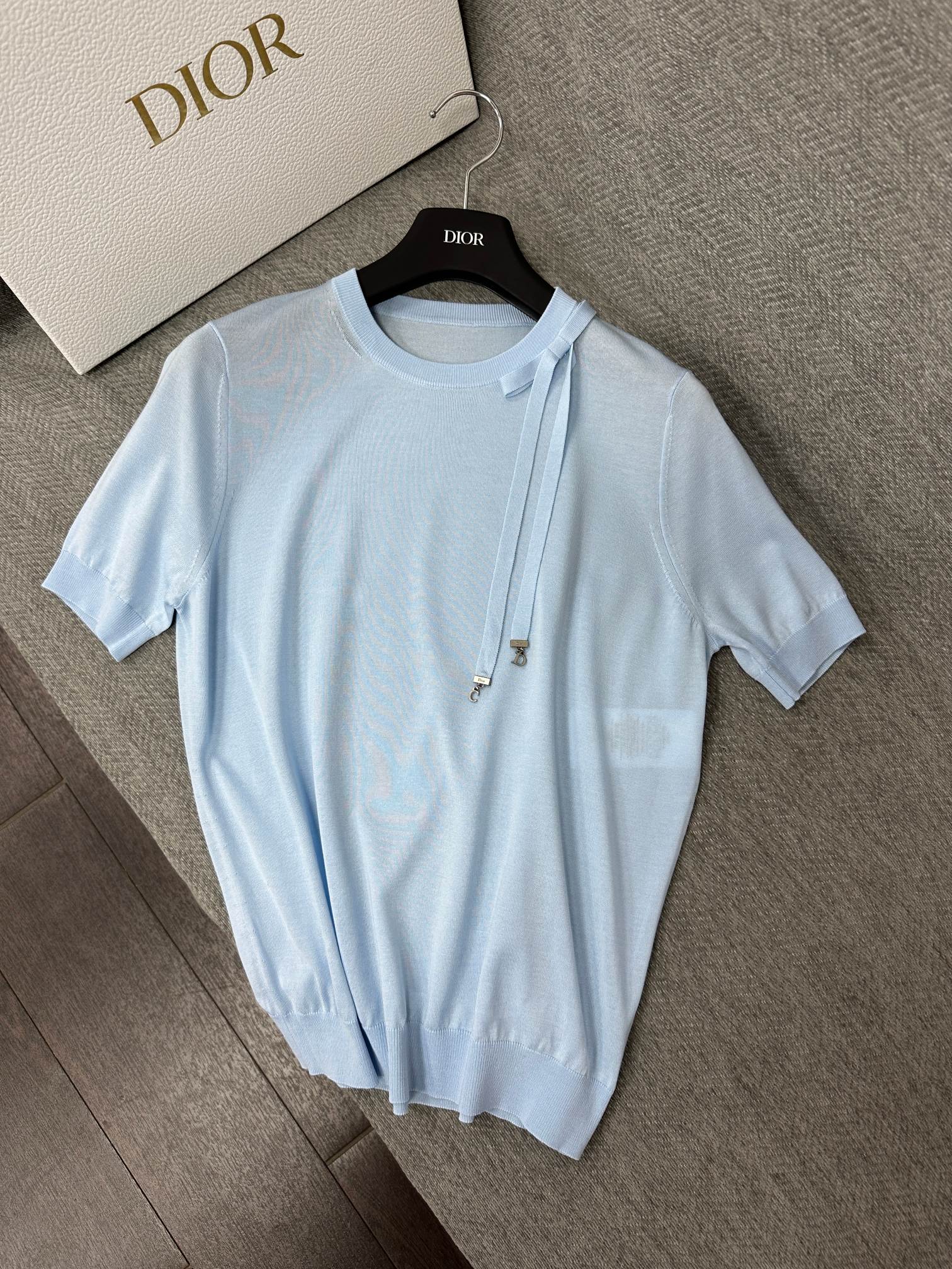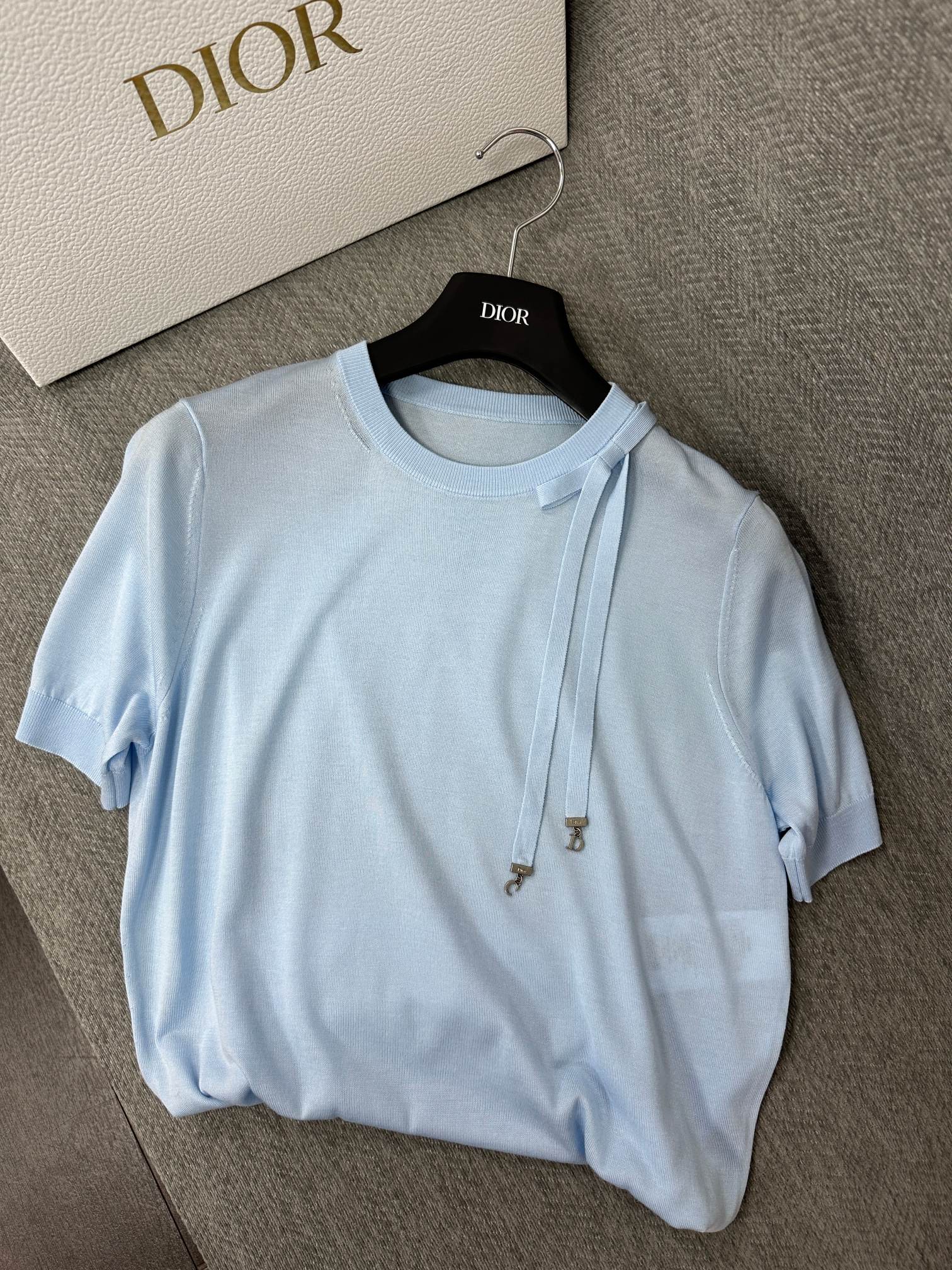 CD Short-Sleeved Fitted Sweater Sky Blue Silk Knit 349493