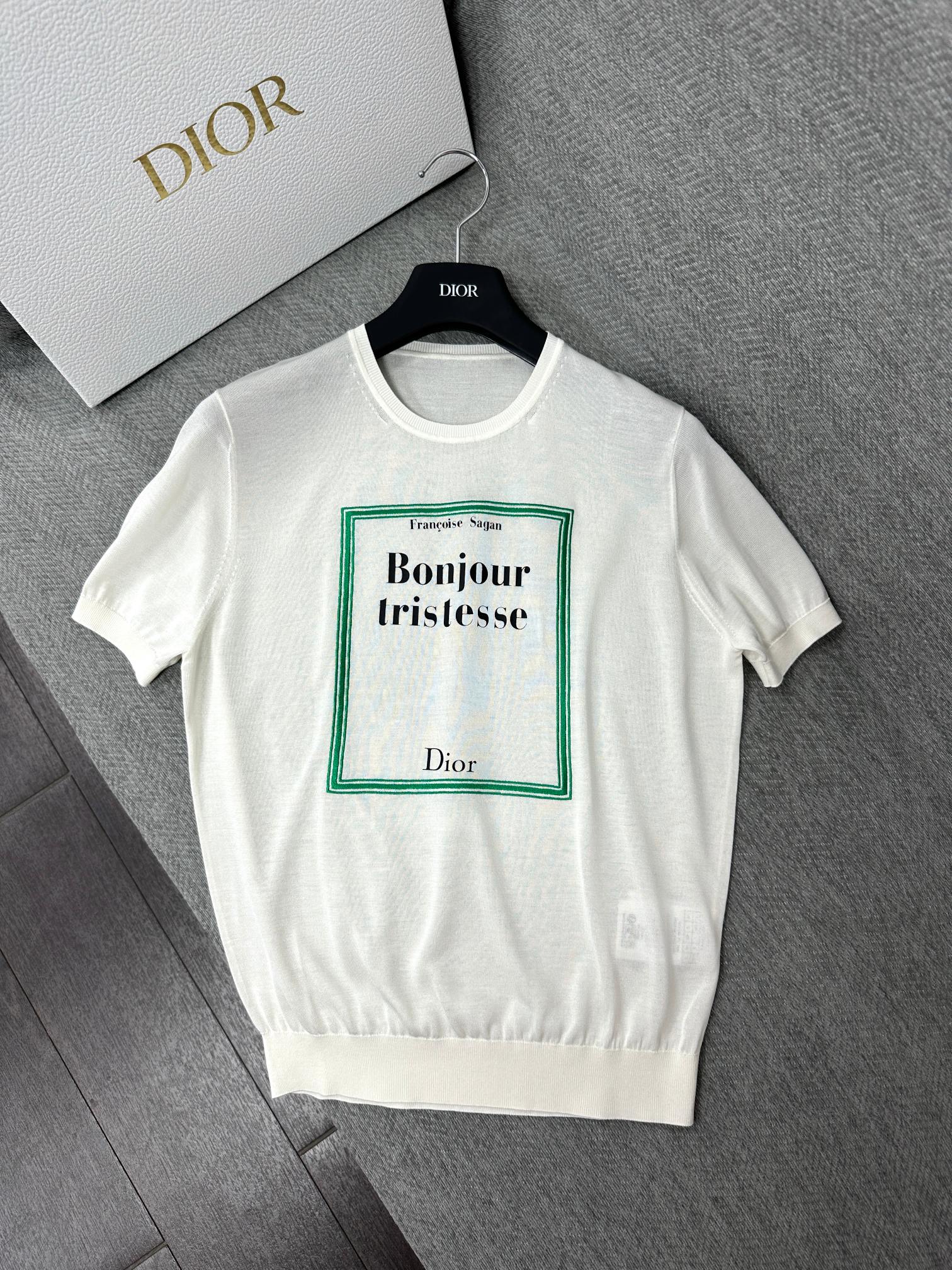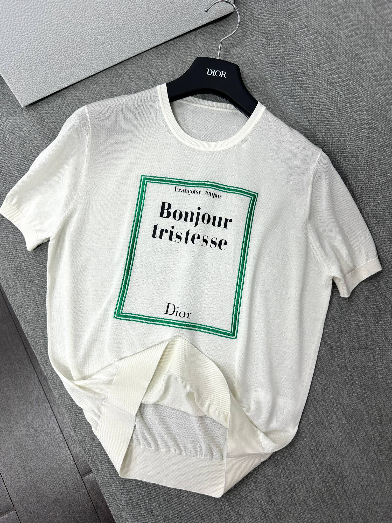 CD Fitted Short-Sleeved Sweater White Wool 345327