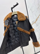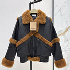 Burberry 25 Shearling-trimmed Bomber Jacket Black Brown Fur Leather