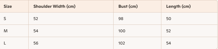 - For more information, please see the size guide below