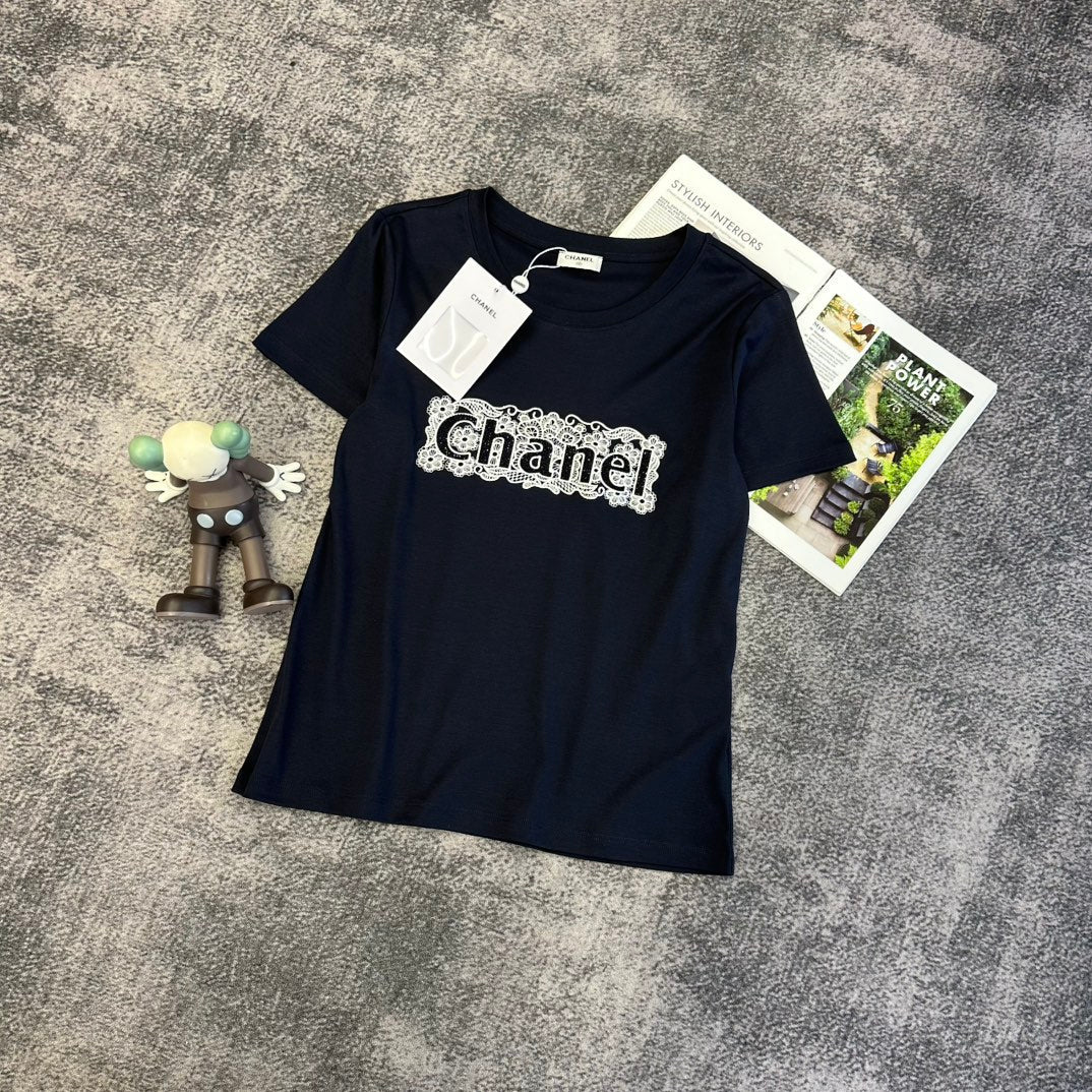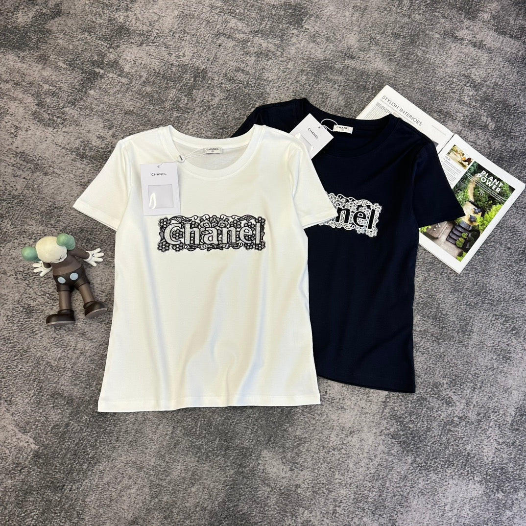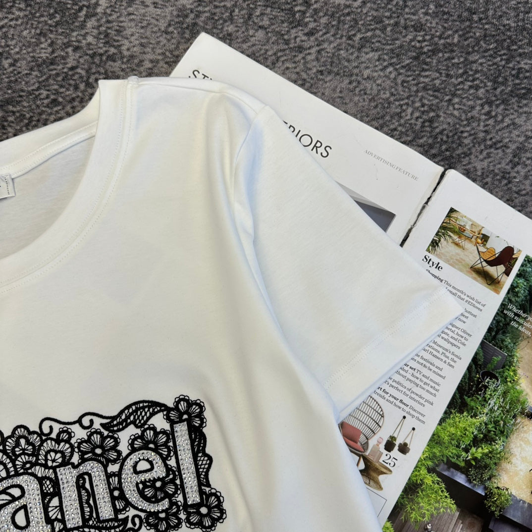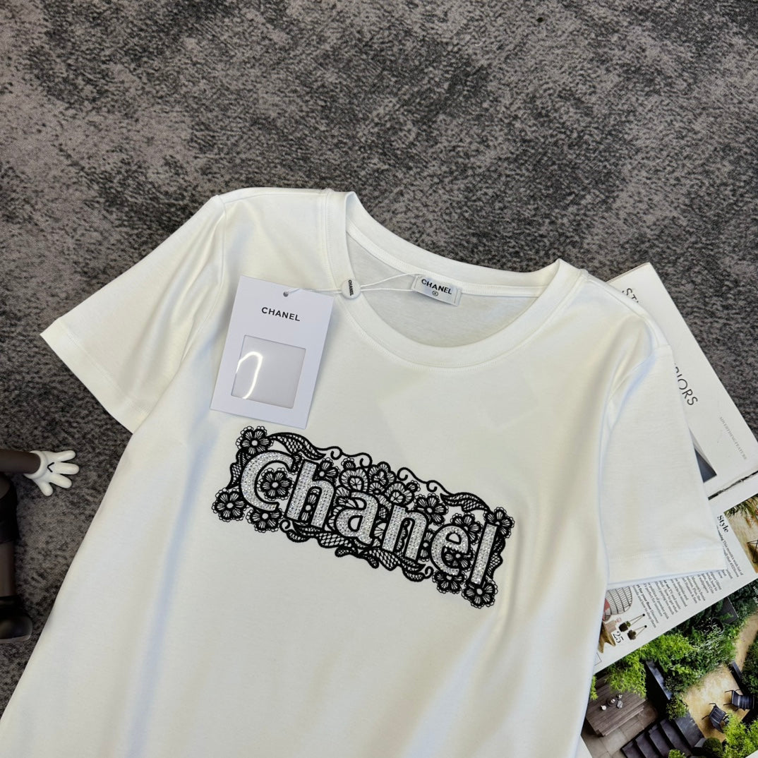 CC SS26 Lace Embroidery Logo T-Shirt Cotton 350573