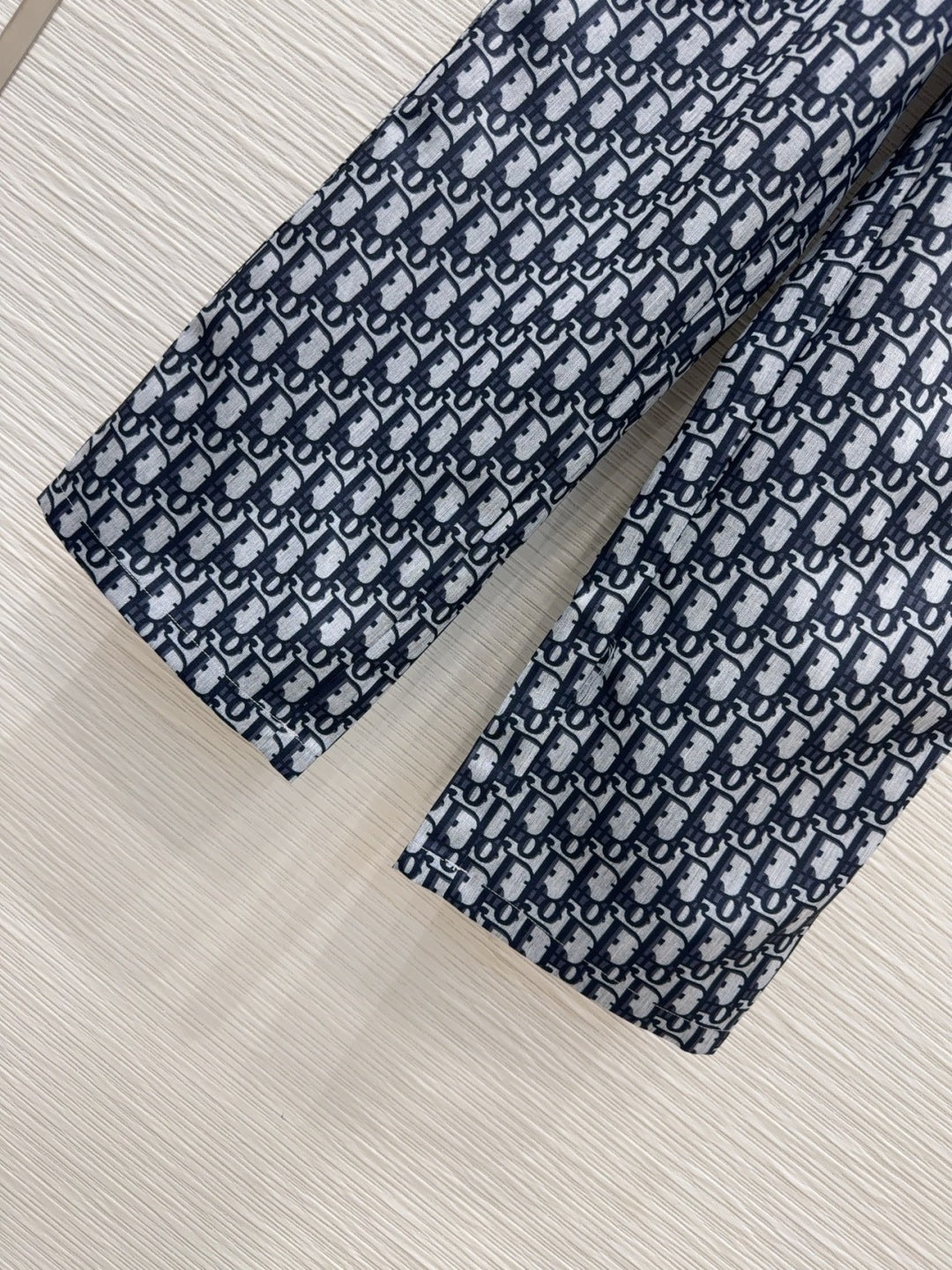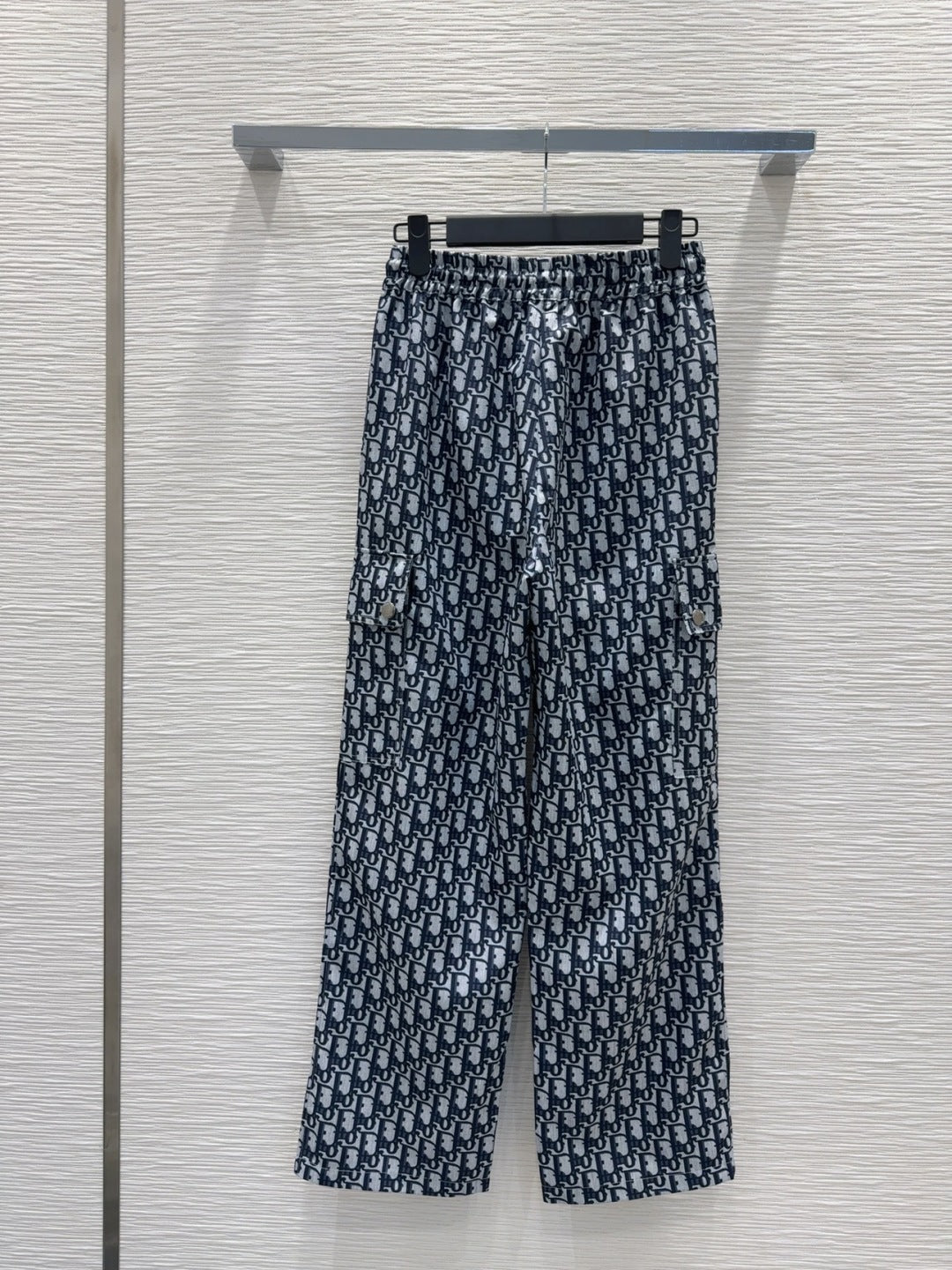CD 2025 Monogram Straight Trouser Blue Grey Polyester