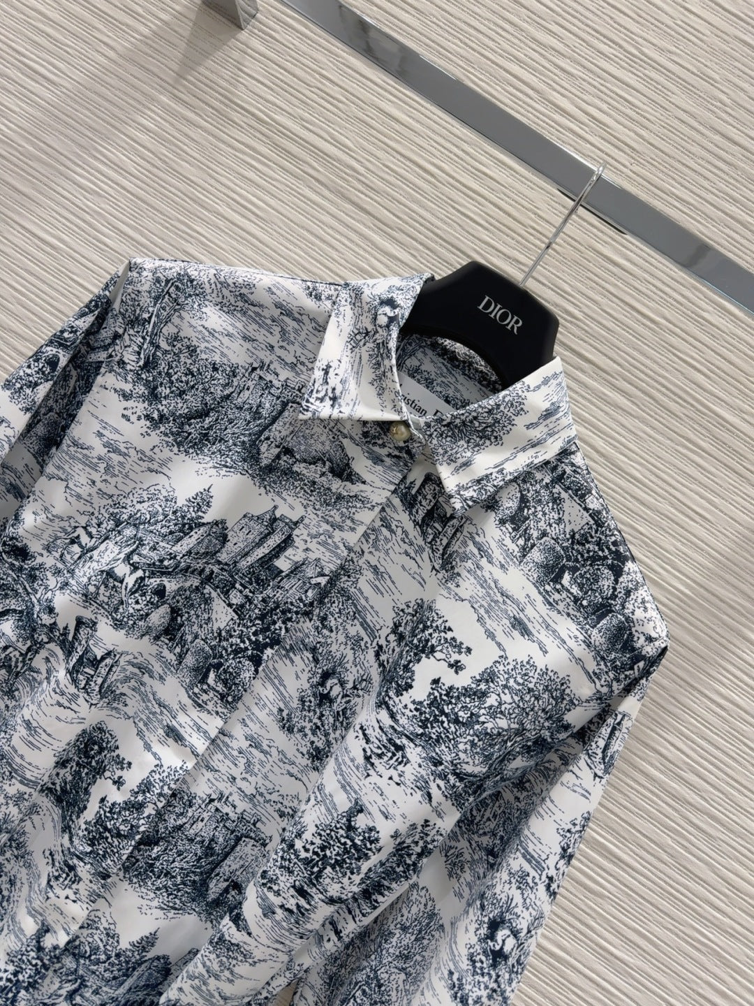 CD 2025 Toile de Jouy Dress White Navy Blue Polyester