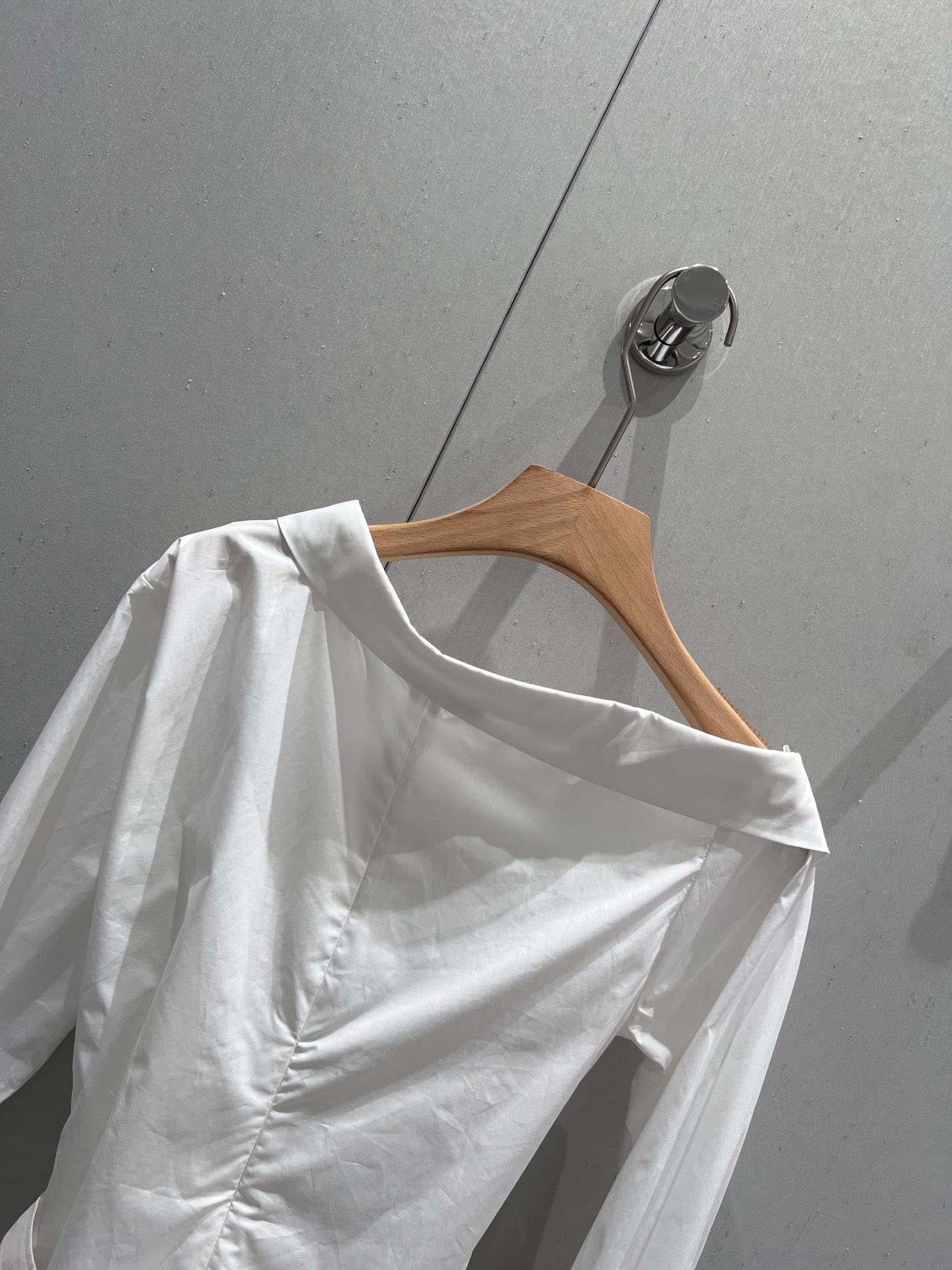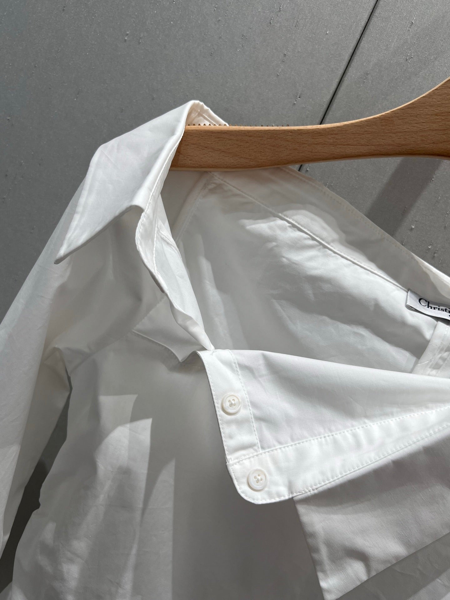 CD 25 Off-shoulder Pleated Belt Short Shirt White Cotton 217596