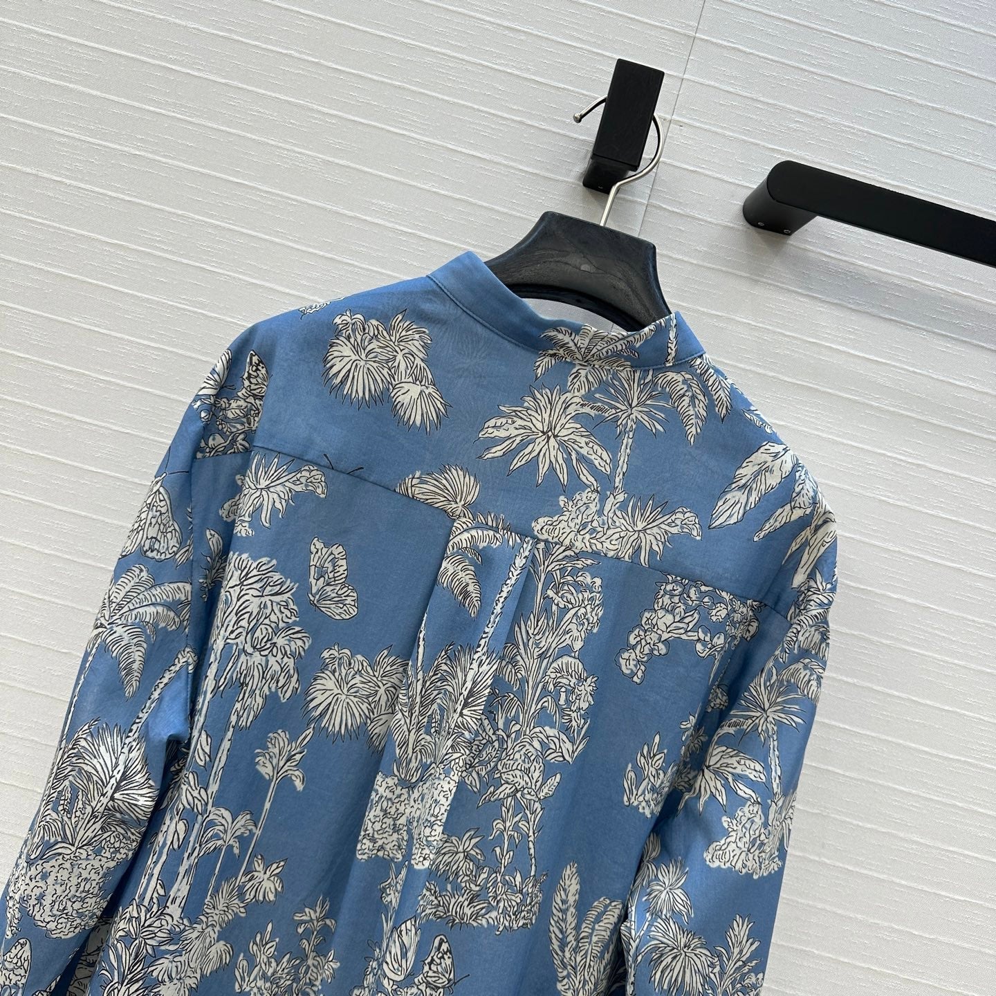 CD 25 Pleated Flared Forest Shirt Blue White Cotton