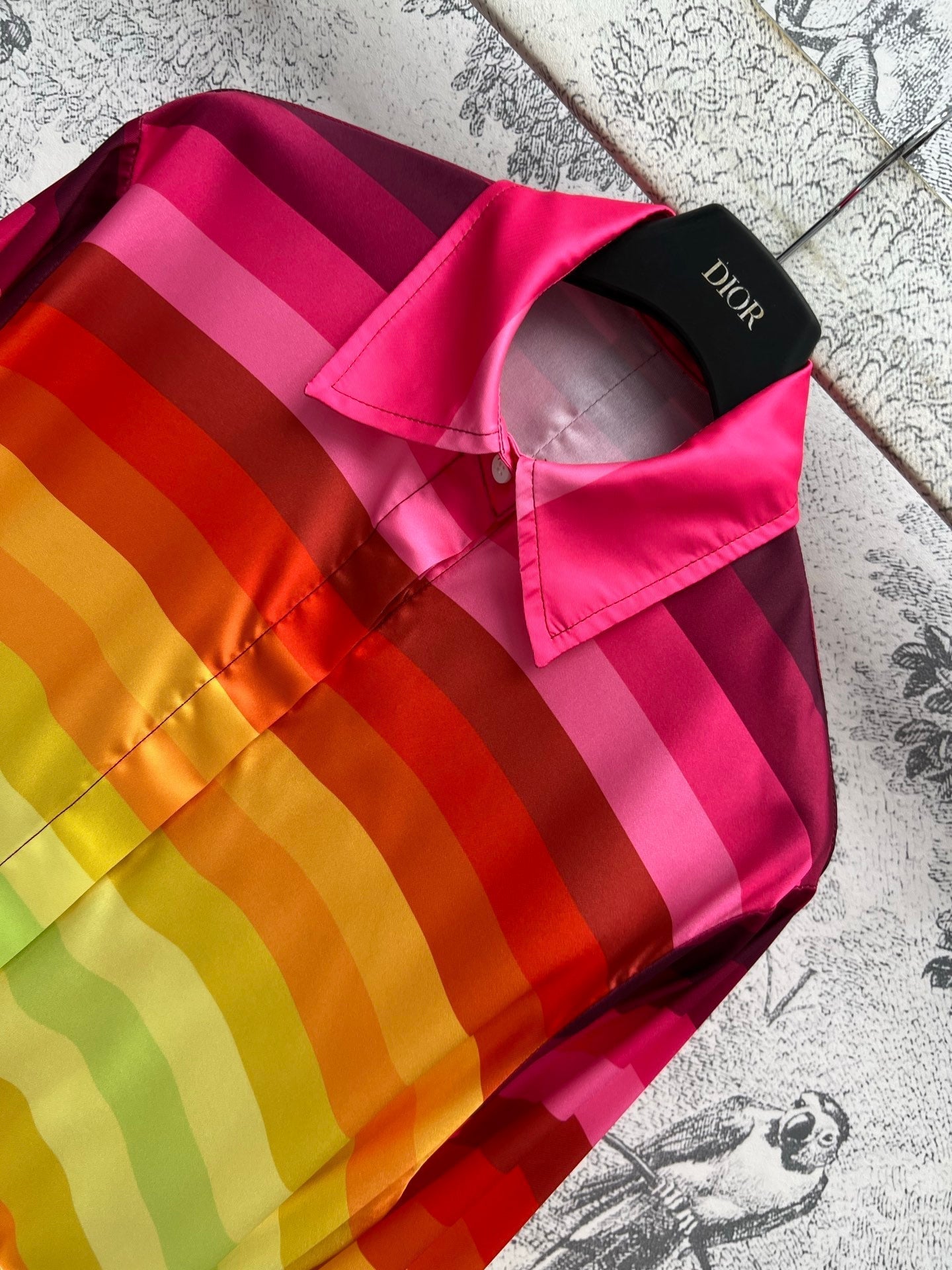 CD 25 Rainbow Stripes Shirt Dress Multicolor Polyester
