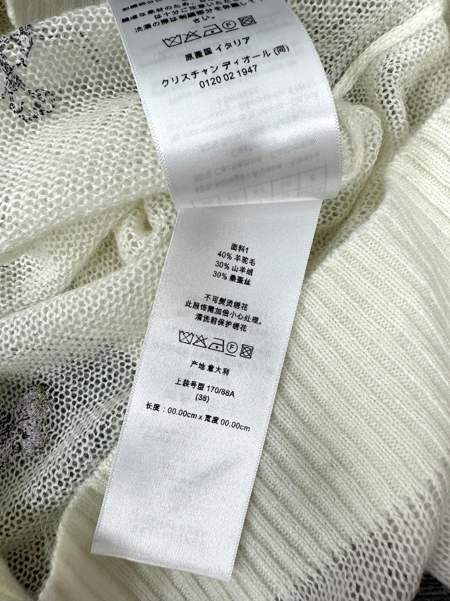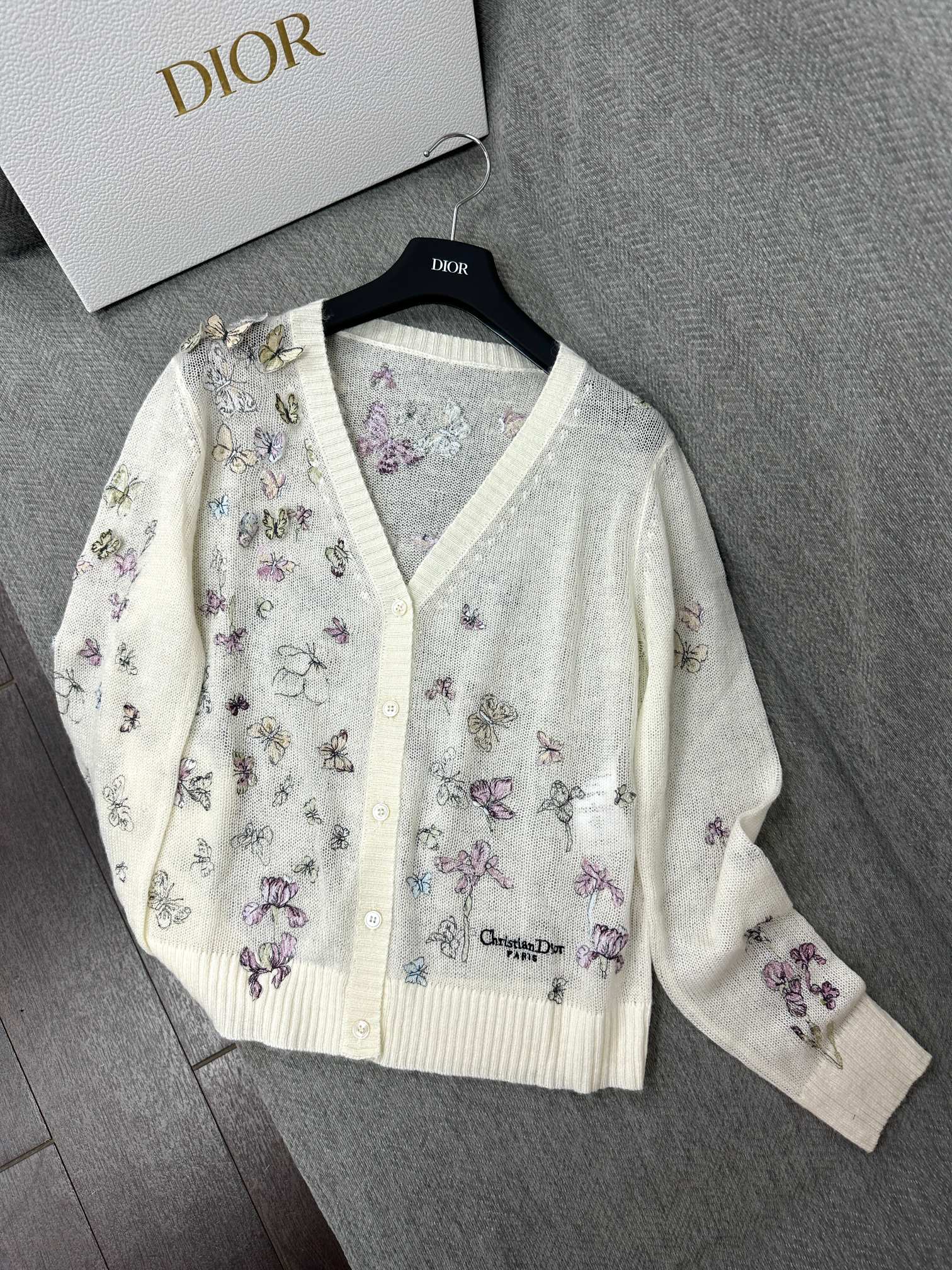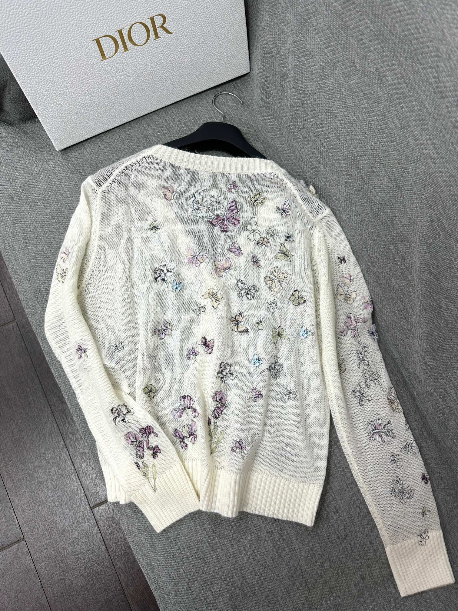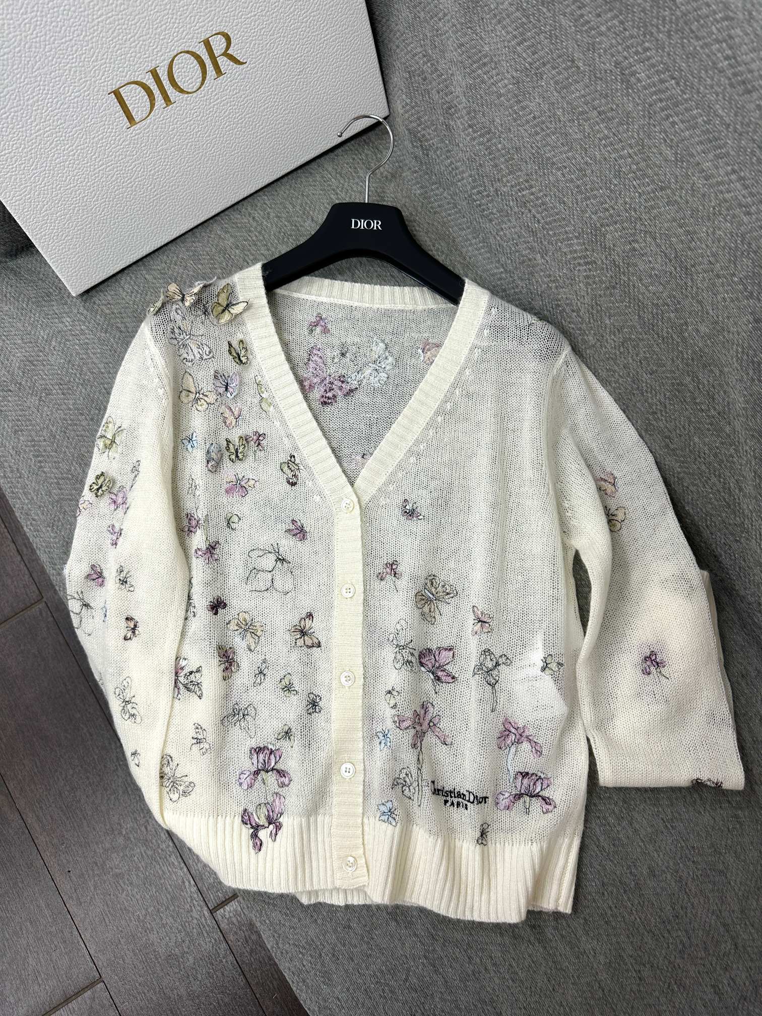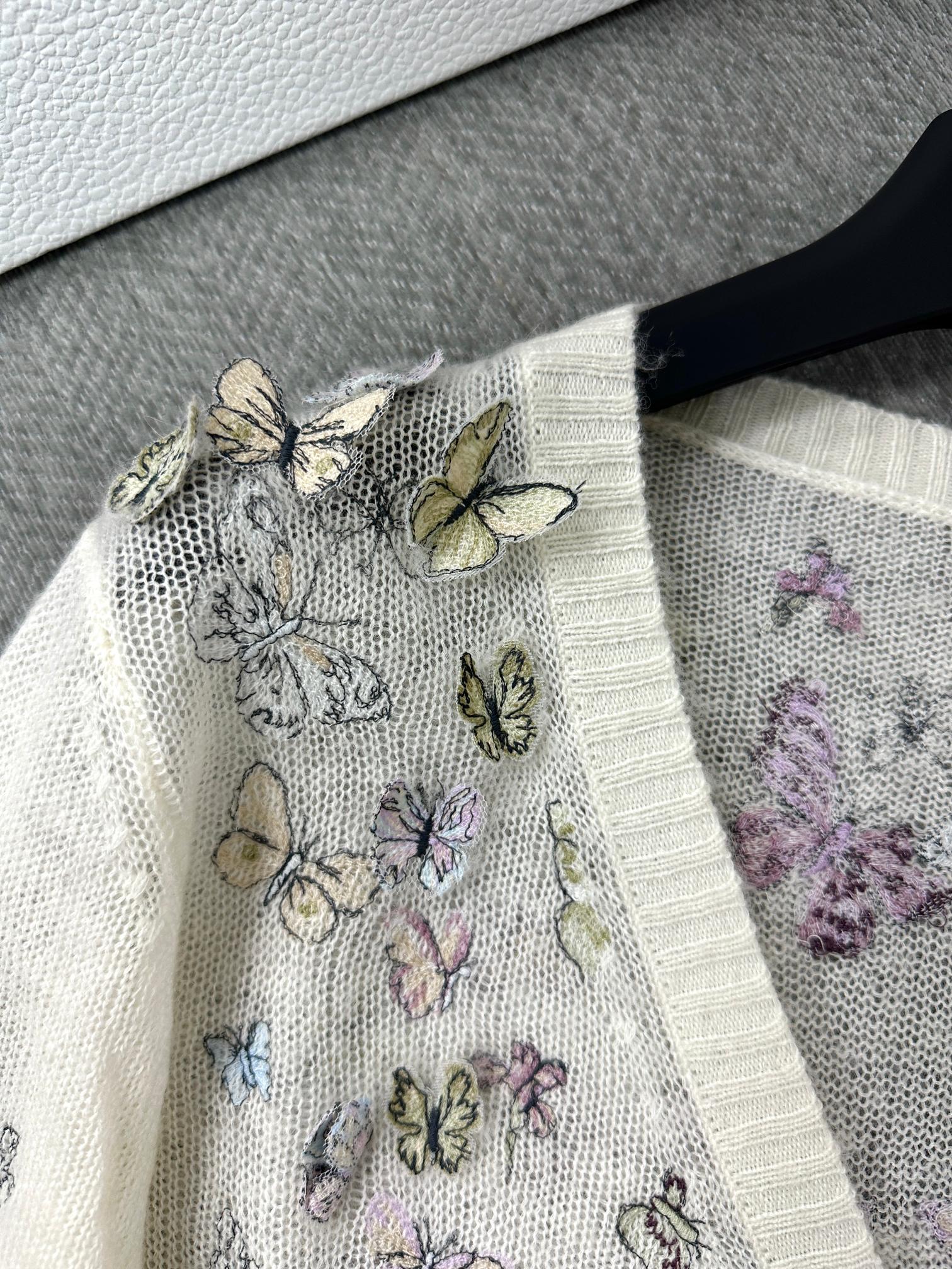 CD Butterfly Embroidered Cardigan White Alpaca Wool Cashmere 345330