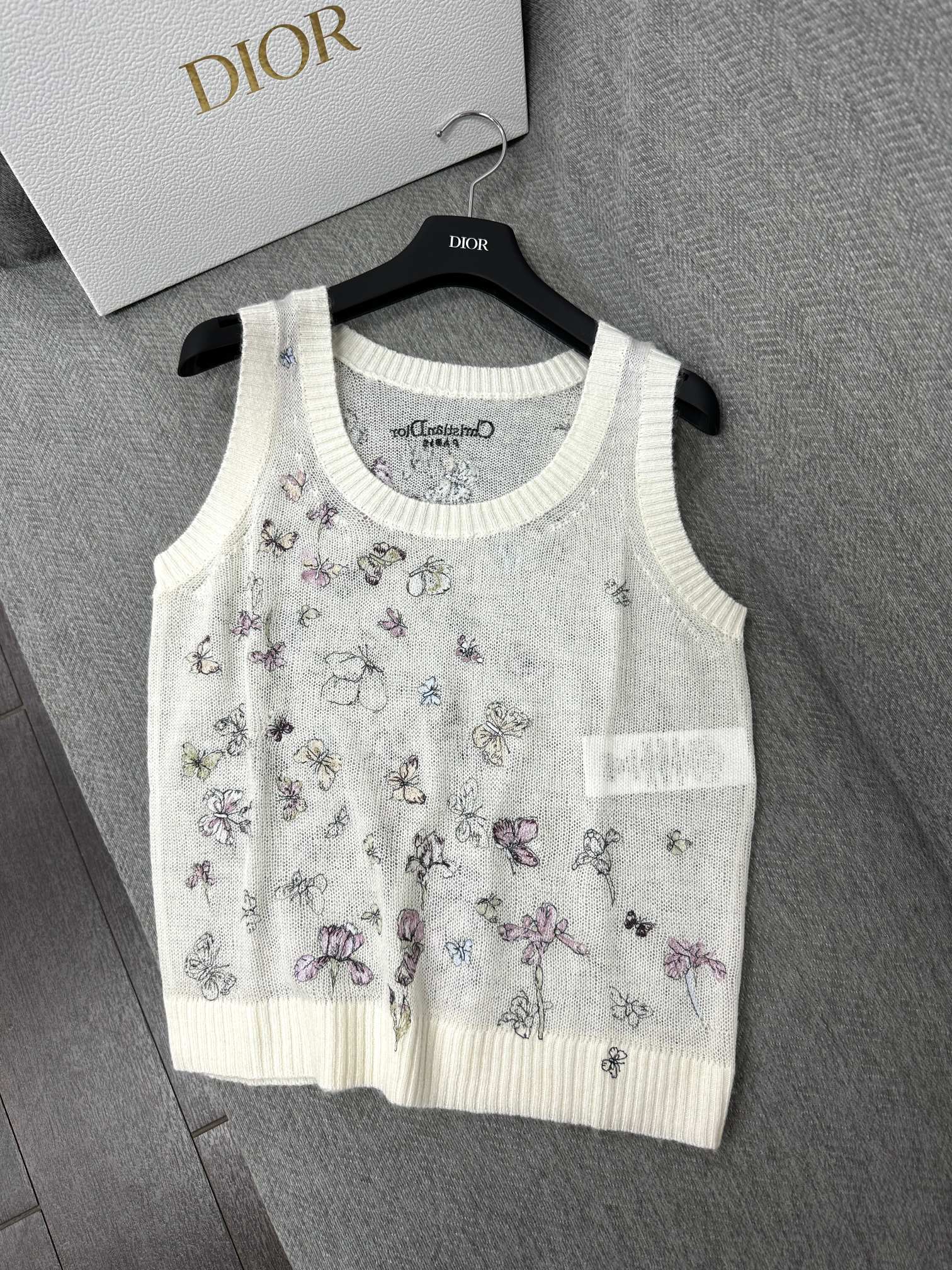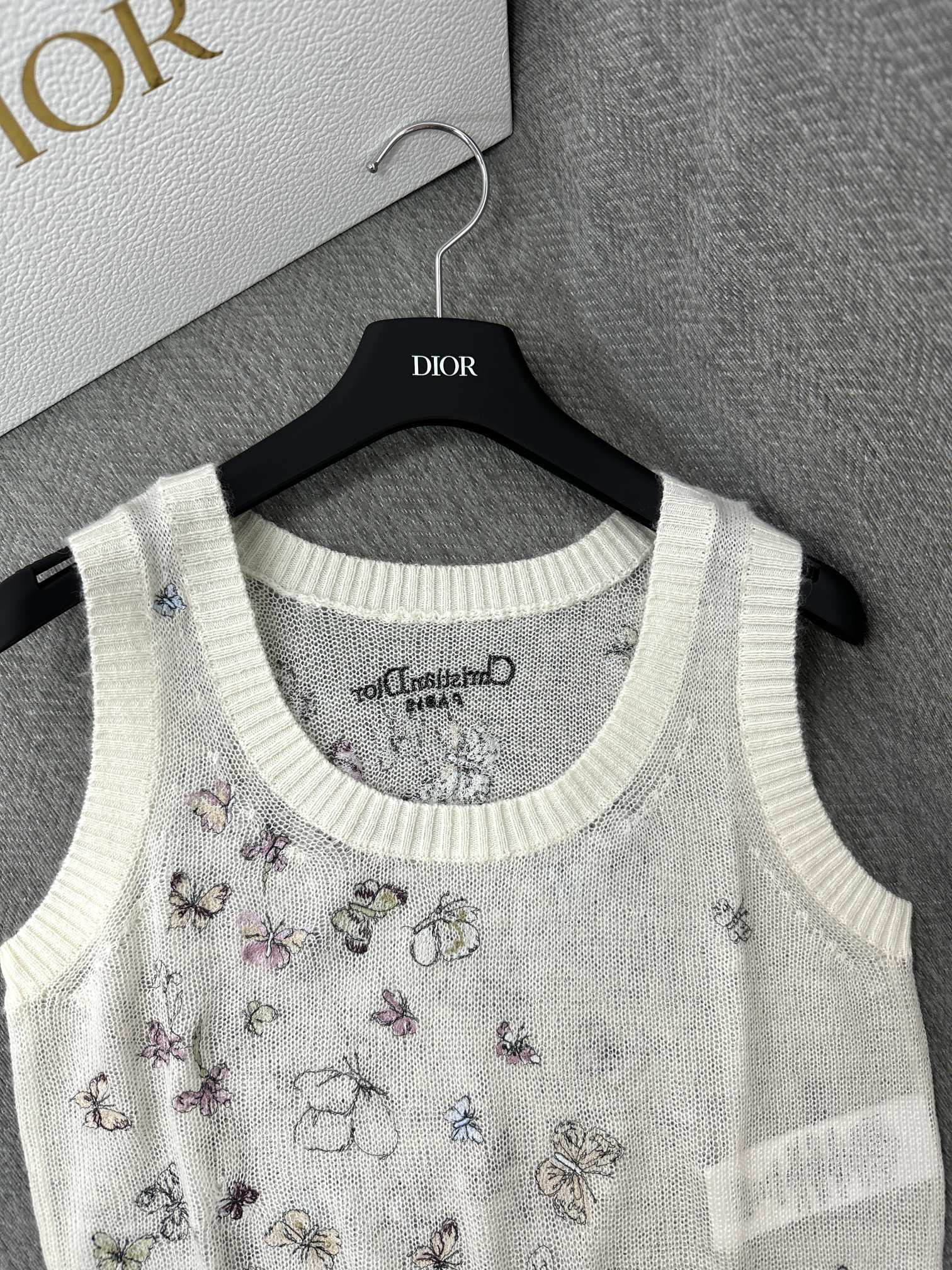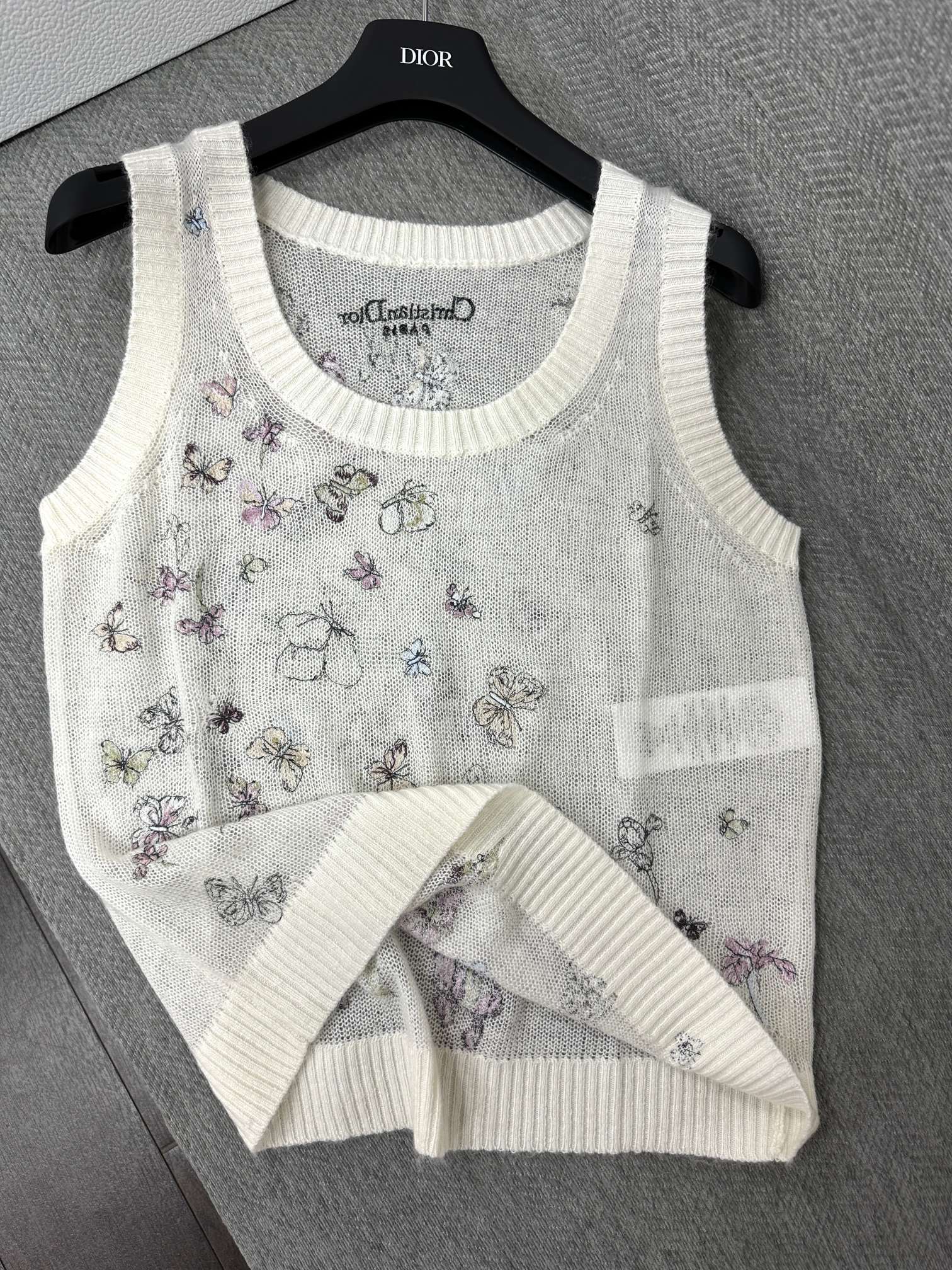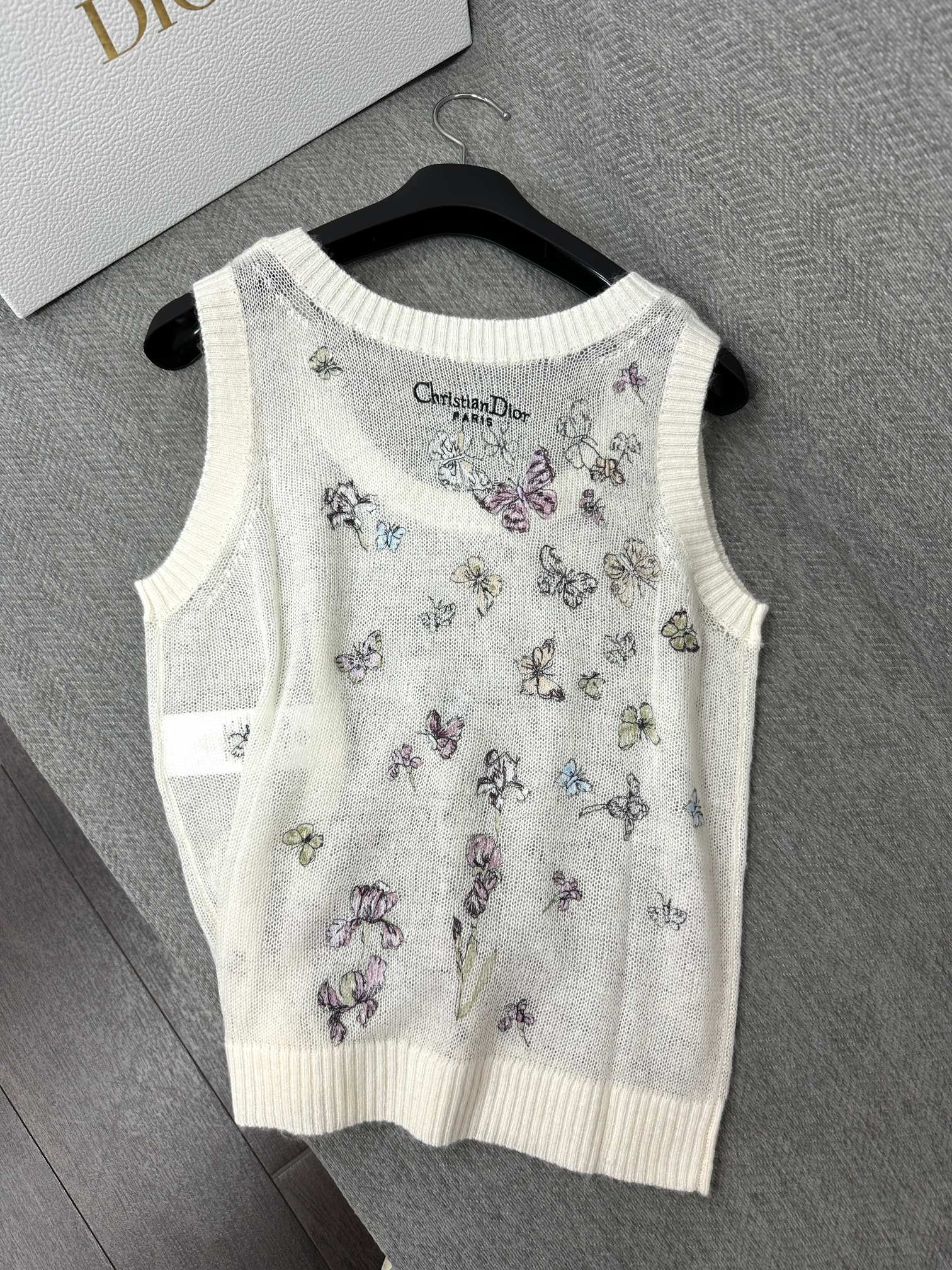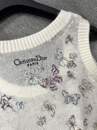 CD Butterfly Embroidered Vest White Alpaca Wool Cashmere 345333