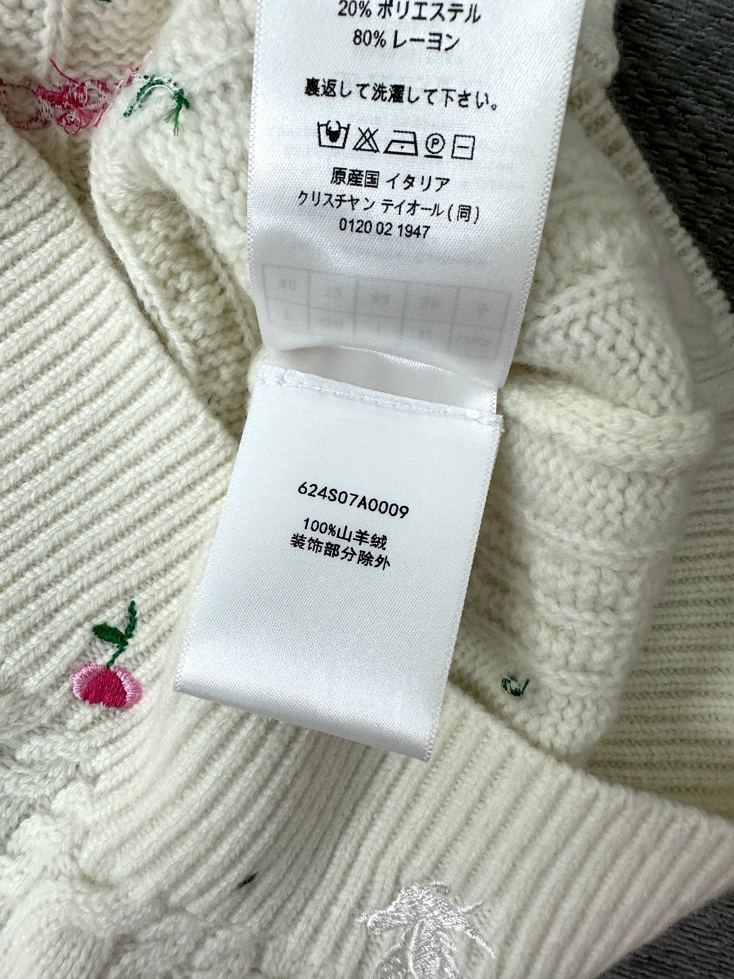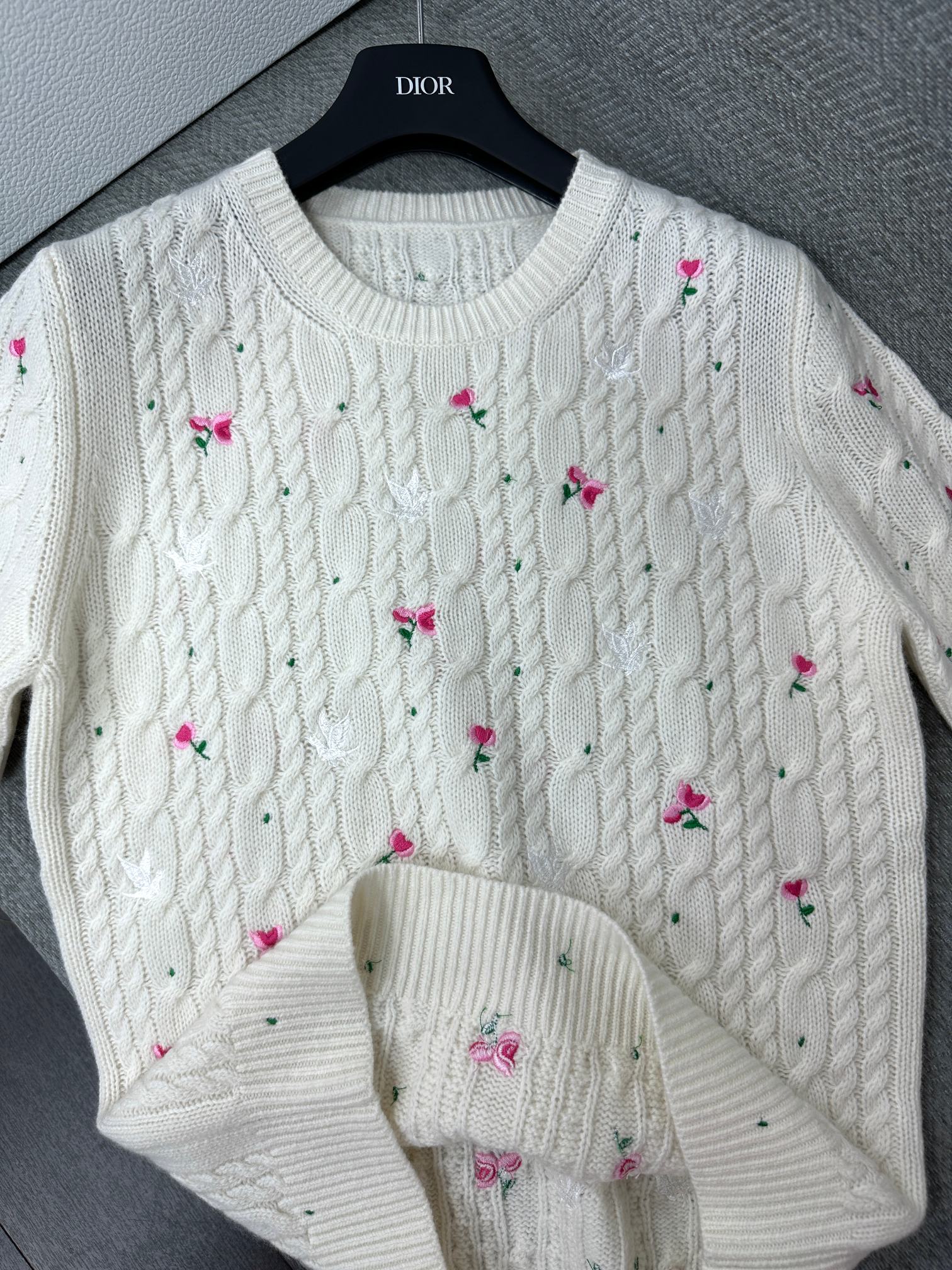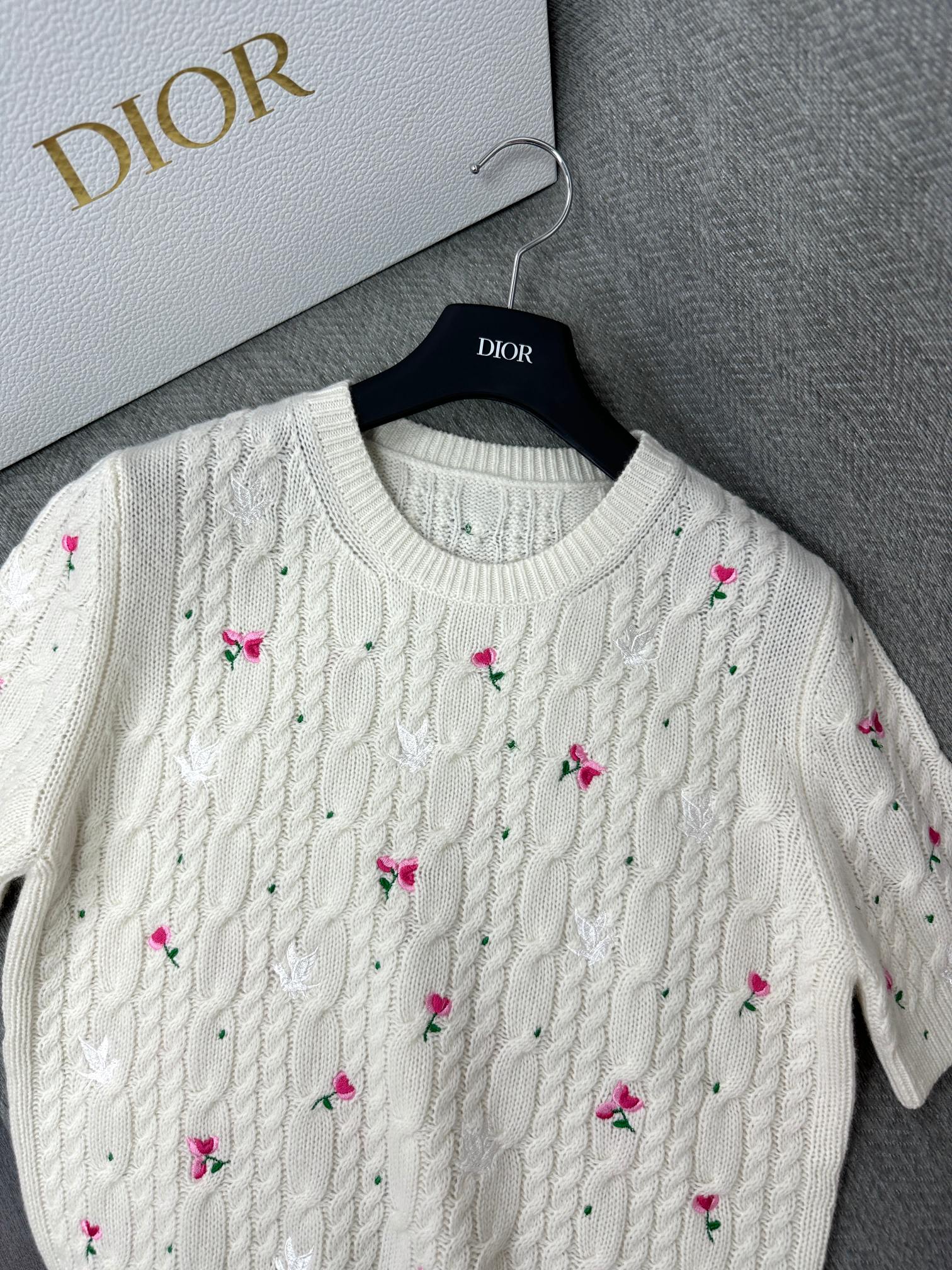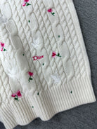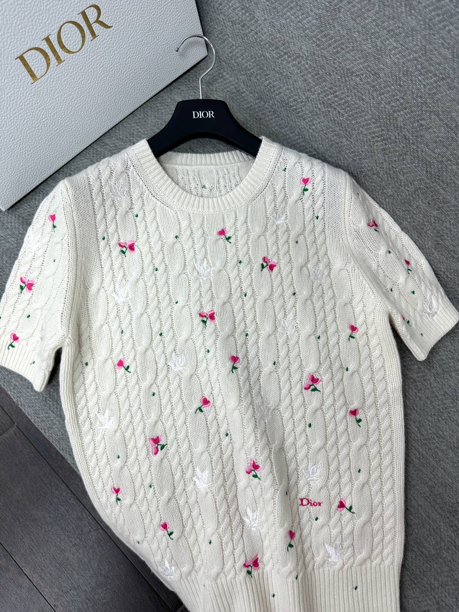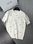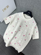 CD Short-Sleeved Sweater Small Floral Embroidery Ivory Wool 349483