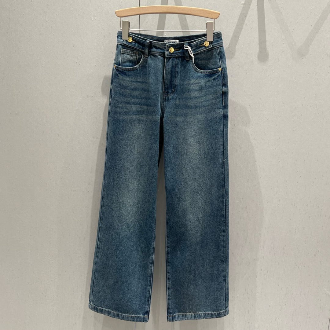 Celine 25 Pattern Embroidered Straight Jeans Blue Cotton