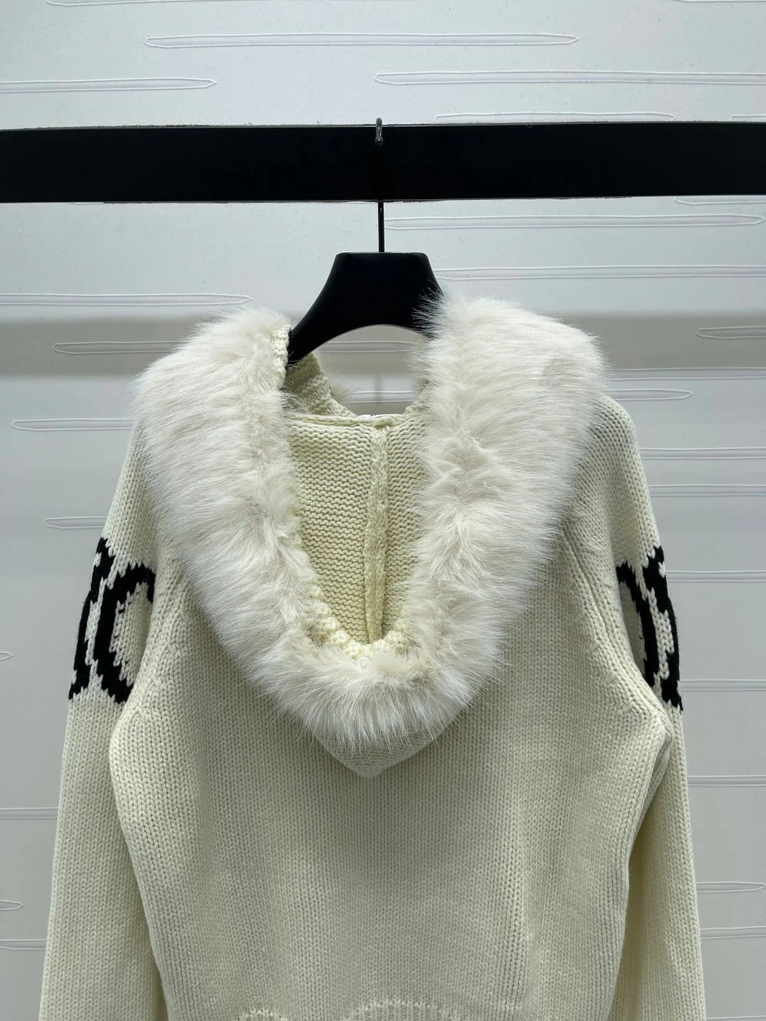 CELINE 25S HOODED CARDIGAN WITH FUR TRIM 0089
