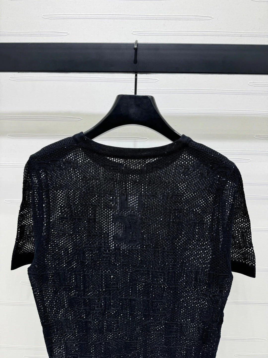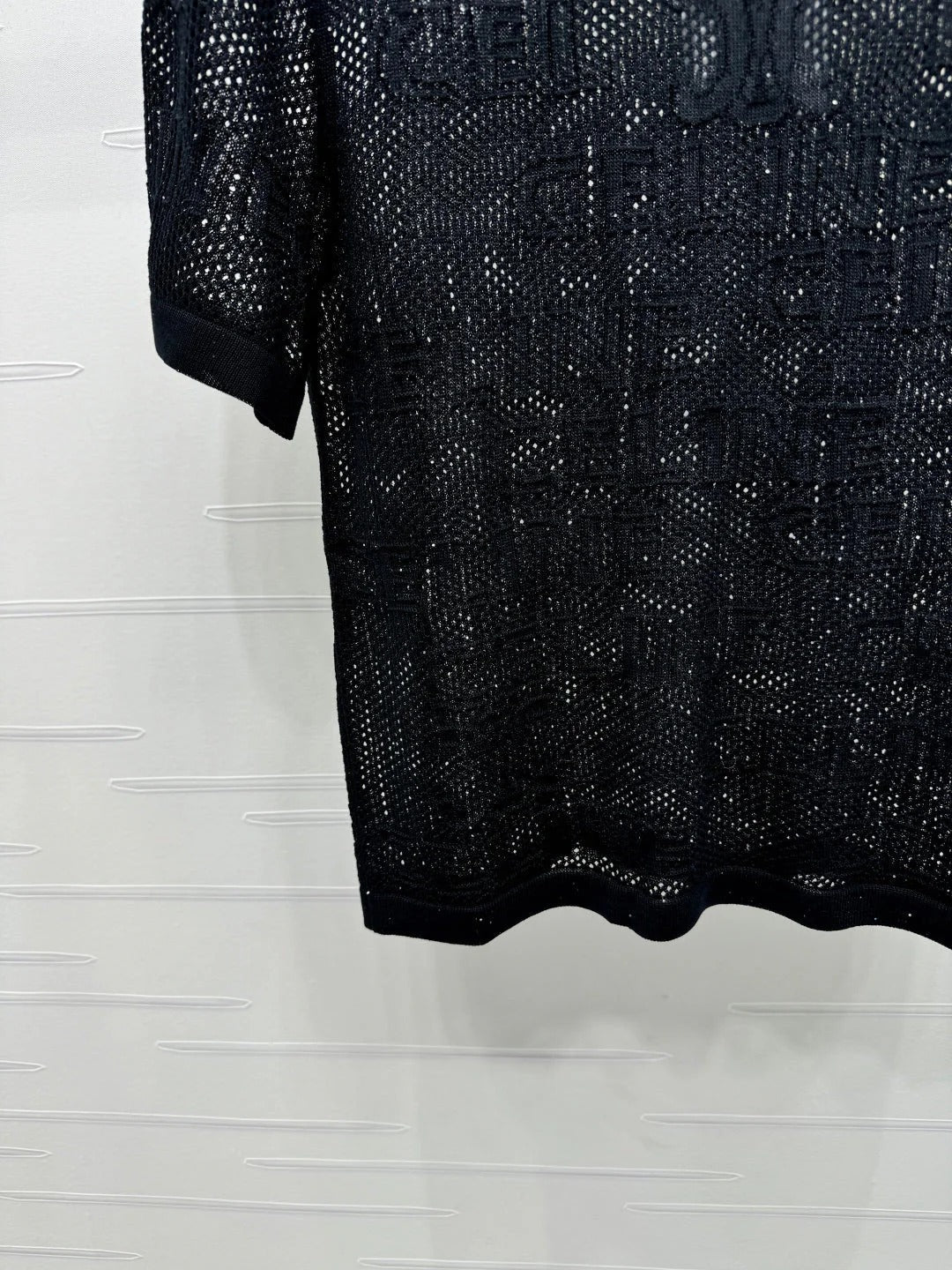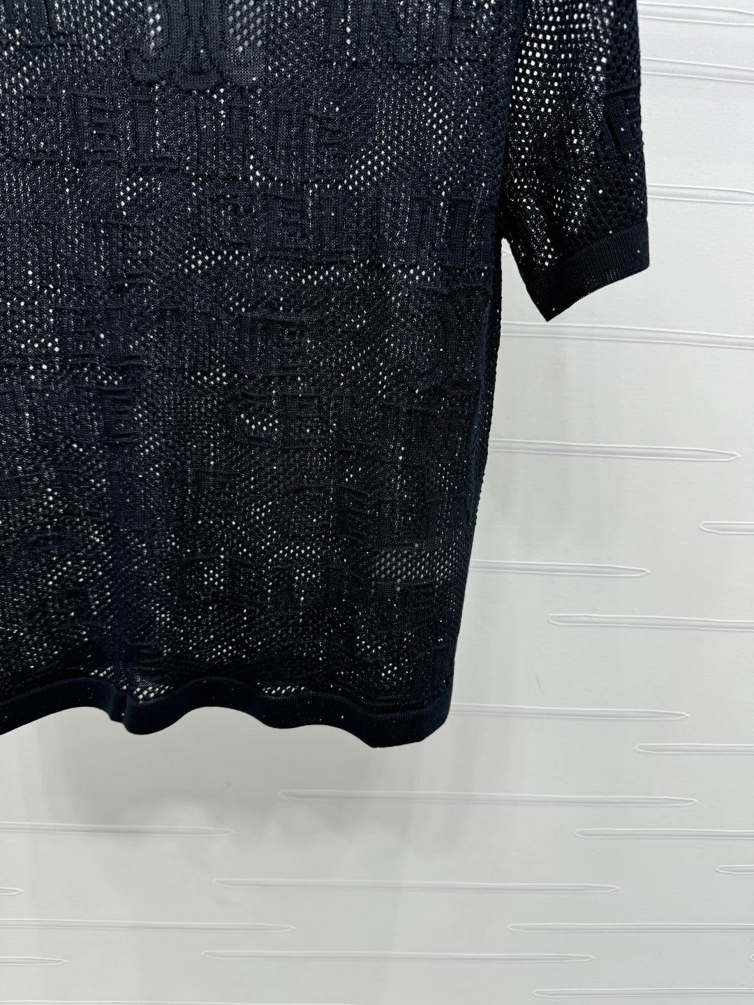 CELINE SHORT-SLEEVE CROCHET TOP BLACK 274808