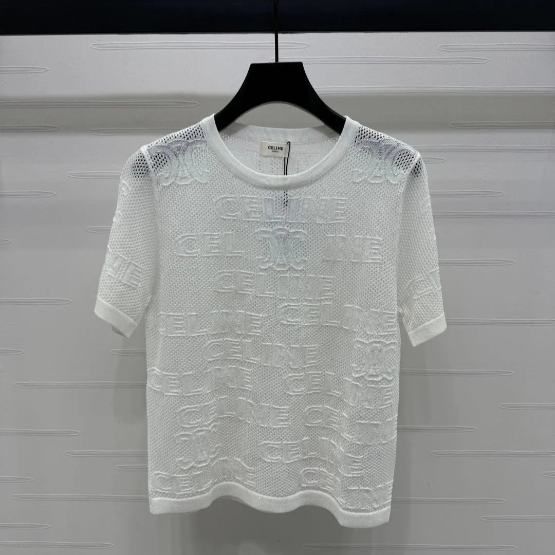 CELINE SHORT-SLEEVE CROCHET TOP WHITE 274807
