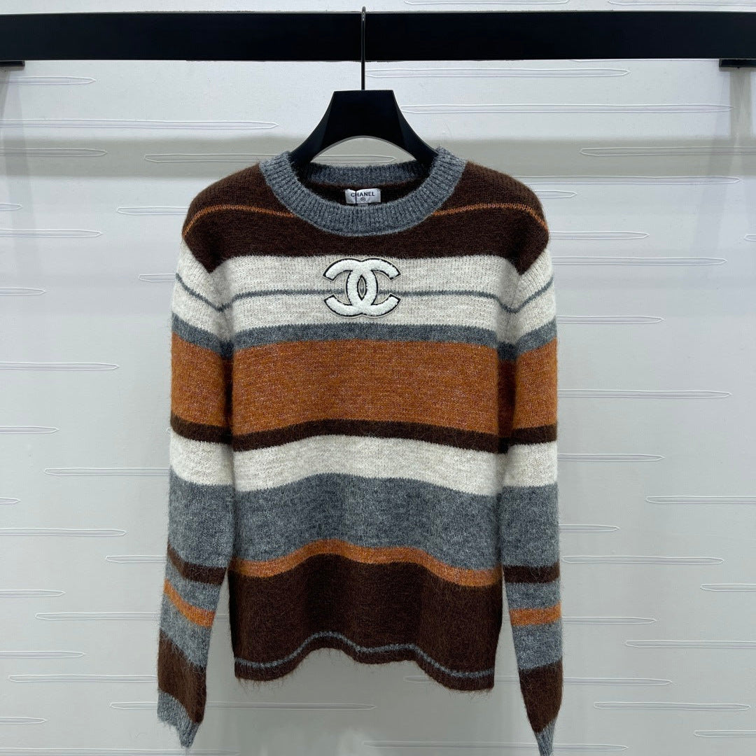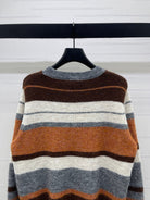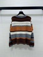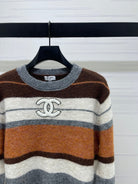 Chanel 2025 Striped Pullover Long-sleeved Sweater Brown Wool Cashmere 319607