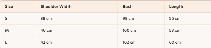 • Size: S, M, L