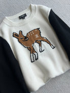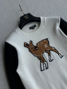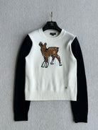 Chanel 25 Deer Print Sweater White mix Black Wool 318394