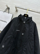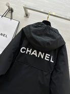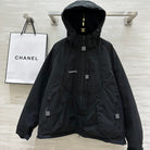 Chanel 25 Hooded Windbreaker Jacket Black Down Cotton 312195