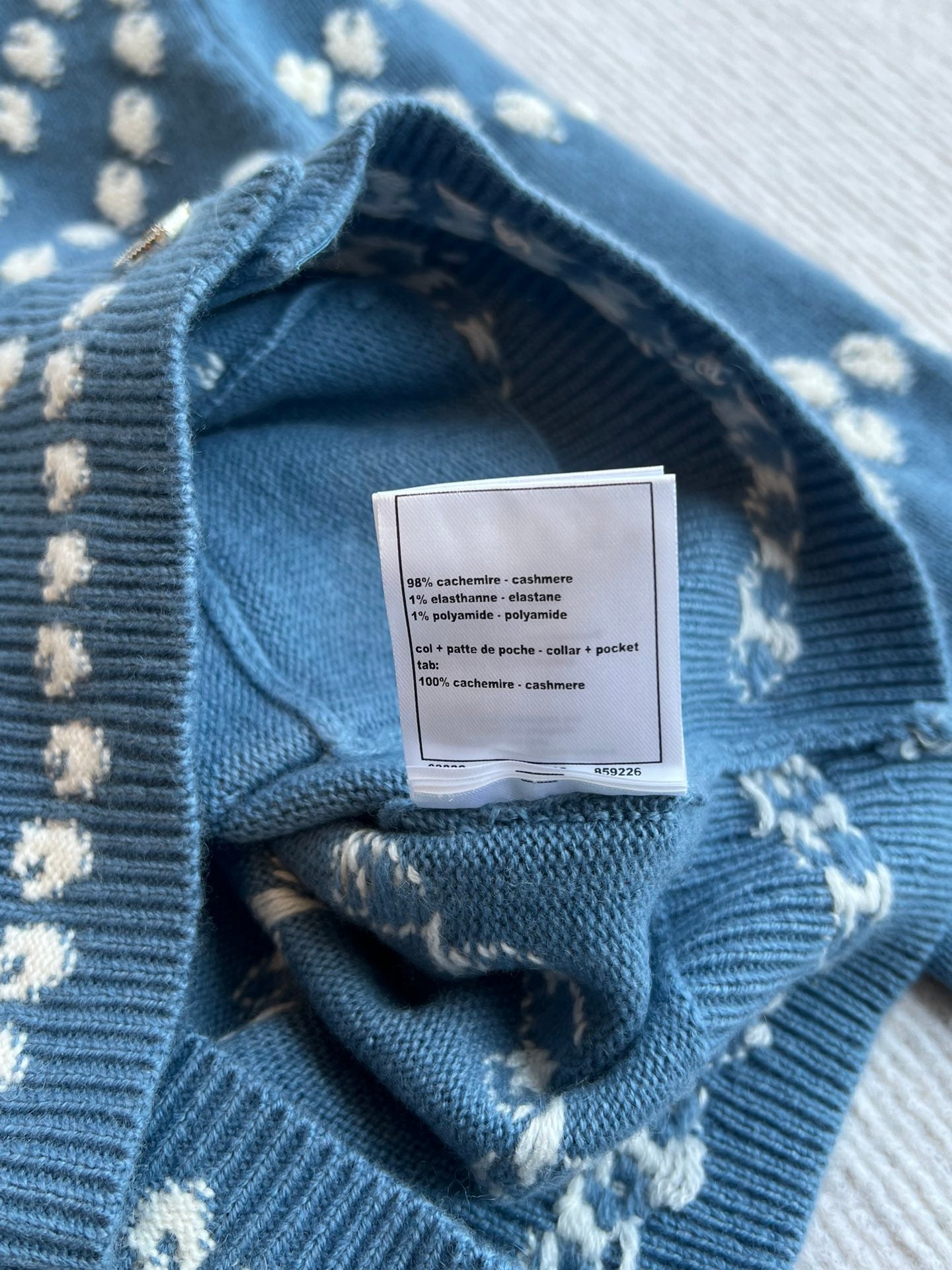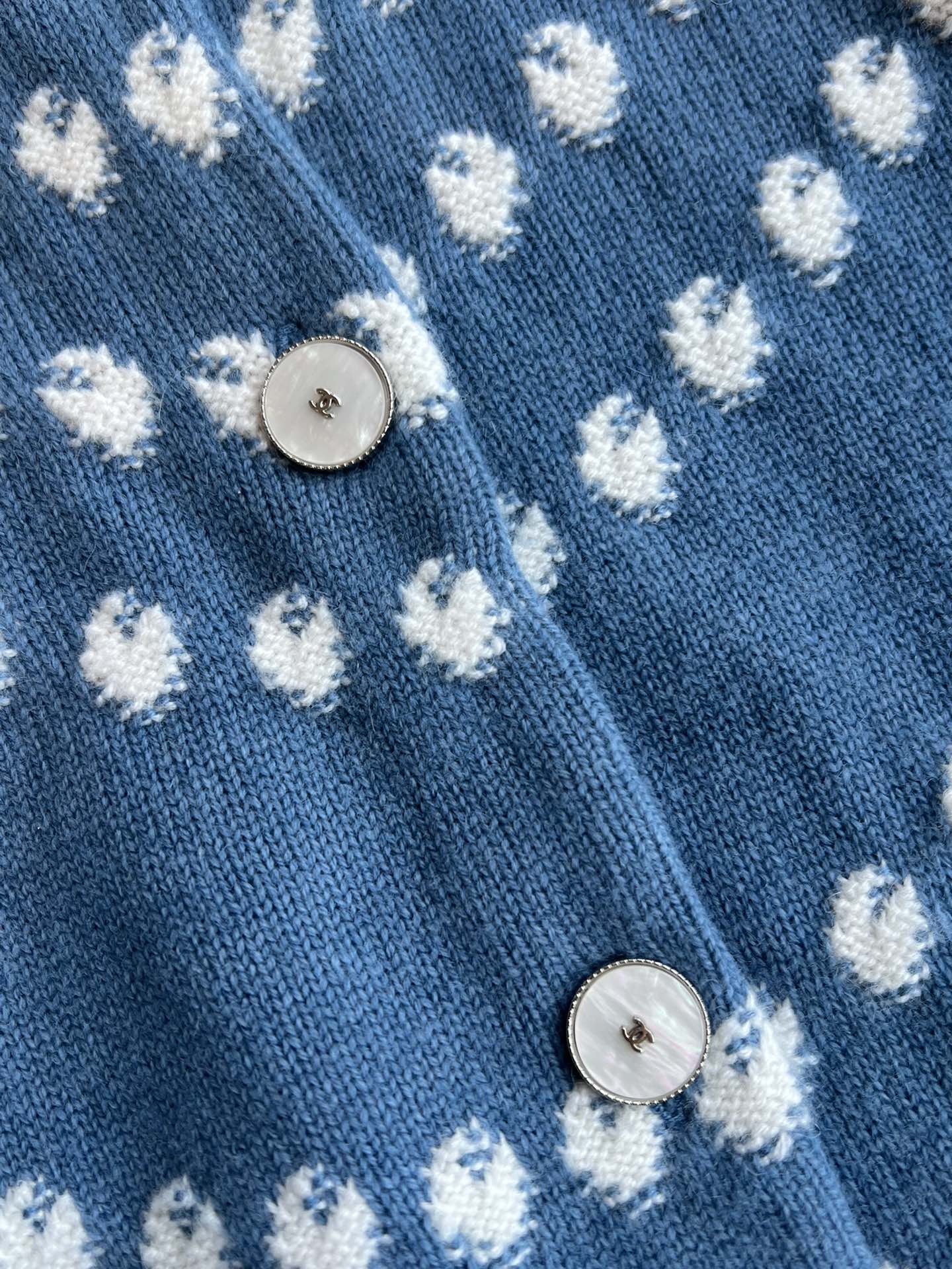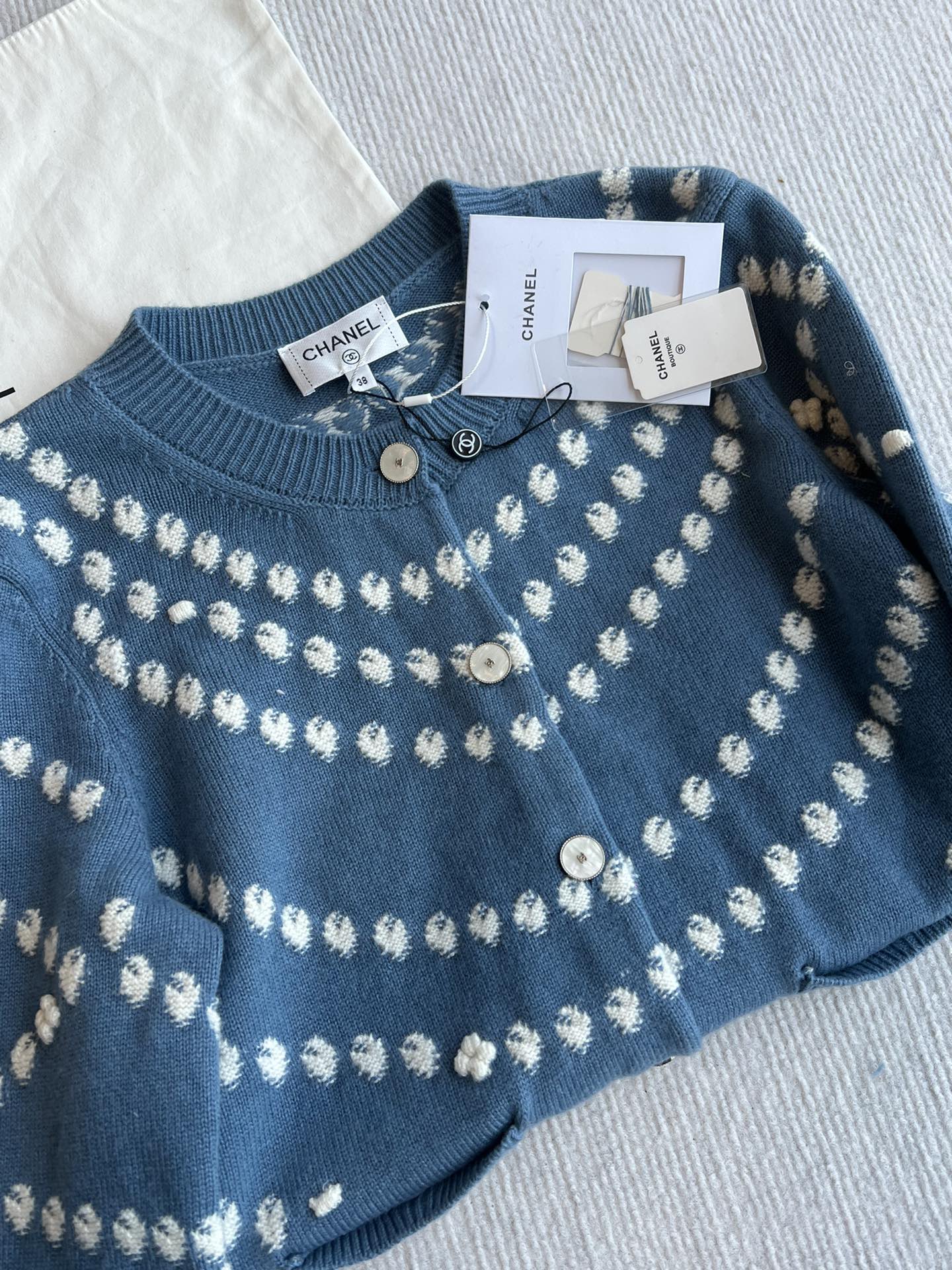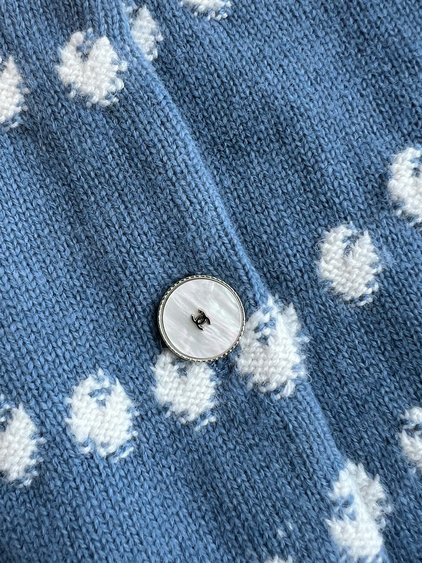 Chanel 25P Cardigan Dark Blue Mix White Cashmere 229517