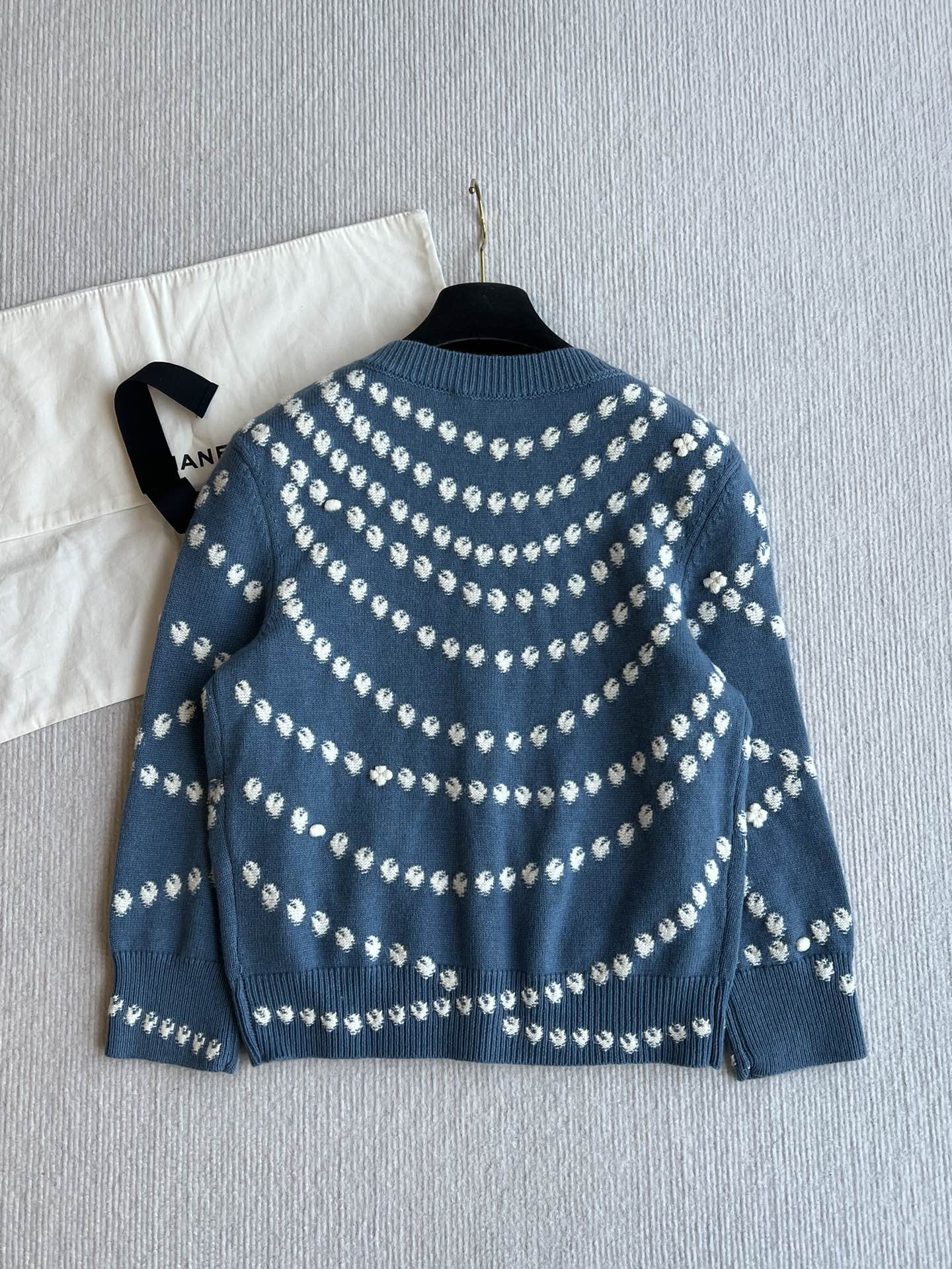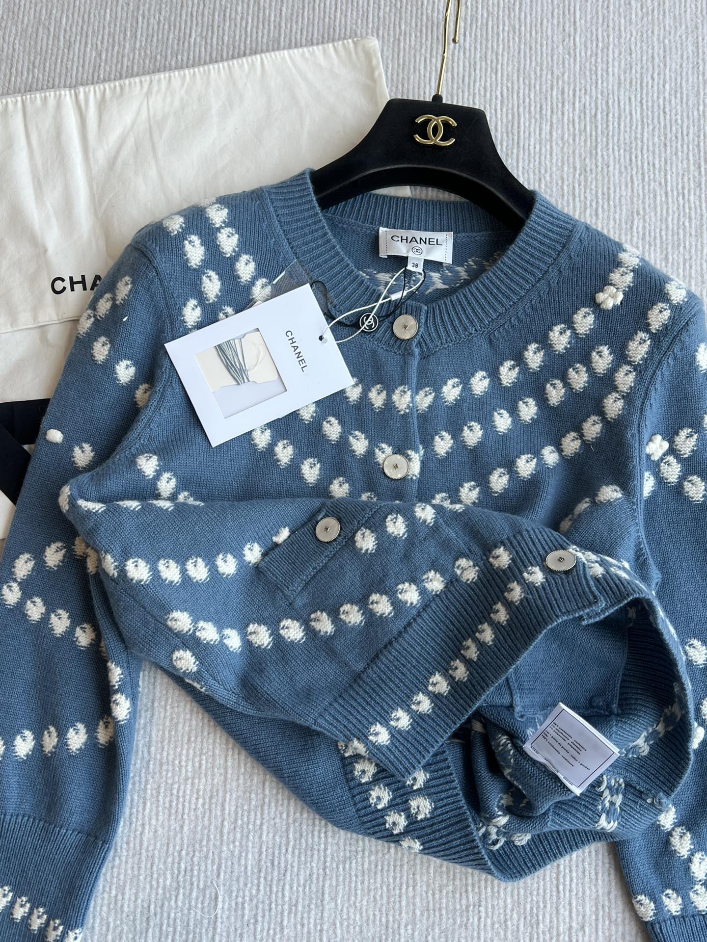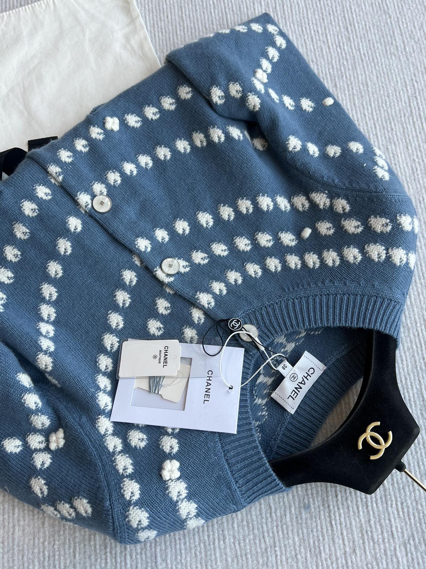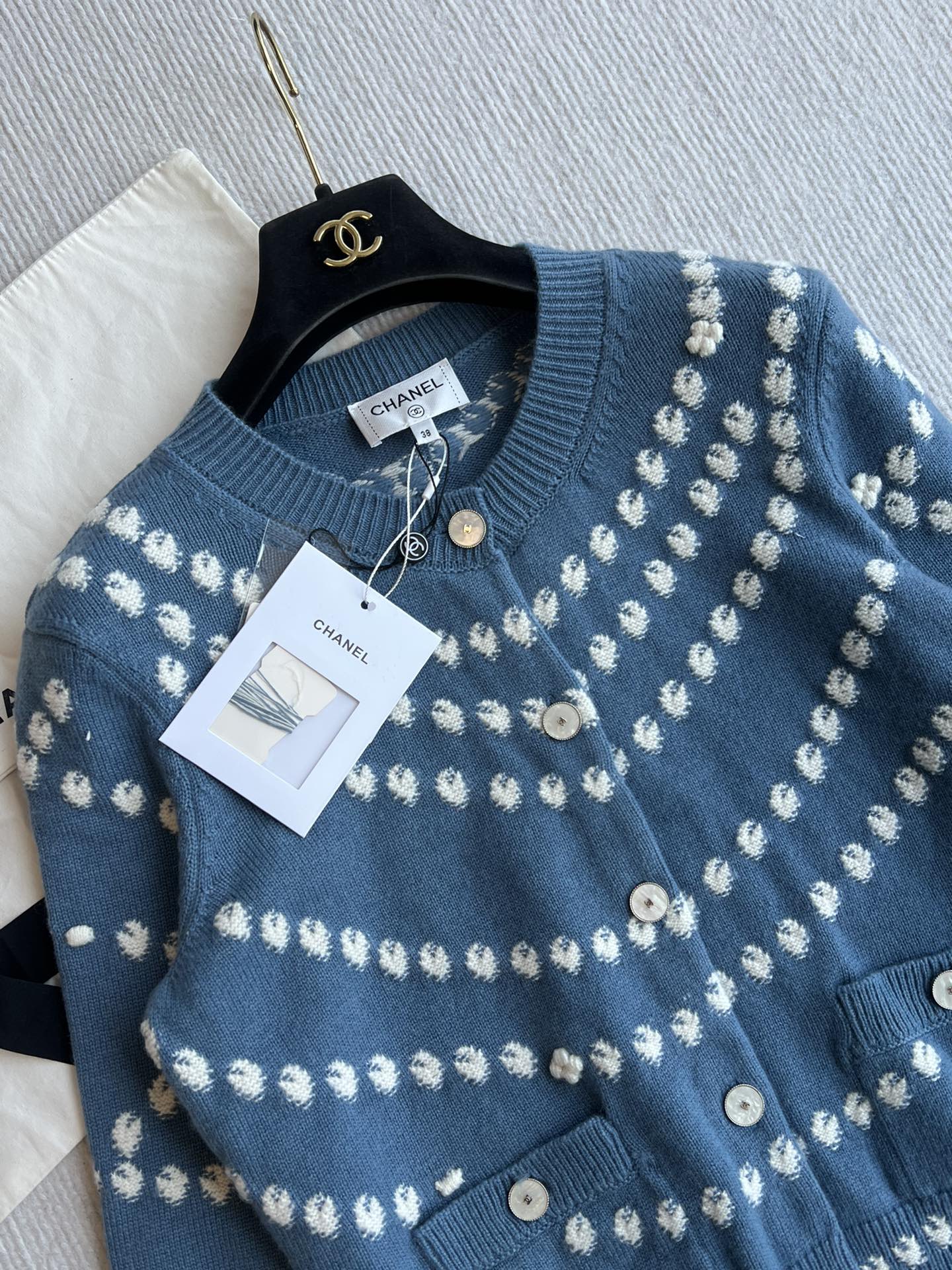Chanel 25P Cardigan Dark Blue Mix White Cashmere 229517
