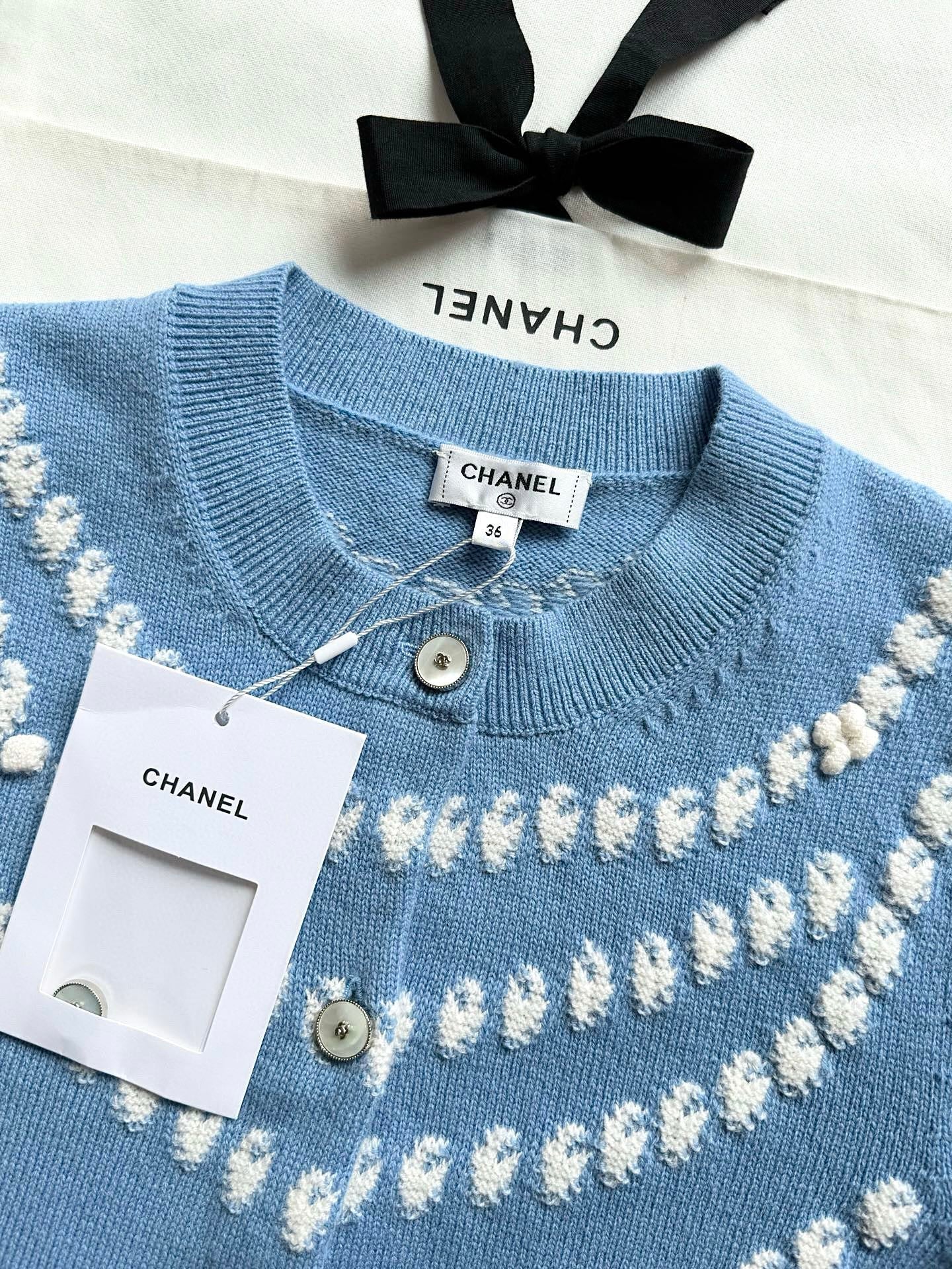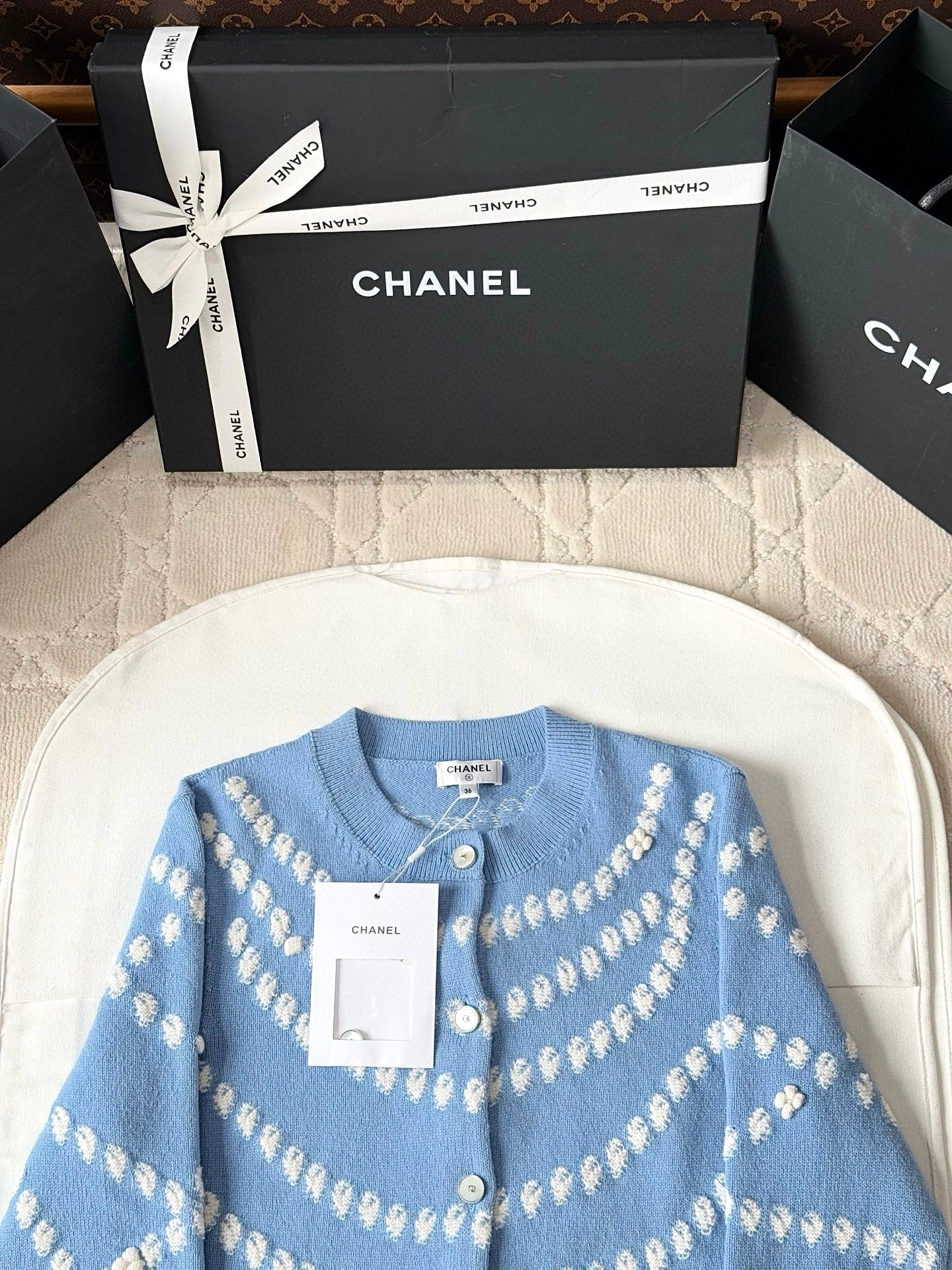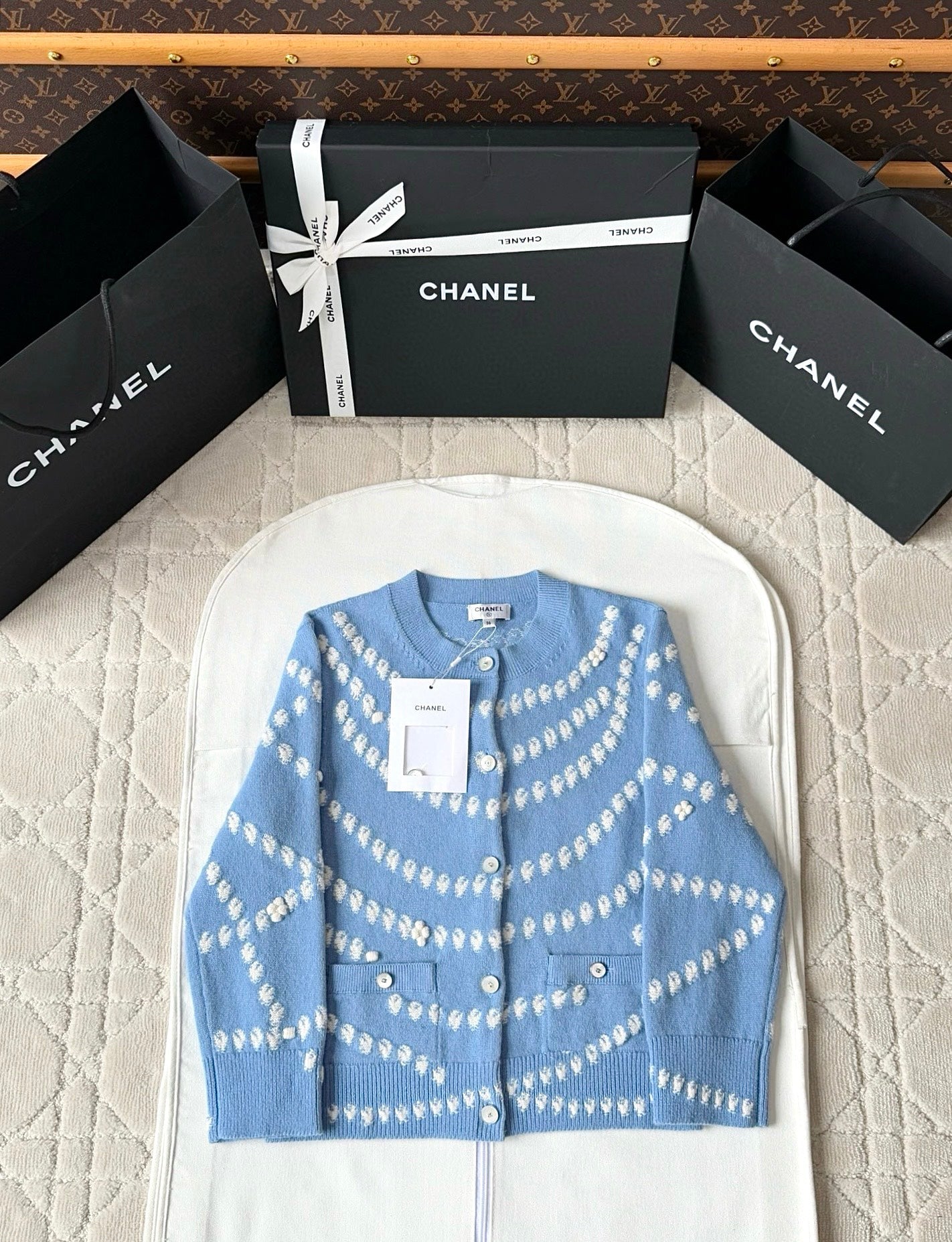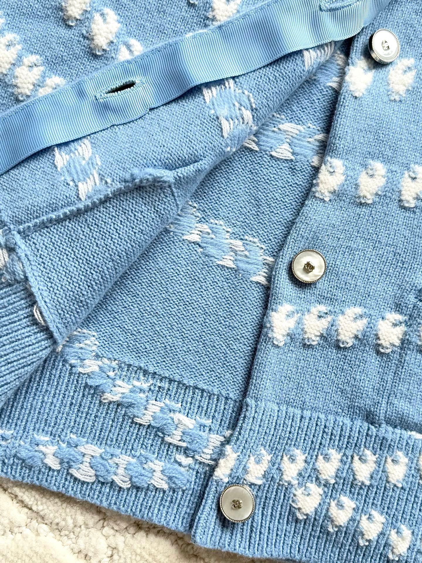 Chanel 25P Cardigan Light Blue Mix White Cashmere 237300