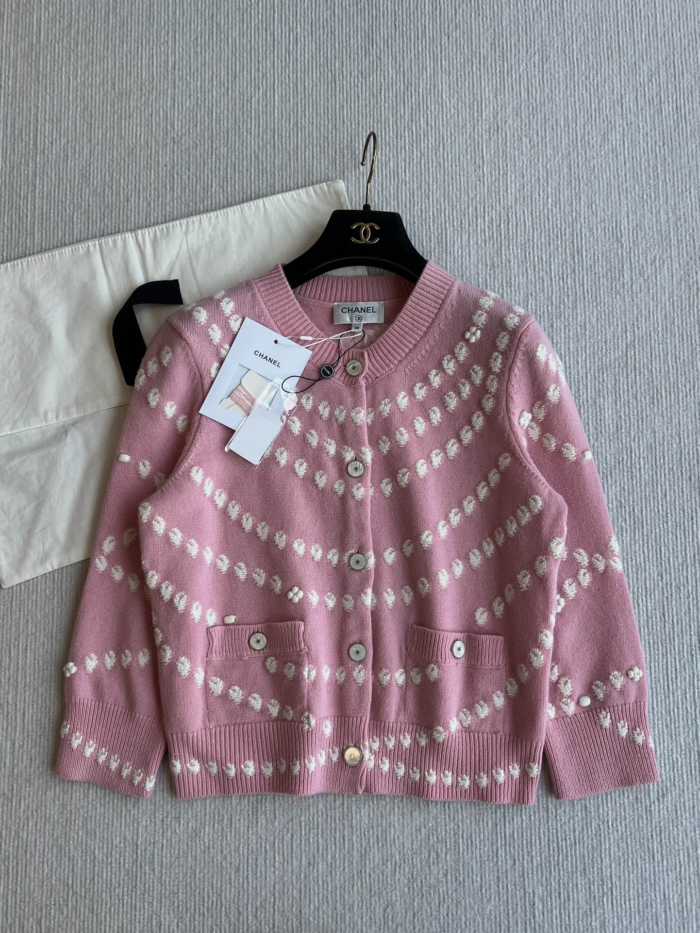 Chanel 25P Cardigan Pink Mix White Cashmere 229516