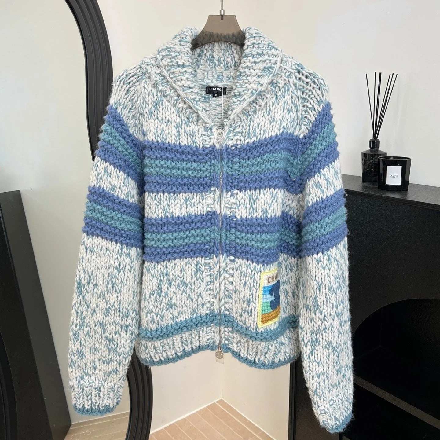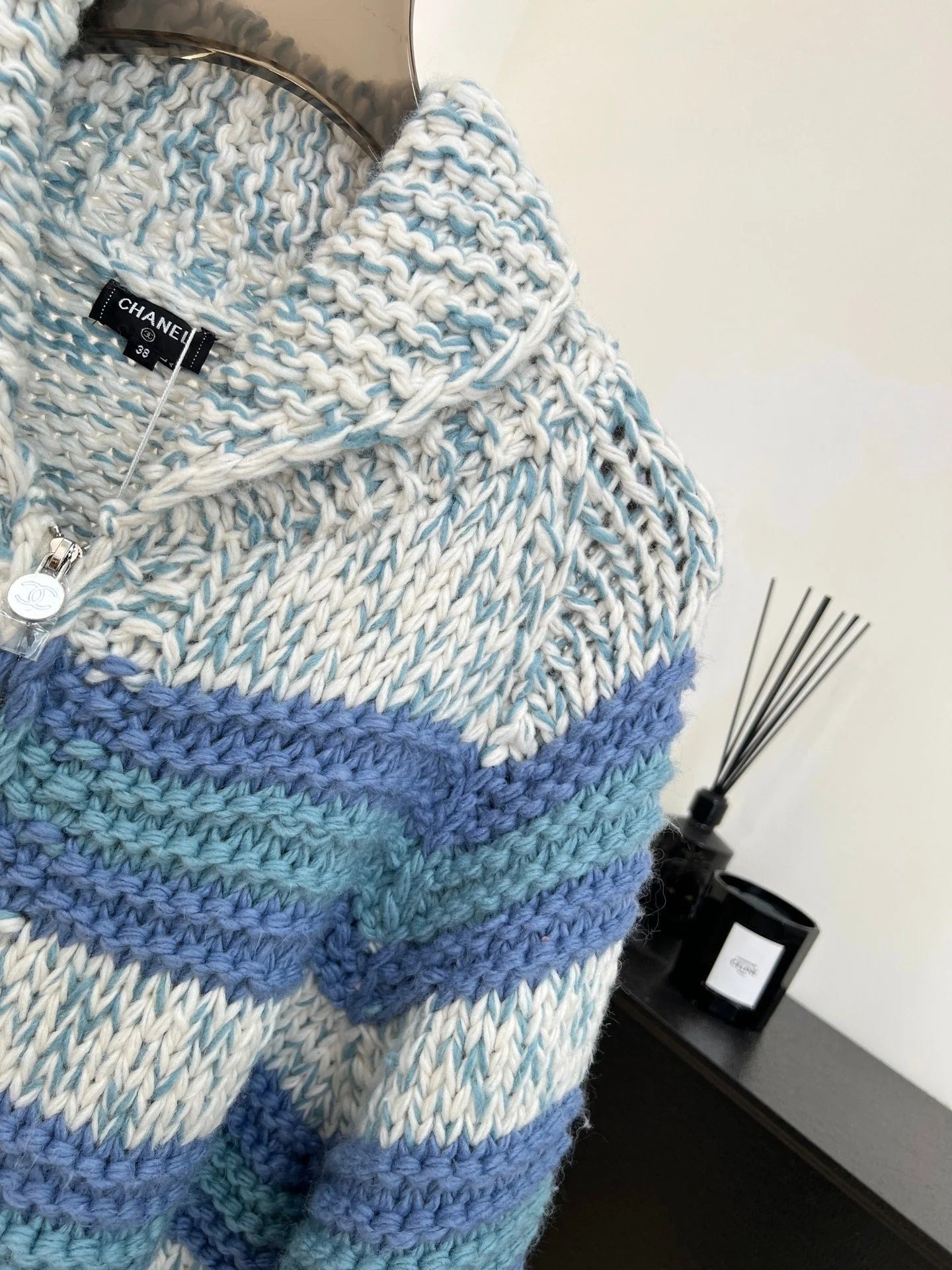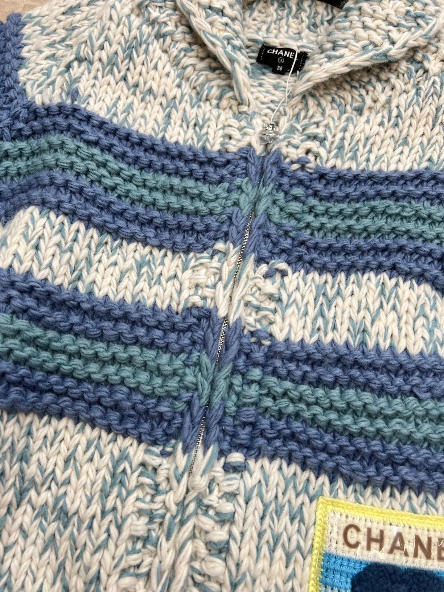 CHANEL 25S BLUE STRIPED CARDIGAN 620415