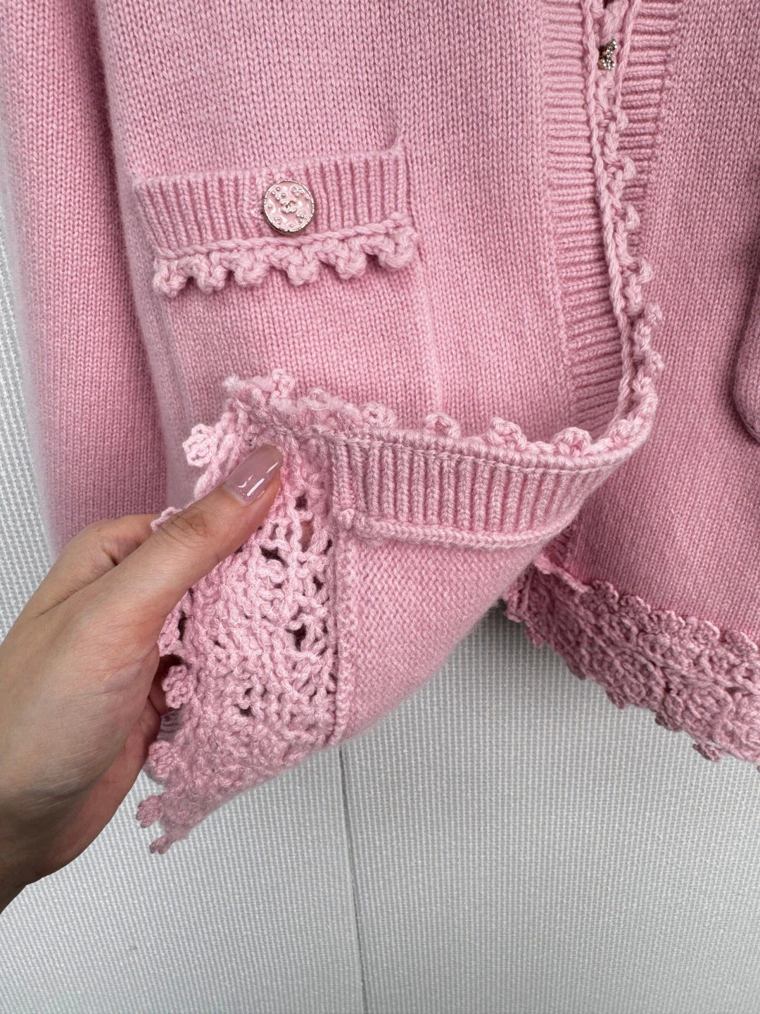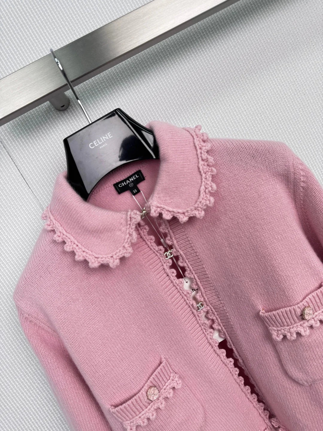 CHANEL 25S KNIT CARDIGAN WITH LACE COLLAR 415