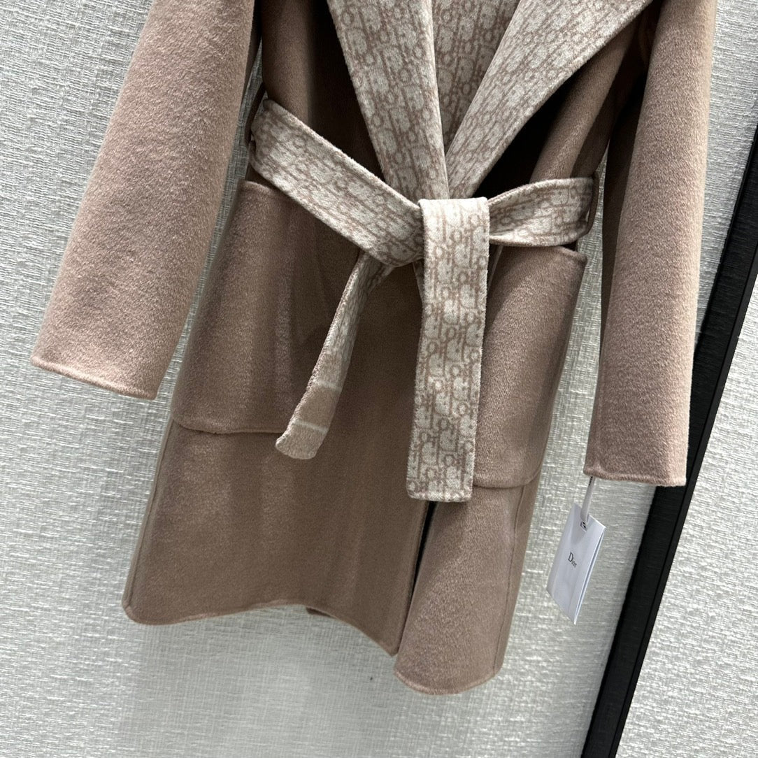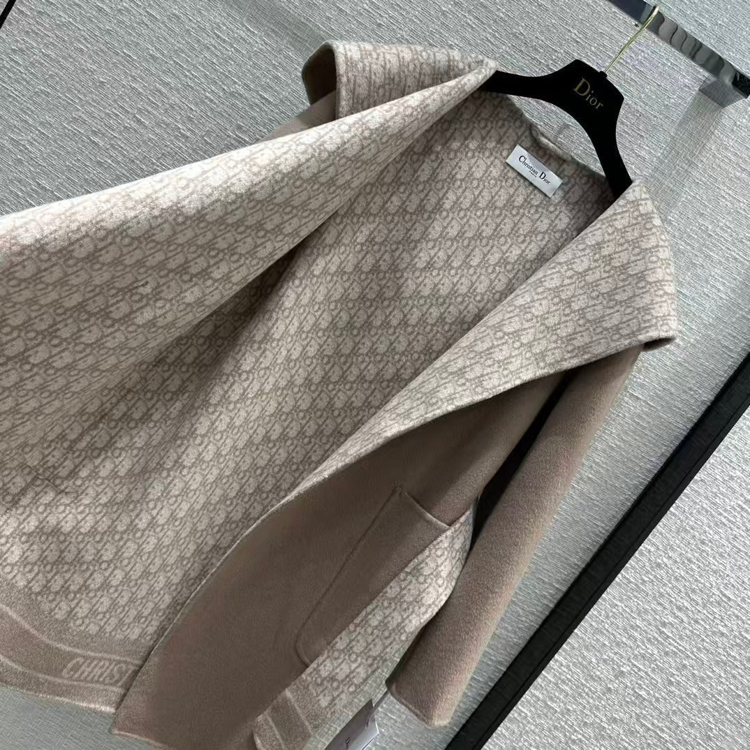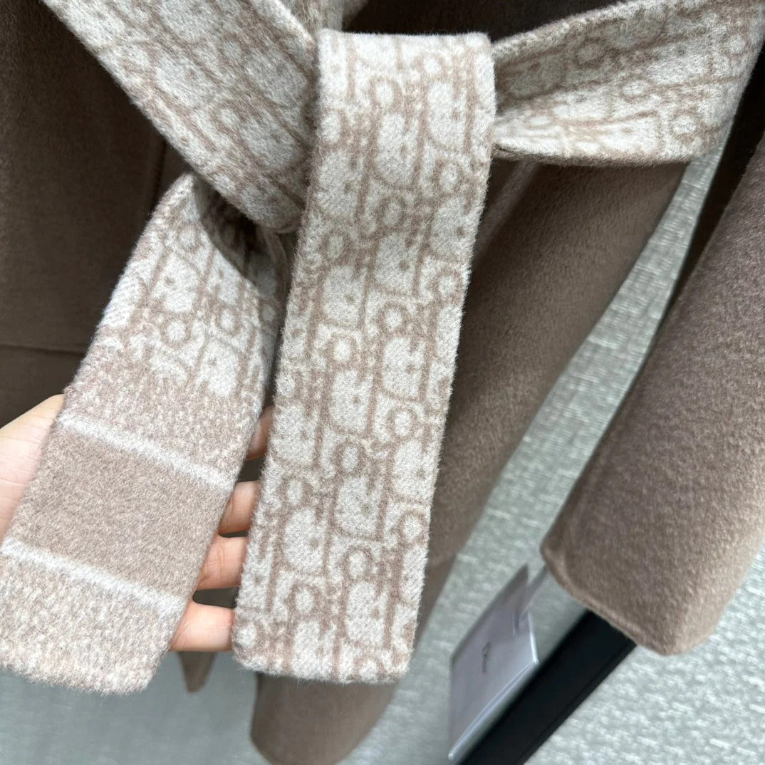 DIOR HOODED COAT IN DARK BEIGE WOOL
