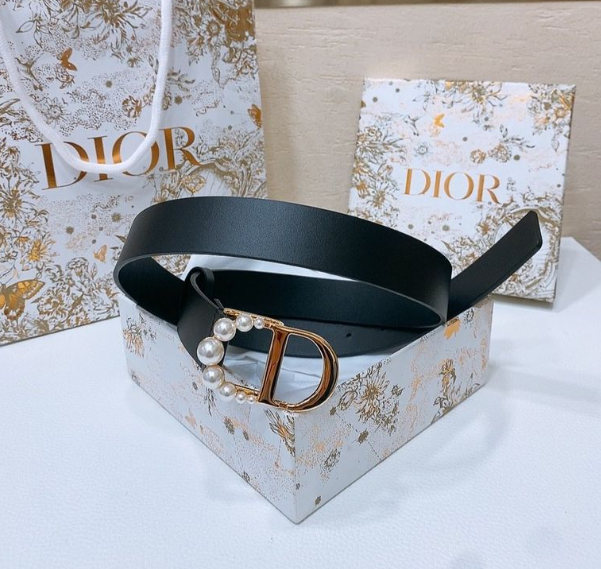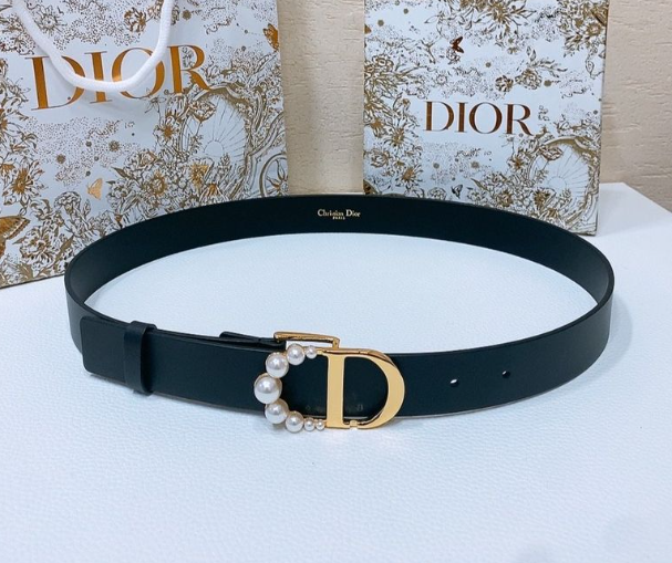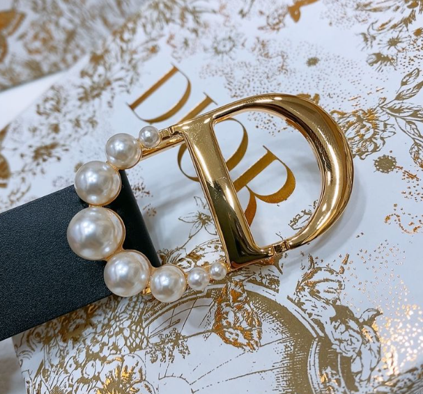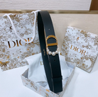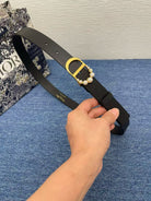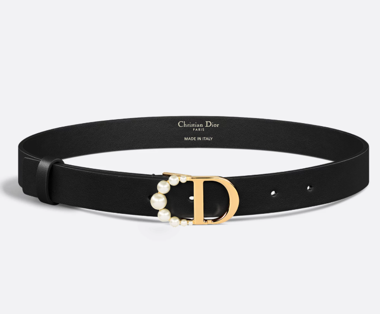 Dior Montaigne Belt Black Smooth Calfskin and White Resin Pearls