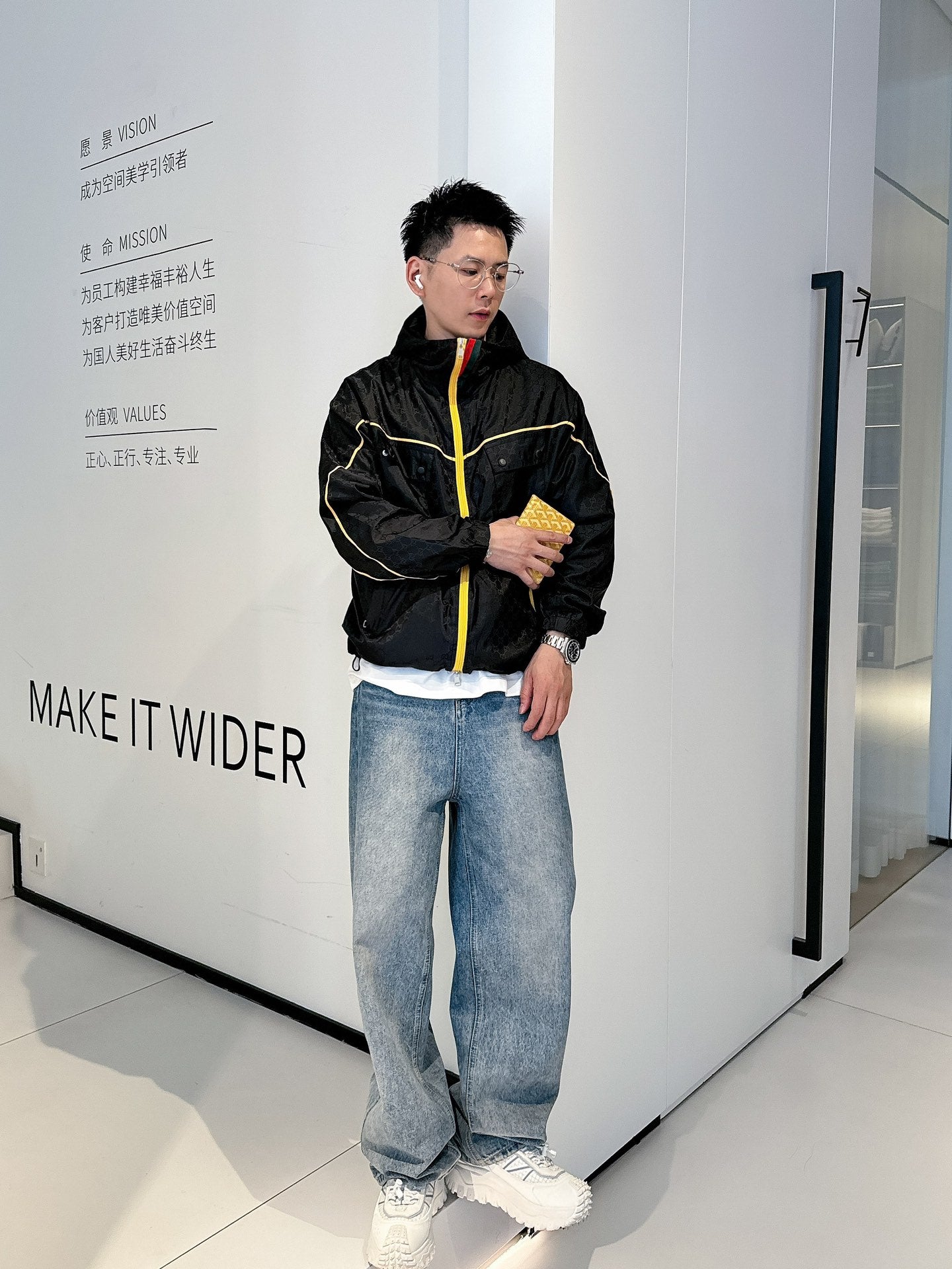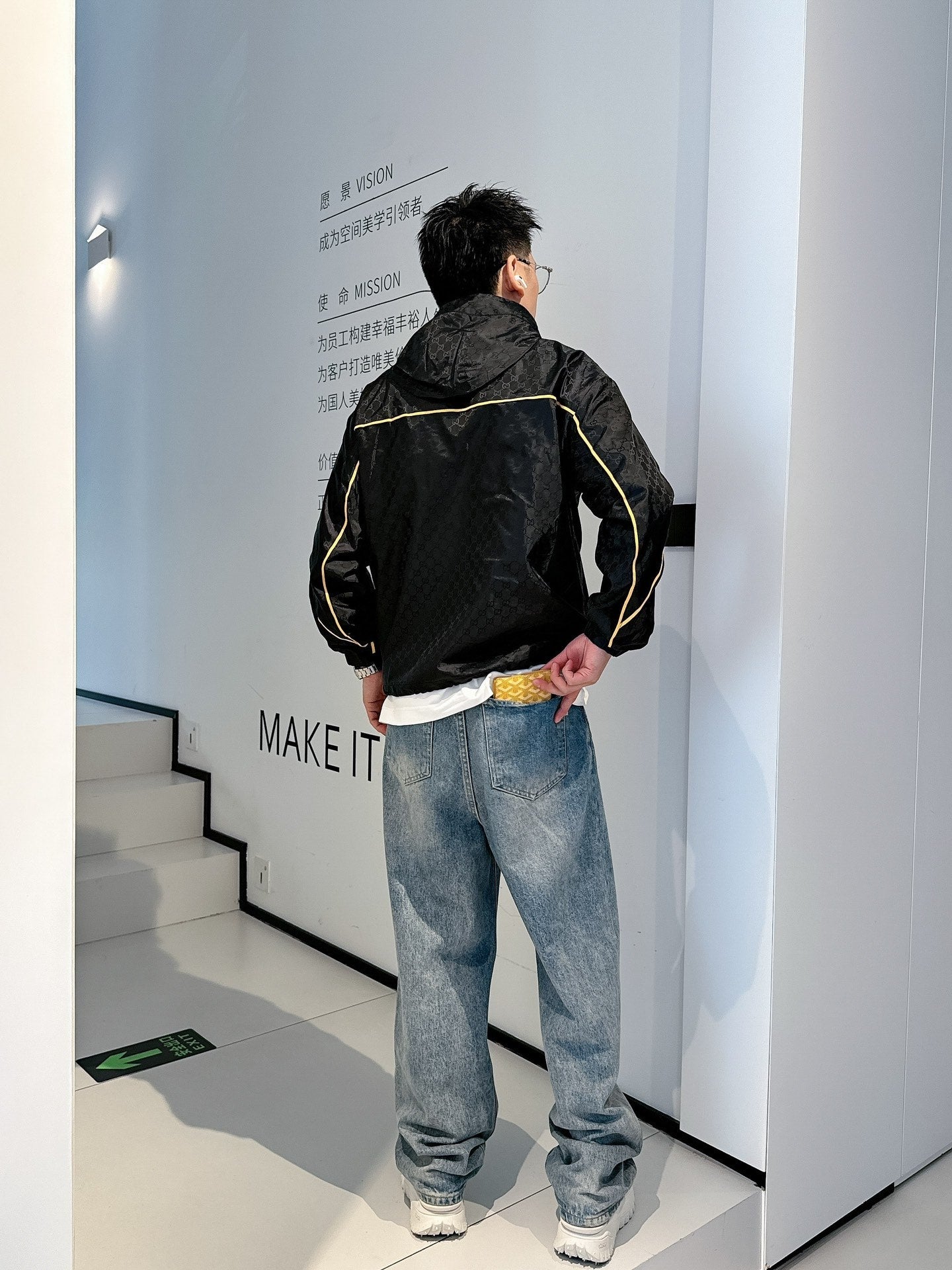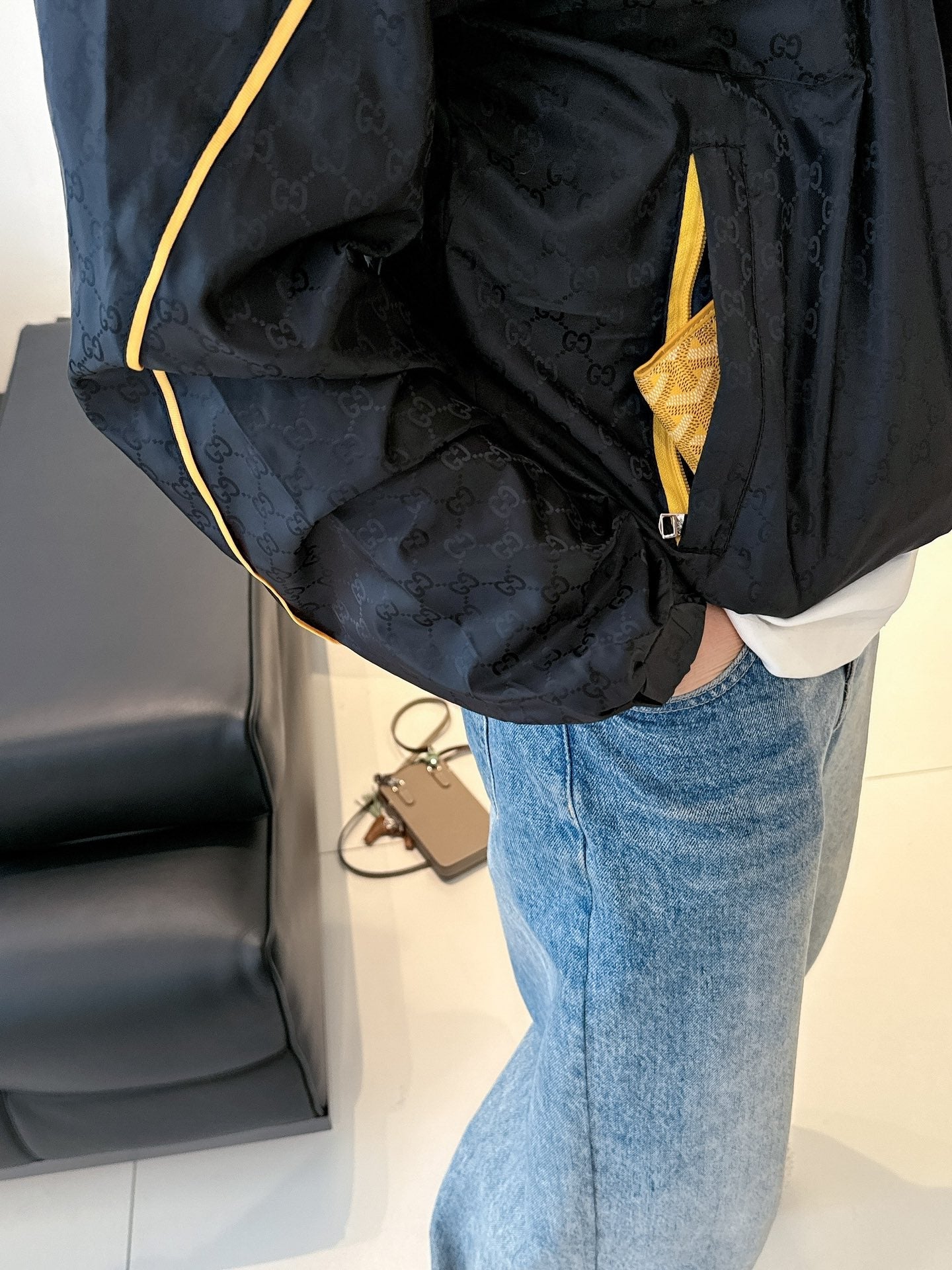 Gucci Men’s Jacket Black Yellow Nylon Satin