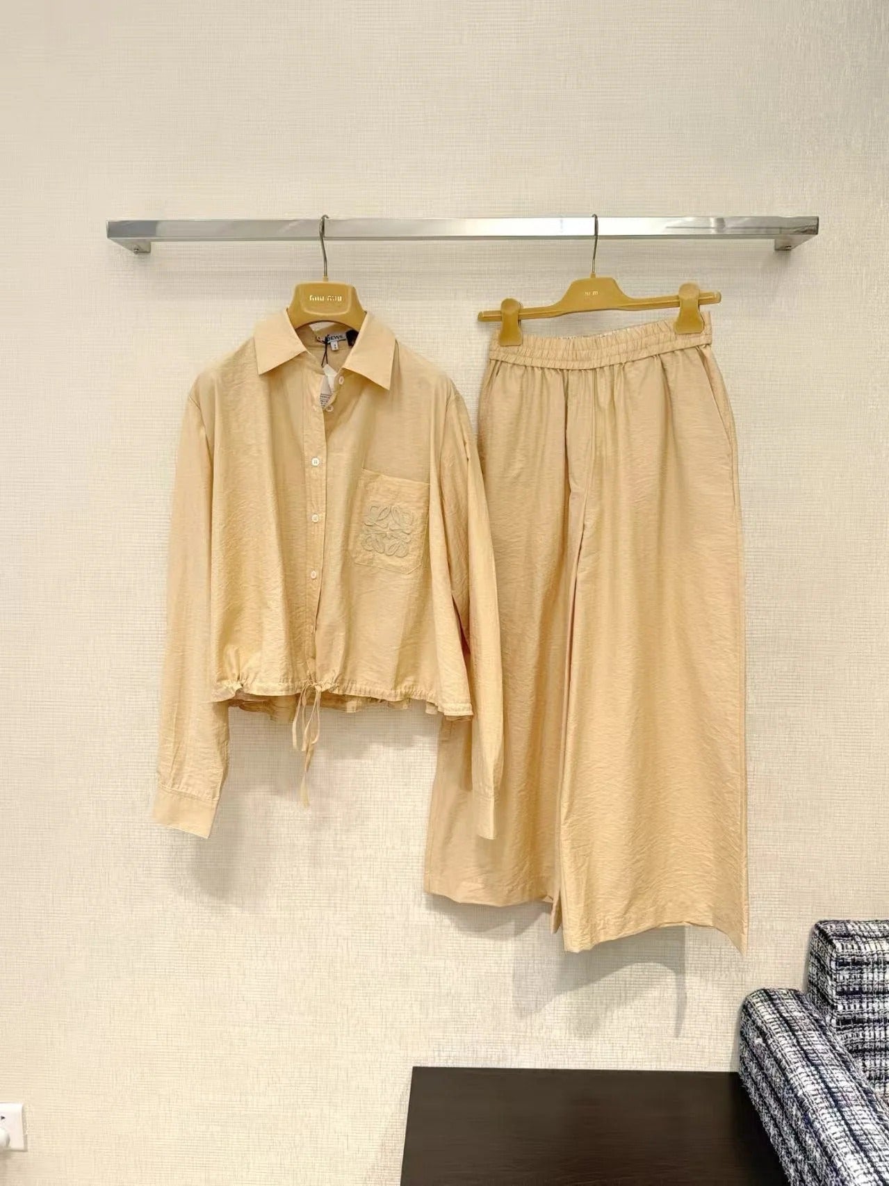 LOEWE SET IN BEIGE COTTON WITH EMBROIDERED LOGO