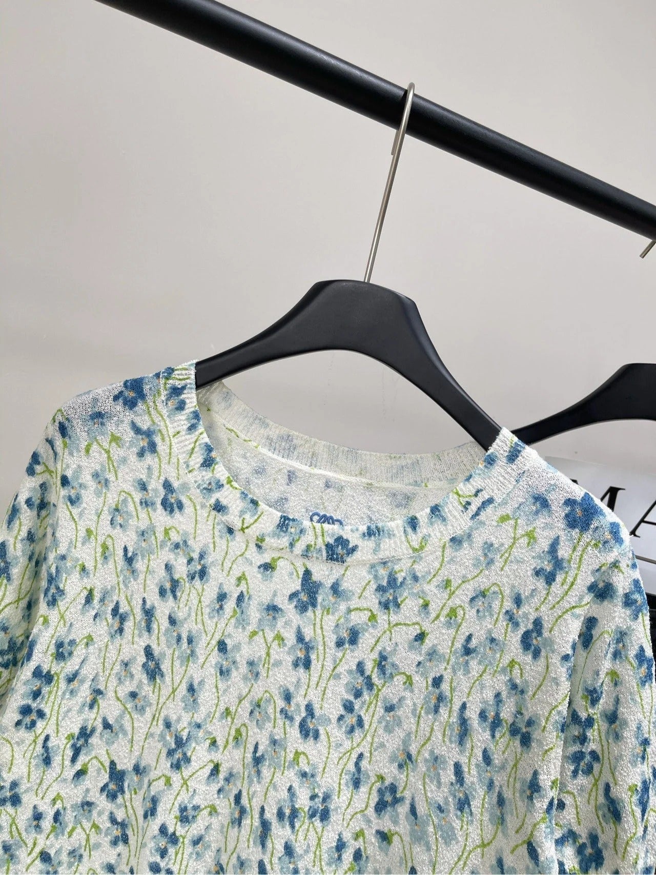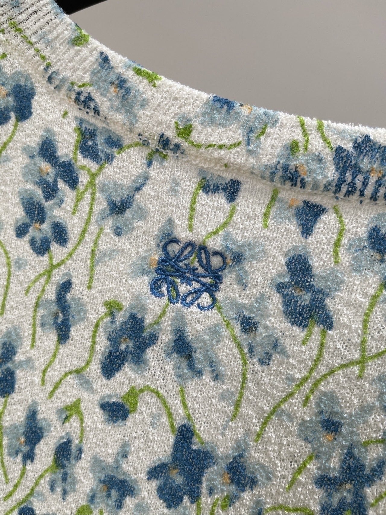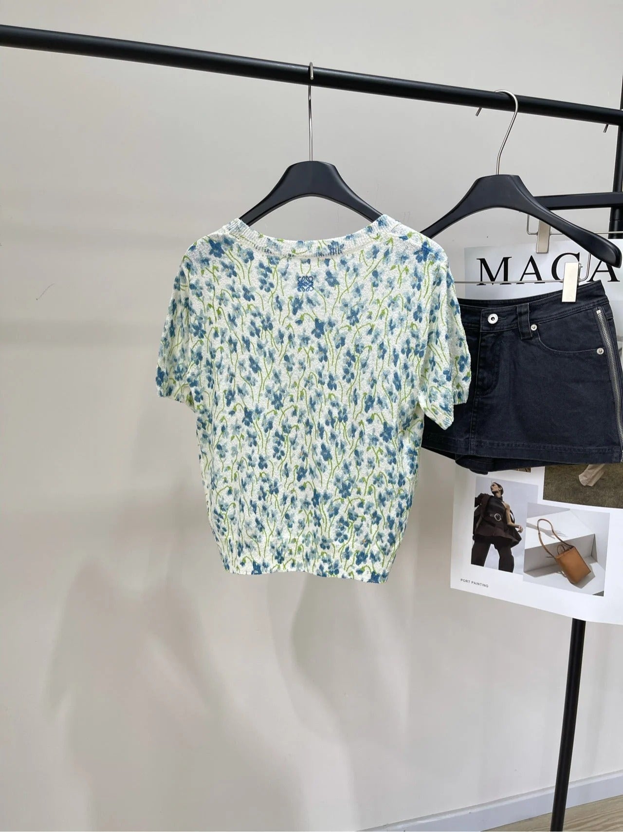 LOEWE SHORT-SLEEVE SWEATER WITH FLORAL KNIT 275922