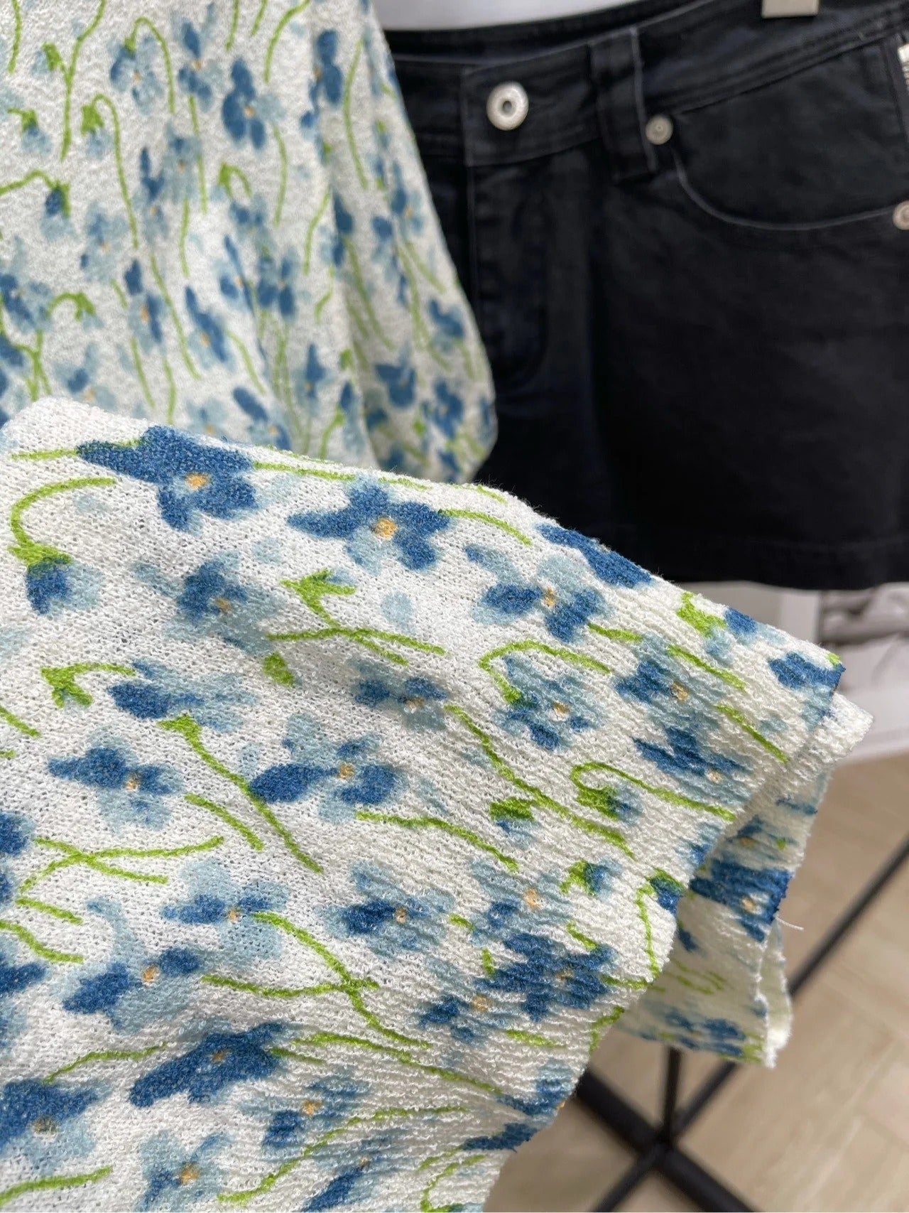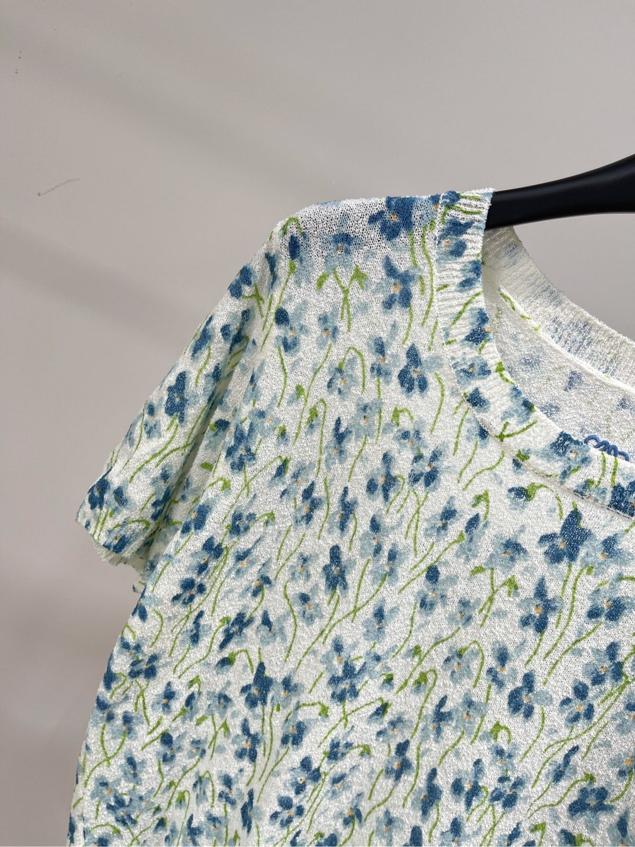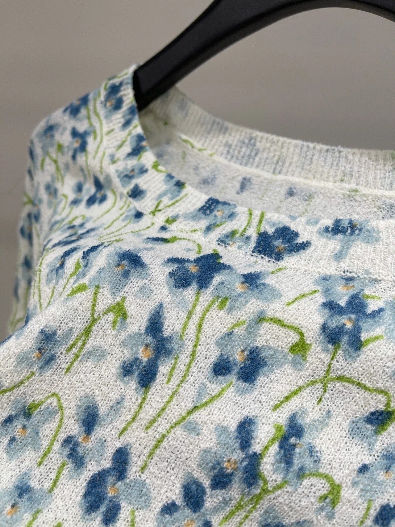 LOEWE SHORT-SLEEVE SWEATER WITH FLORAL KNIT 275922