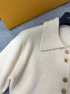 LV LV Monogram Button Knit Top Beige Wool Polyamide 345371