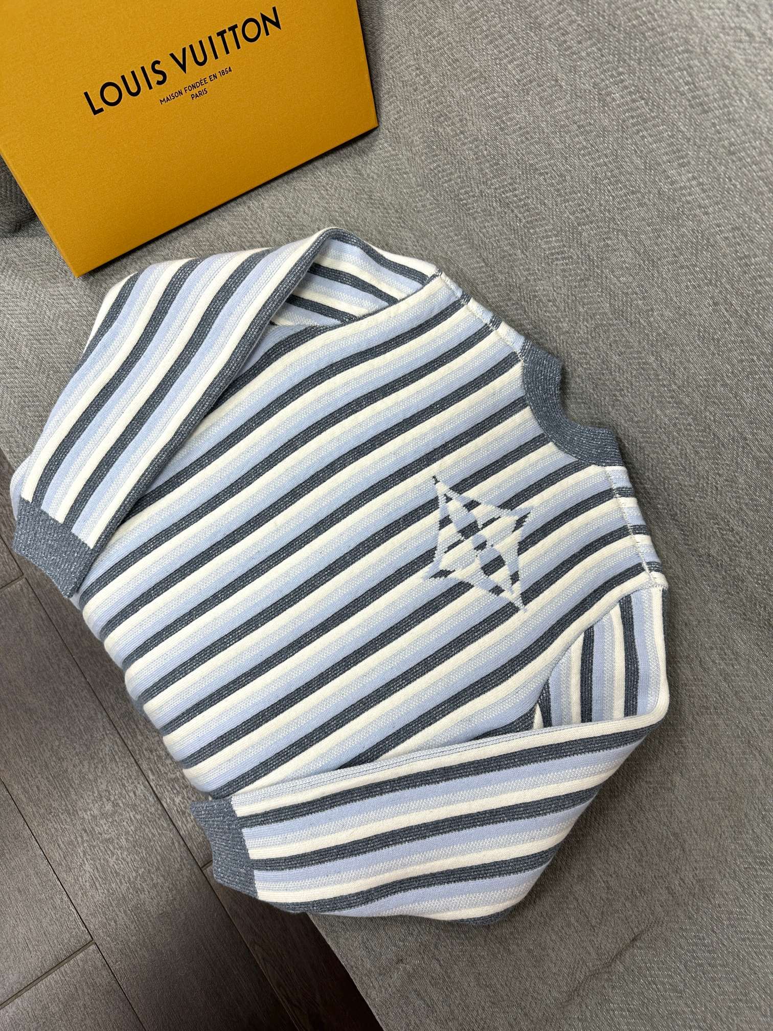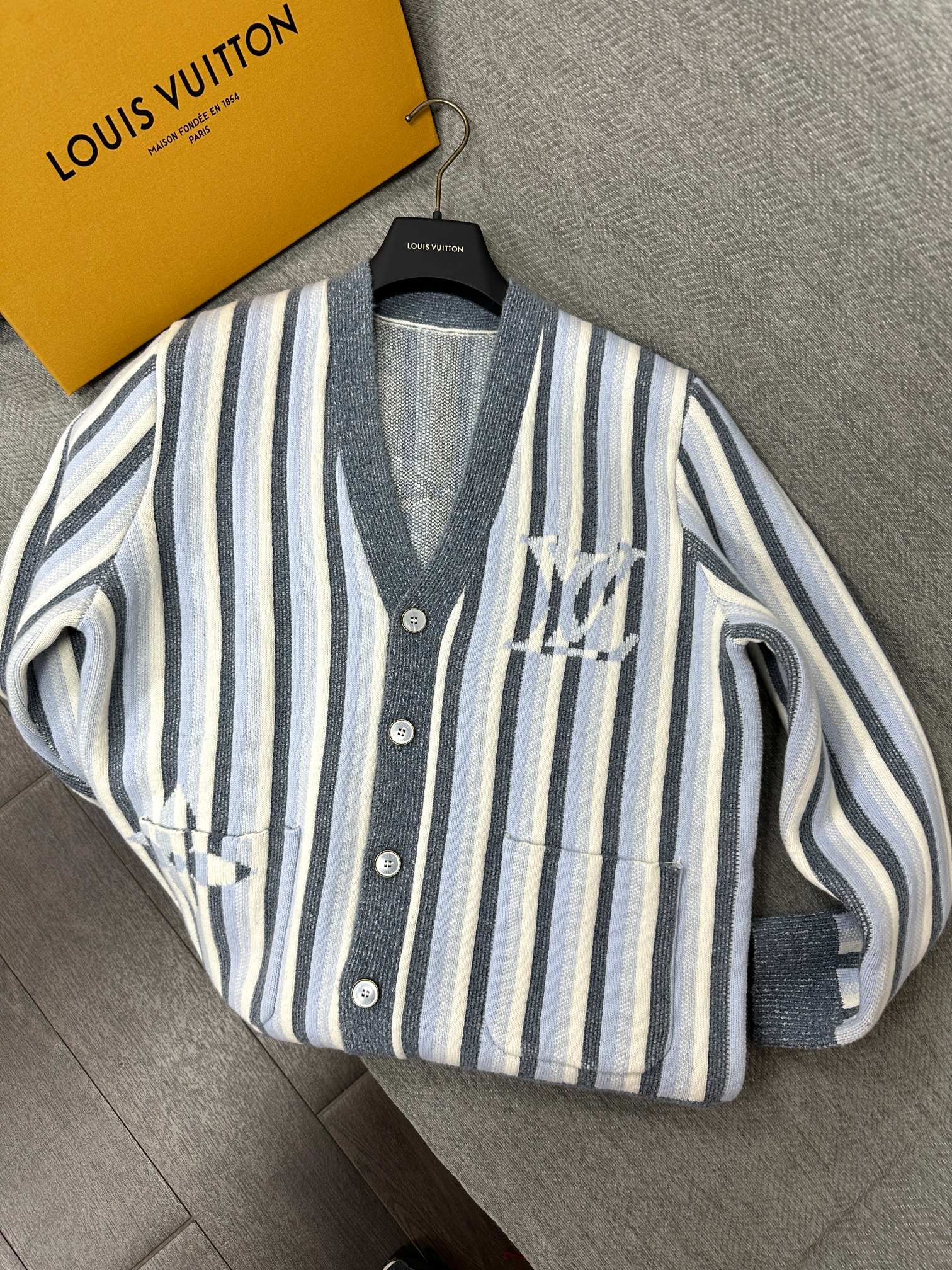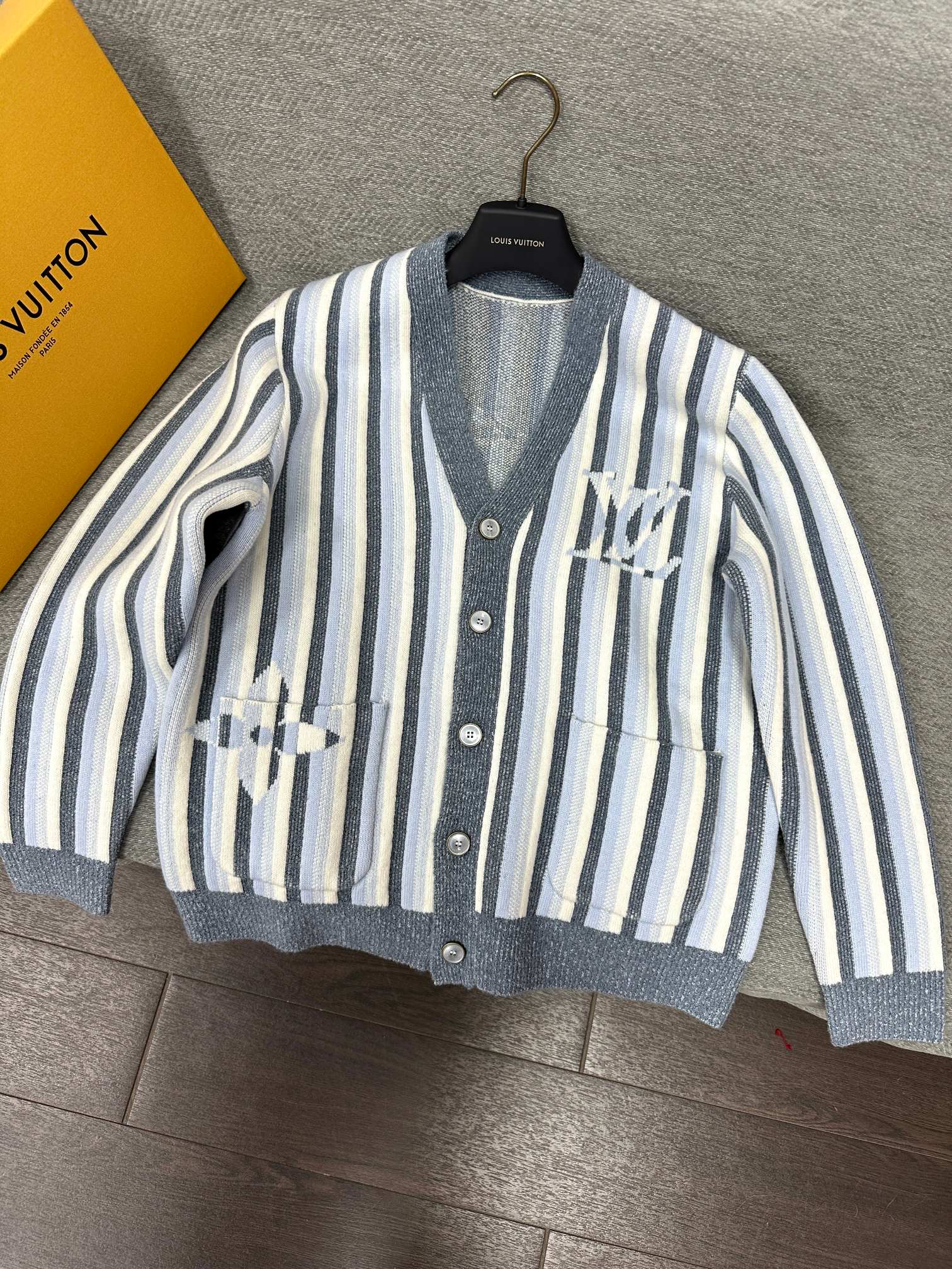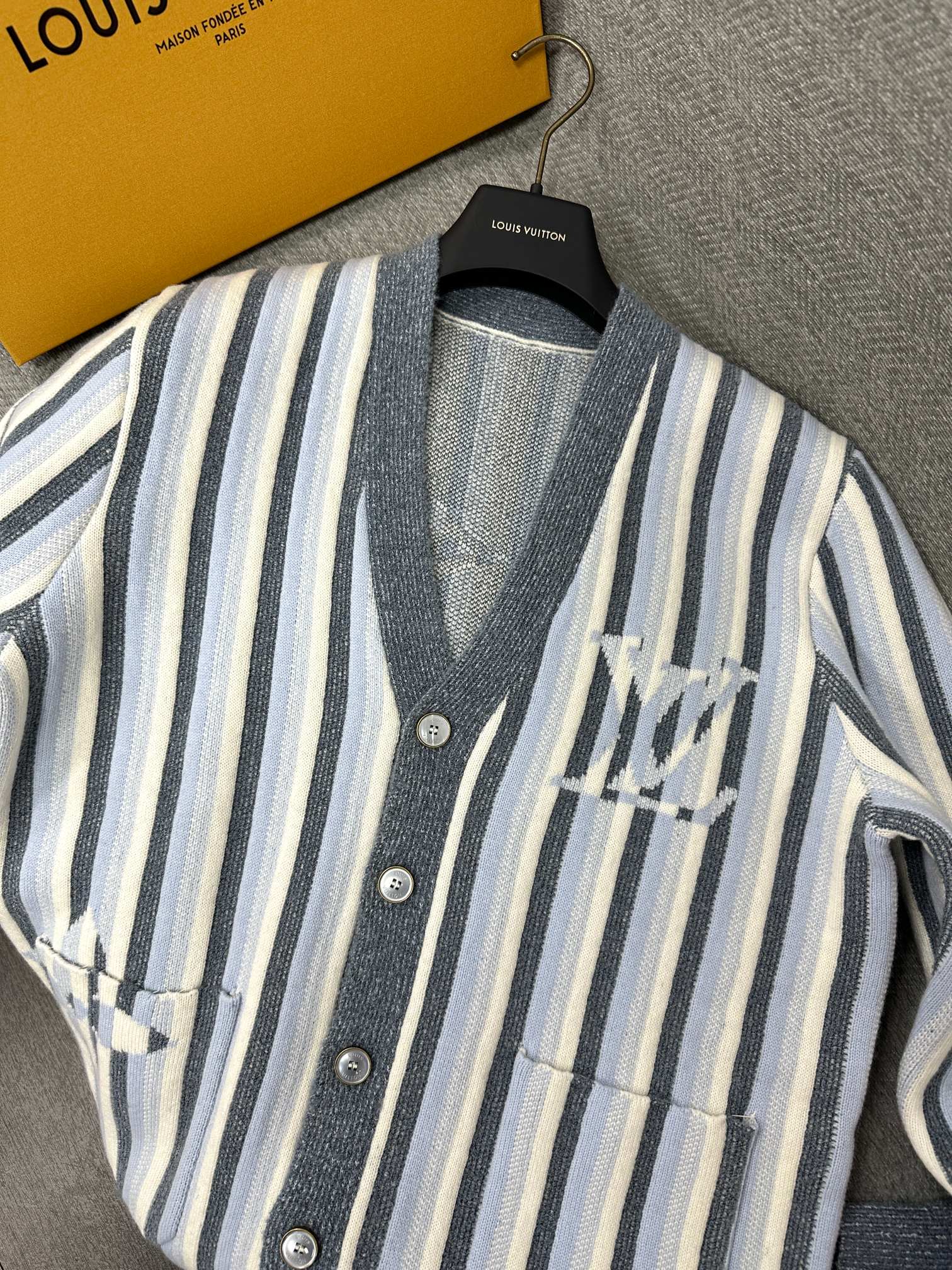 LV Striped Jacquard Cardigan Pale Blue Wool Polyamide