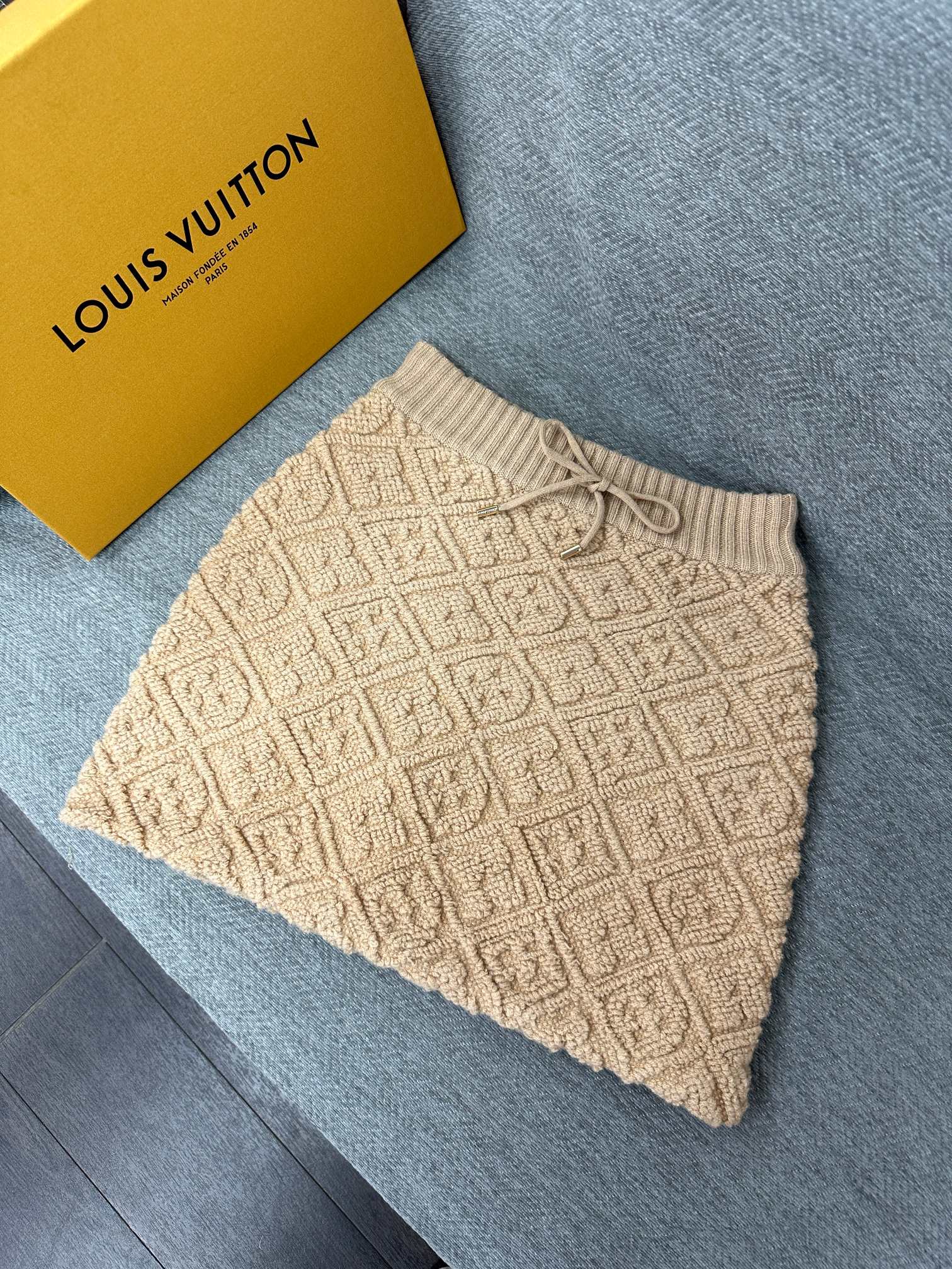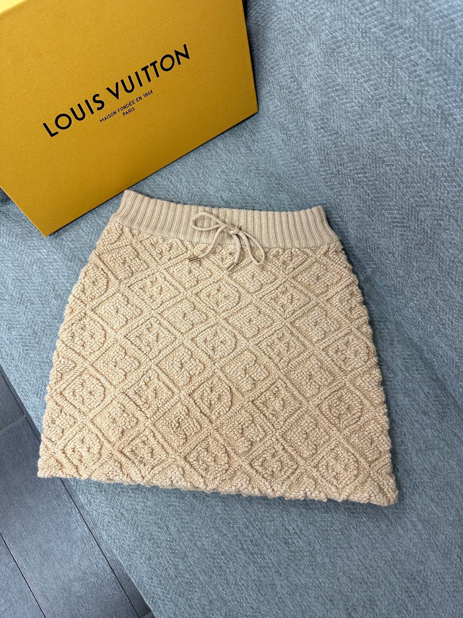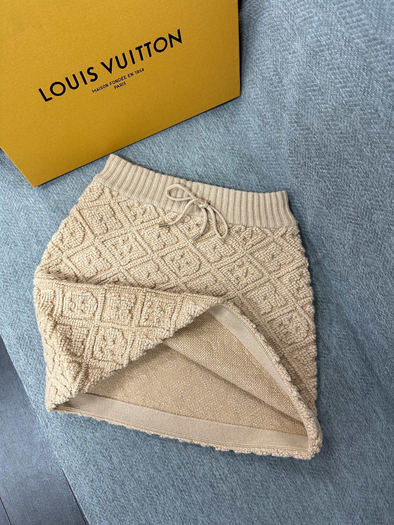 LV Terry Jacquard Midi Skirt Beige Wool