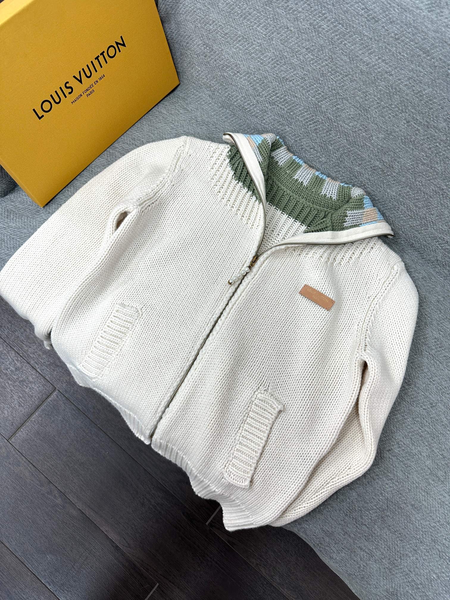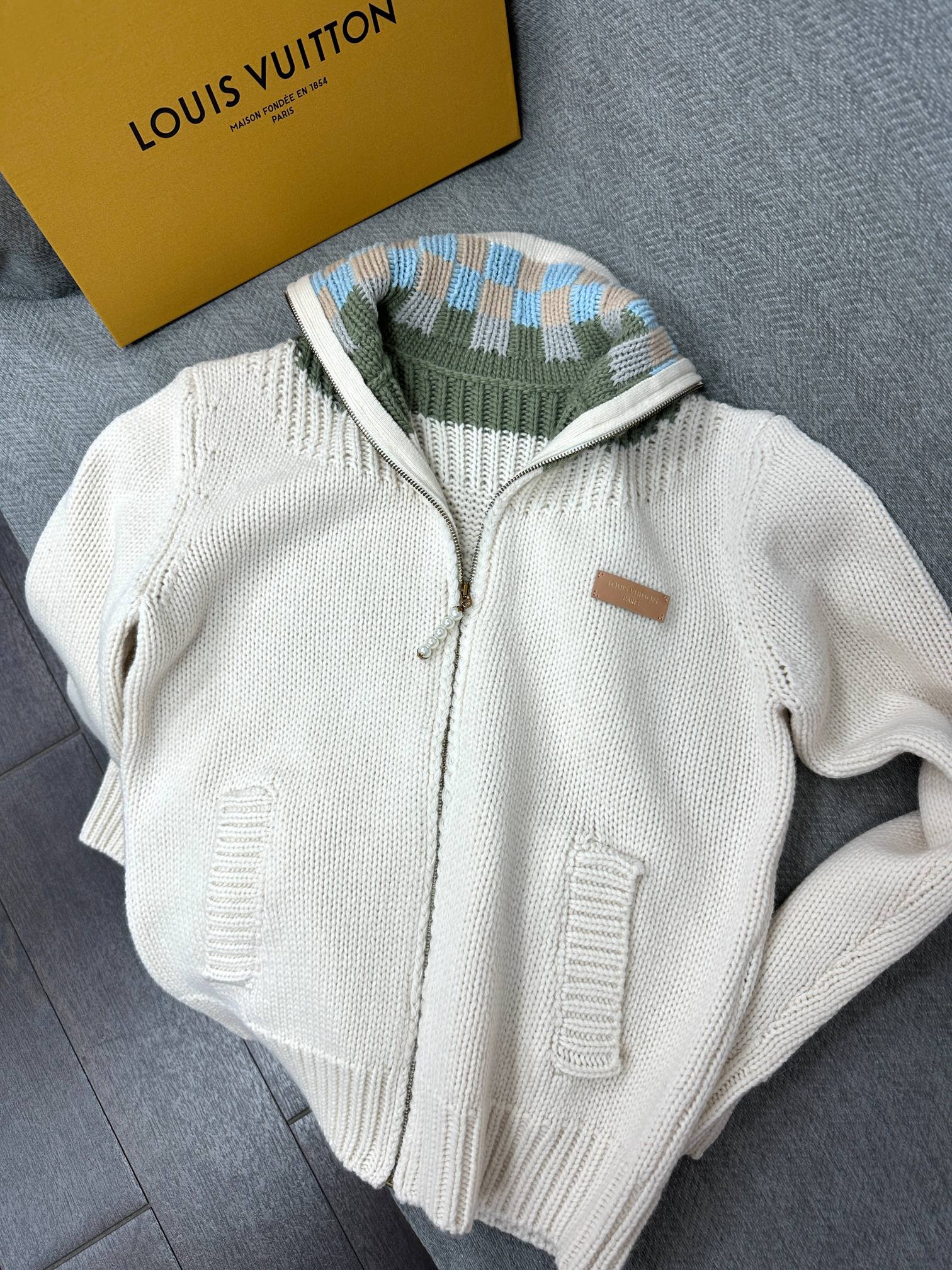 LV Zipped Intarsia Track Top Milky White Lambswool