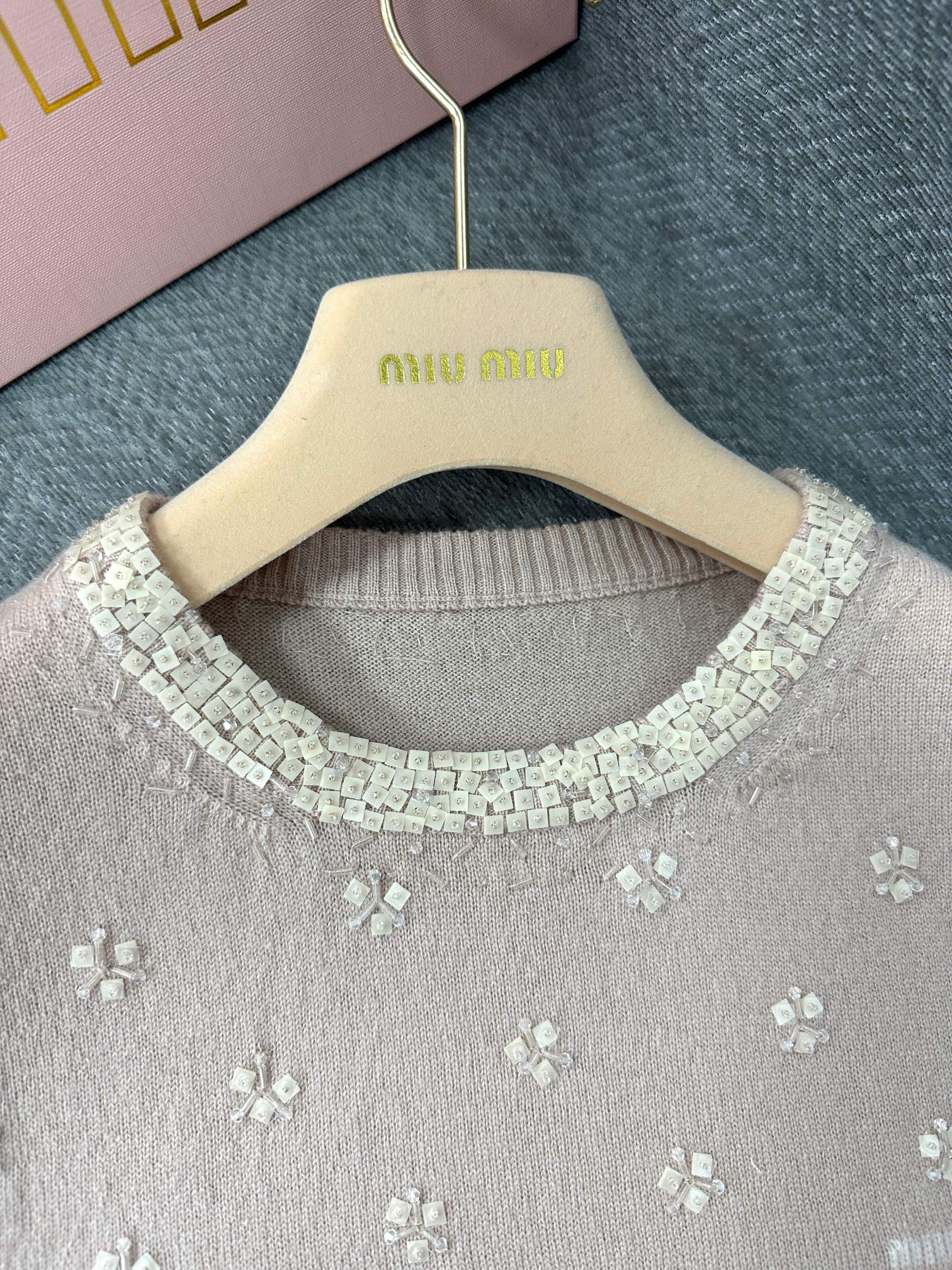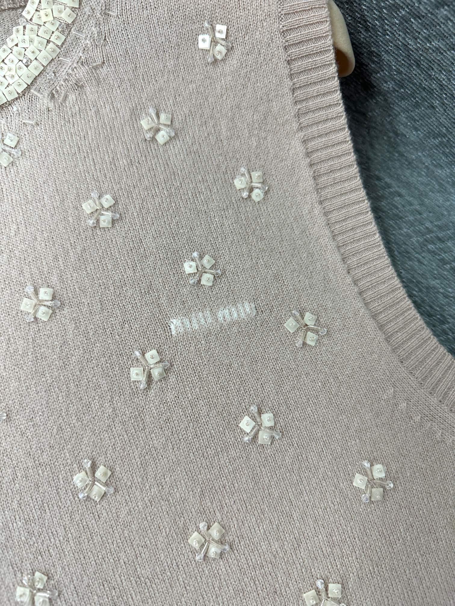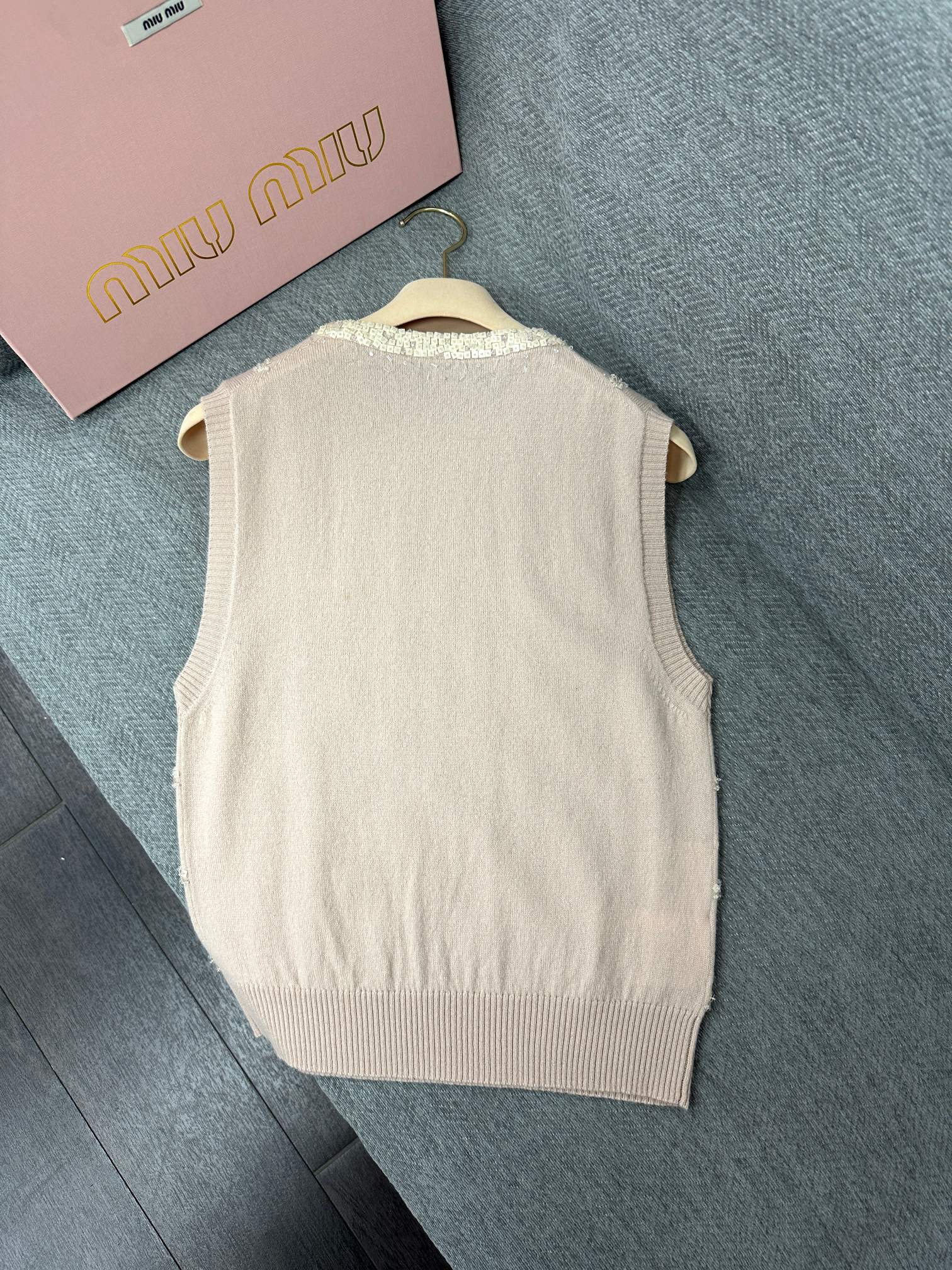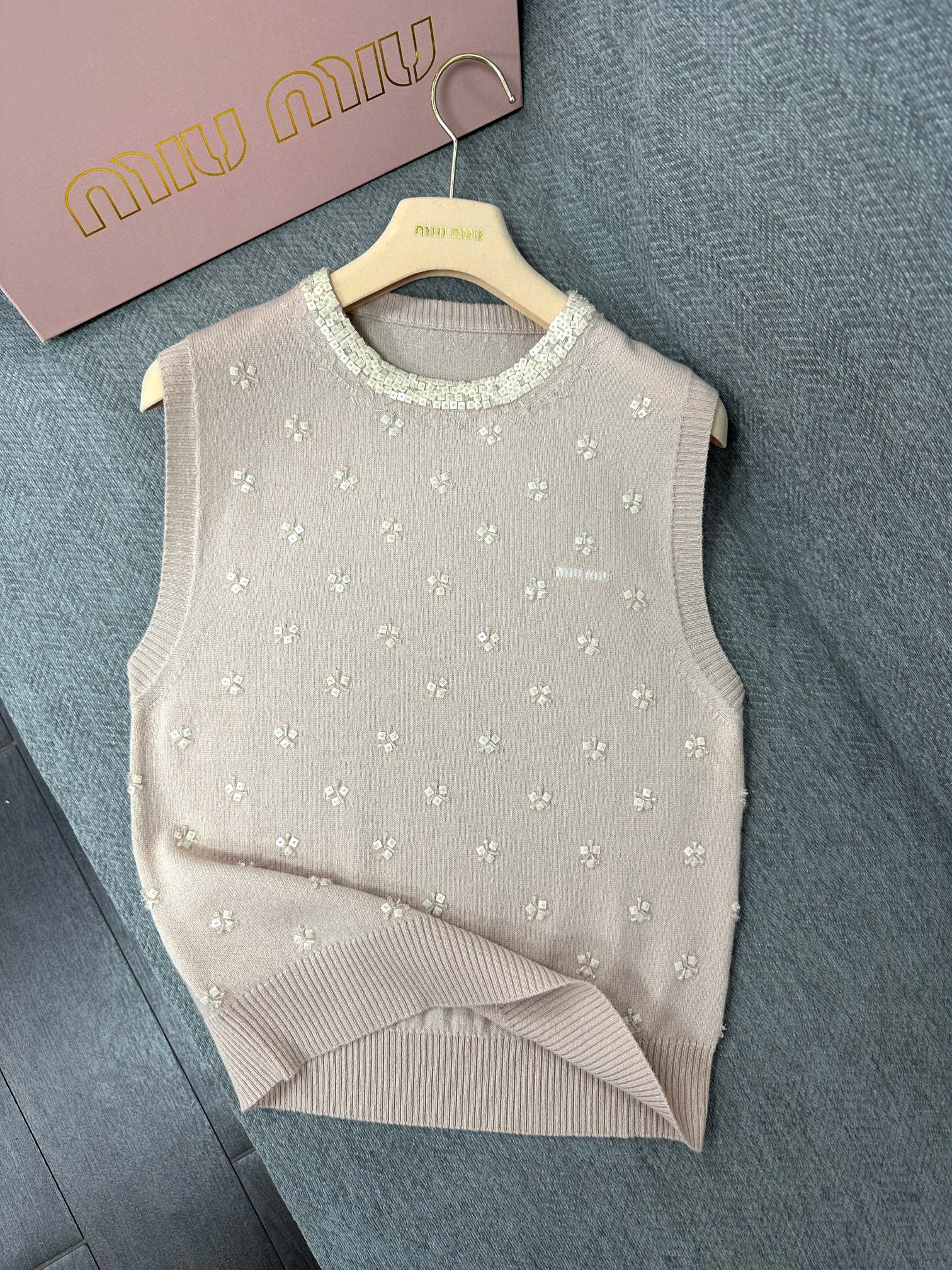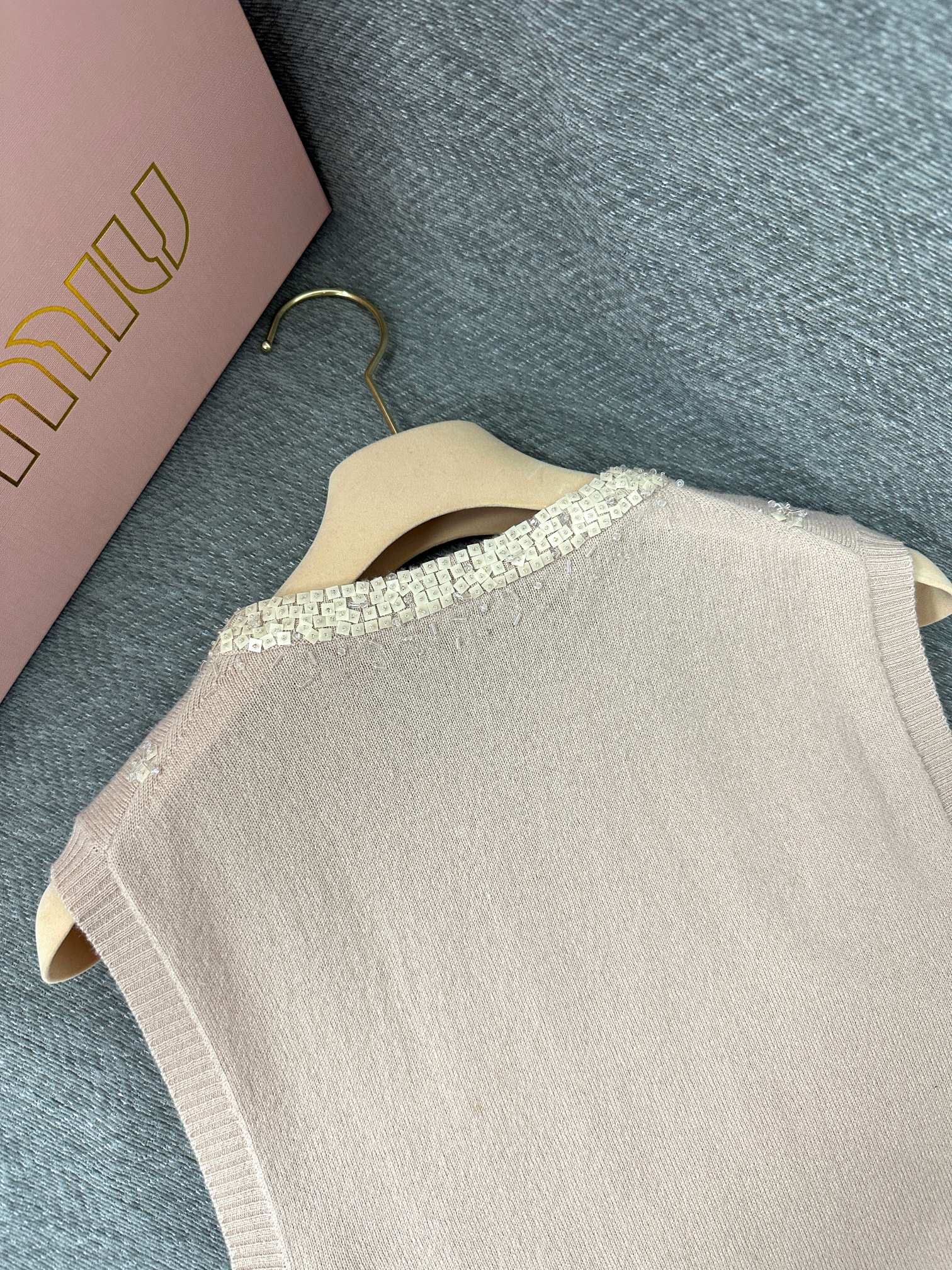 Miu Sequin Sleeveless Top Beige Wool 345347