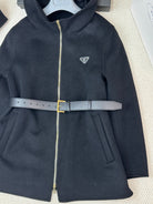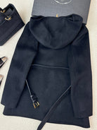 Prada 25 Mid-length Hooded Coat Black Wool 637355