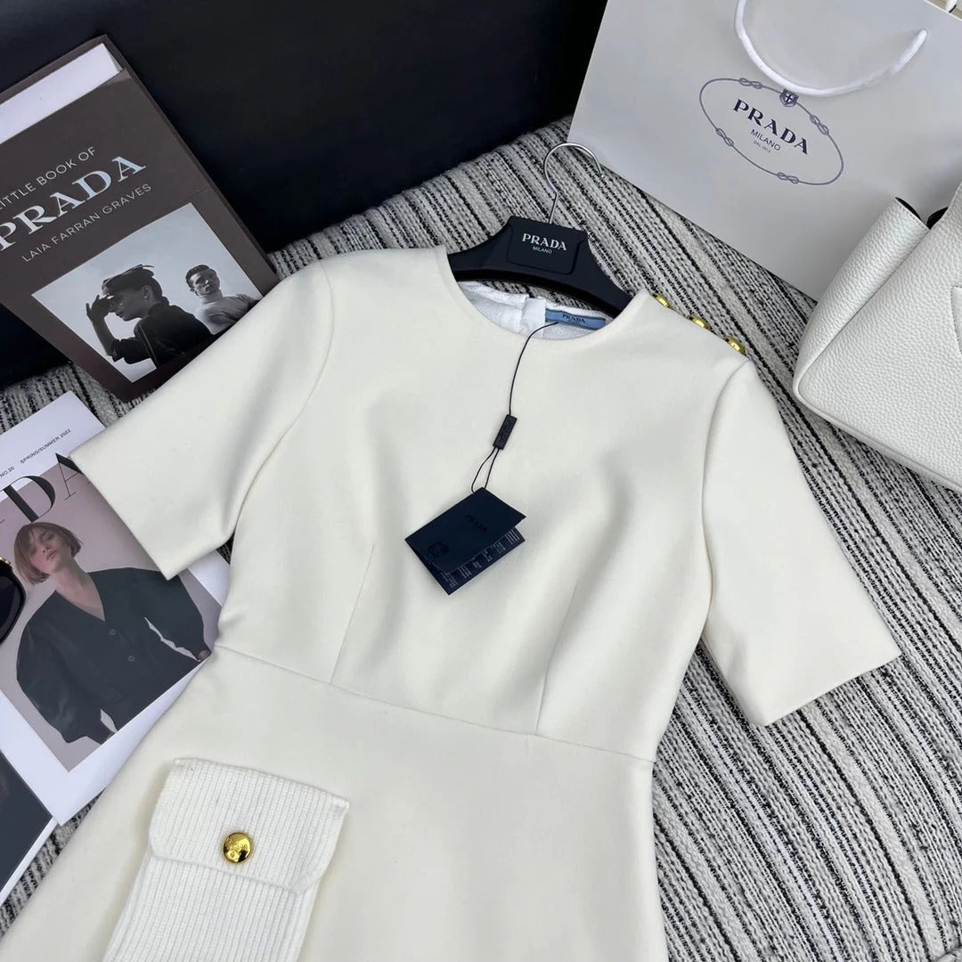 PRADA 25S CREW NECK SHORT-SLEEVE DRESS 350